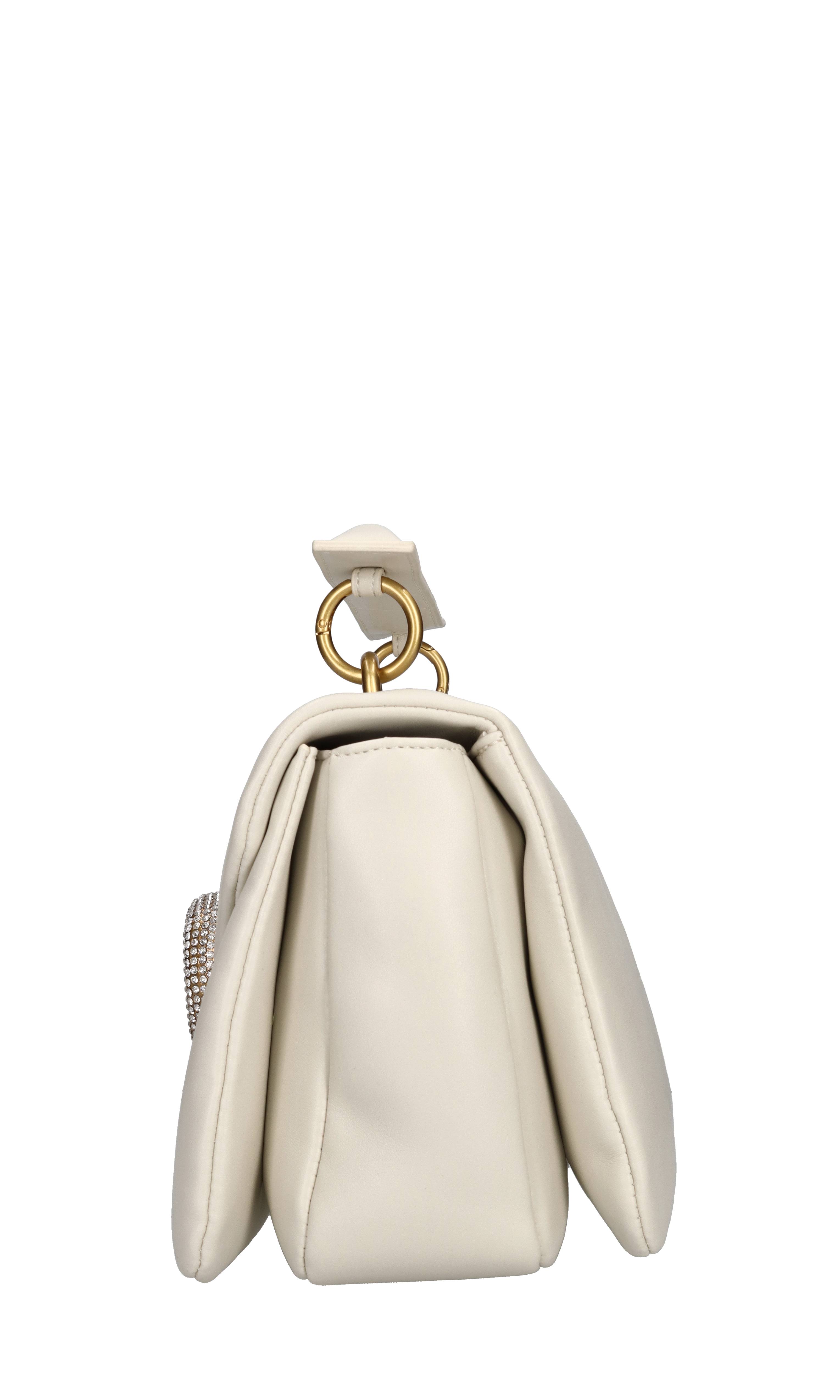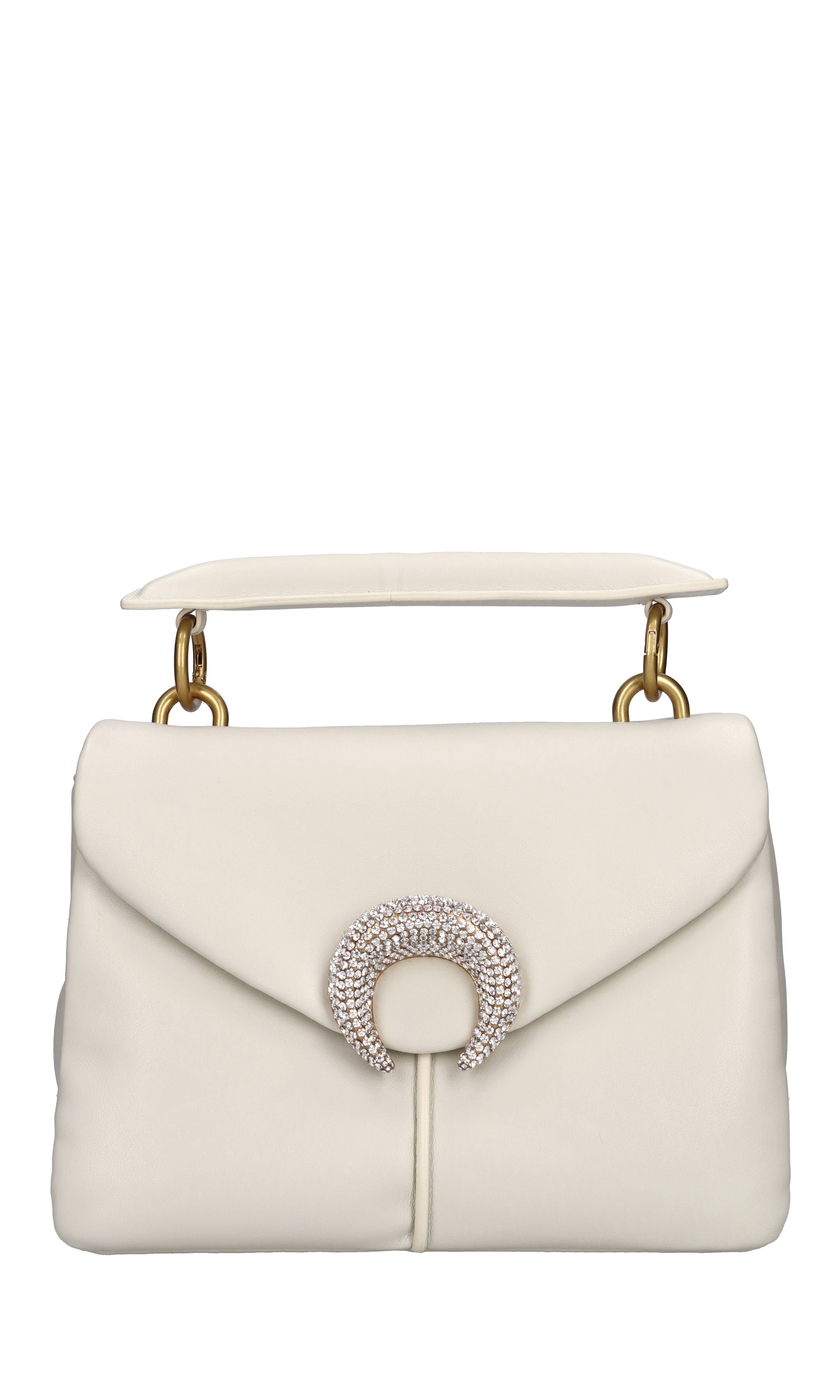Borsa Moonlight in ecopelle. Chiusura con bottone a scatto. Due comparti. Fibbia gioiello con strass. Tracolla golden chain ed ecopelle removibile.
