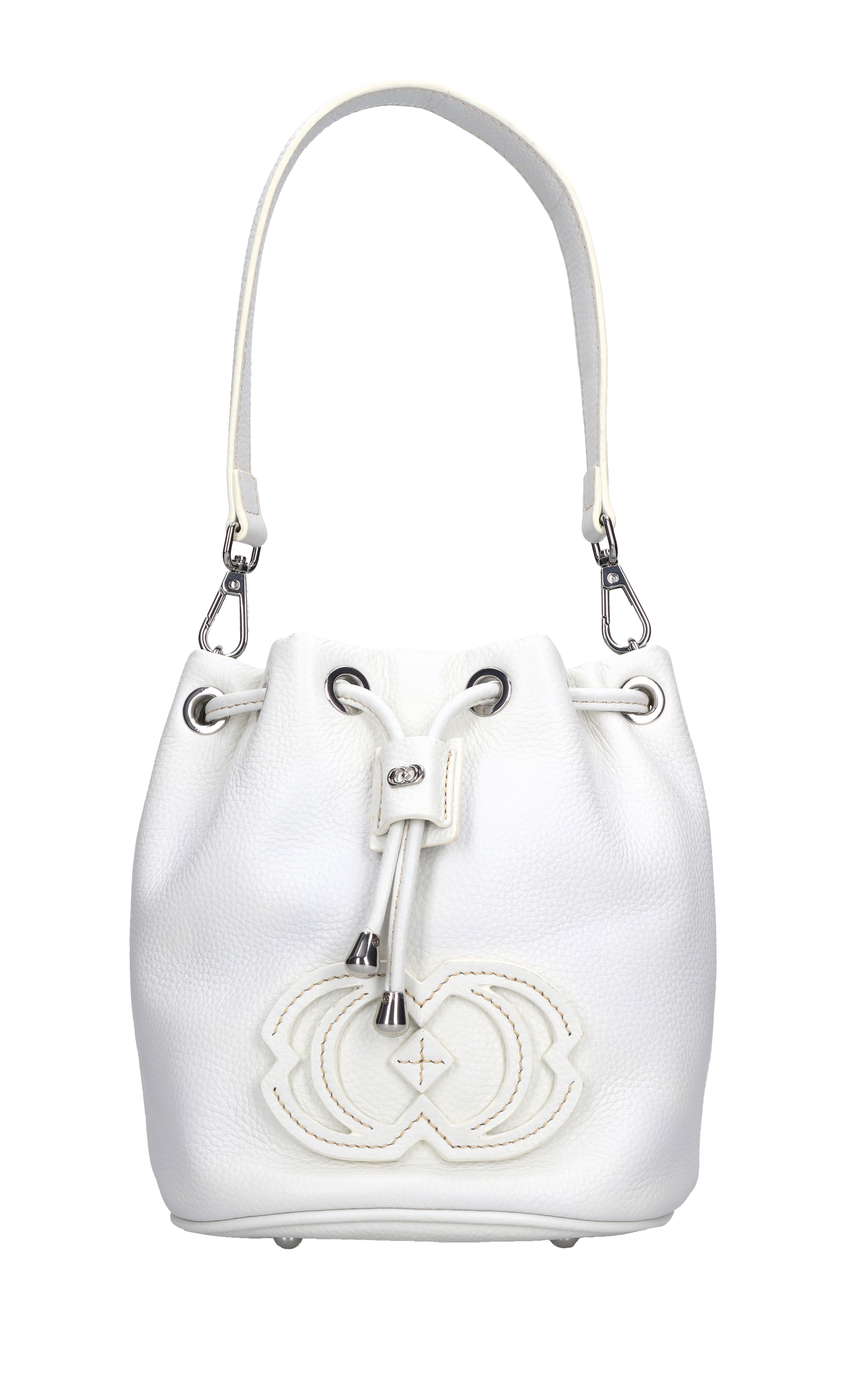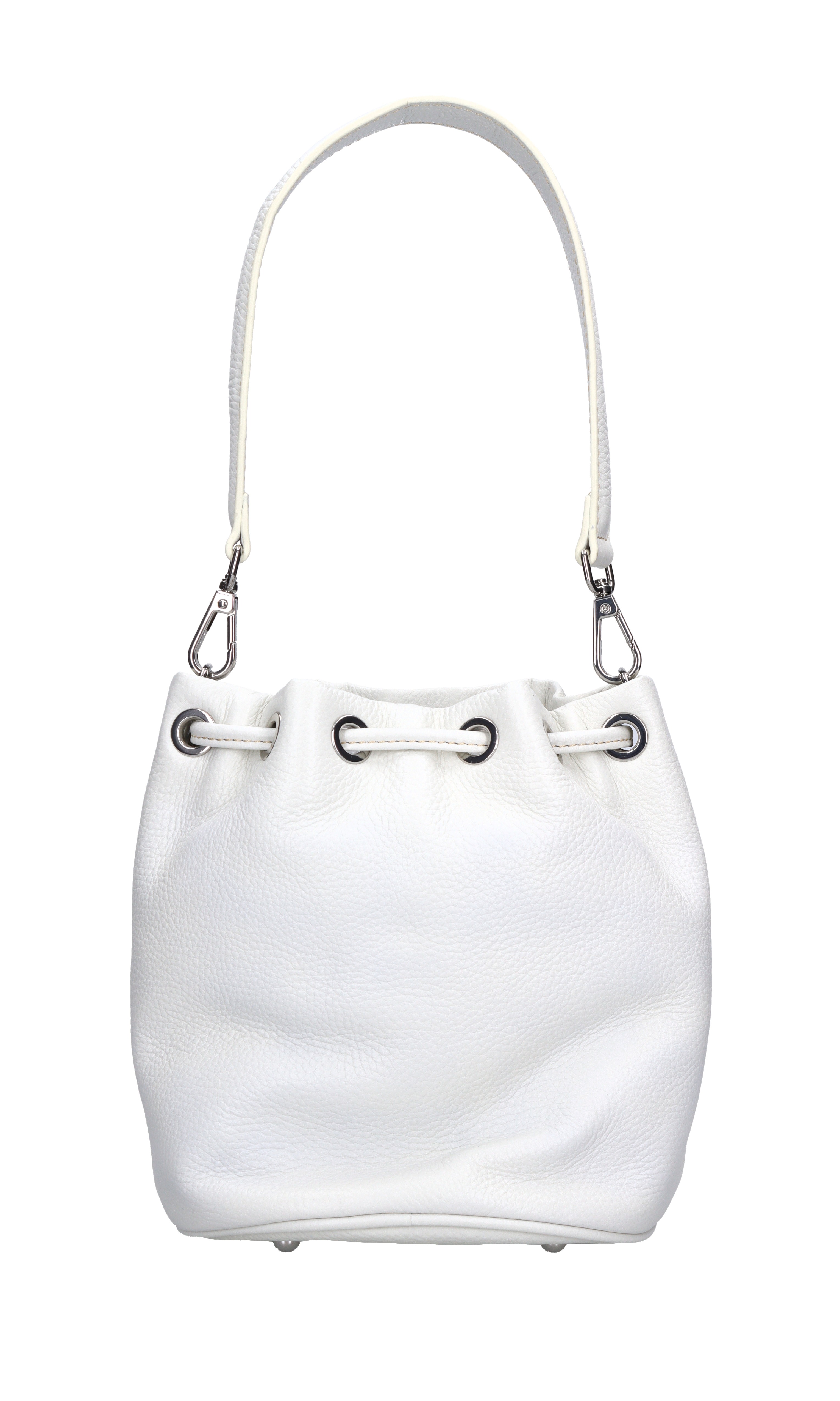 Borsa Navajo Bucket in pelle. Martellata. 1 Comparto. Chiusura con coulisse. Tracolla in pelle e silver chain rimovibile. Manico in pelle rimovibile.