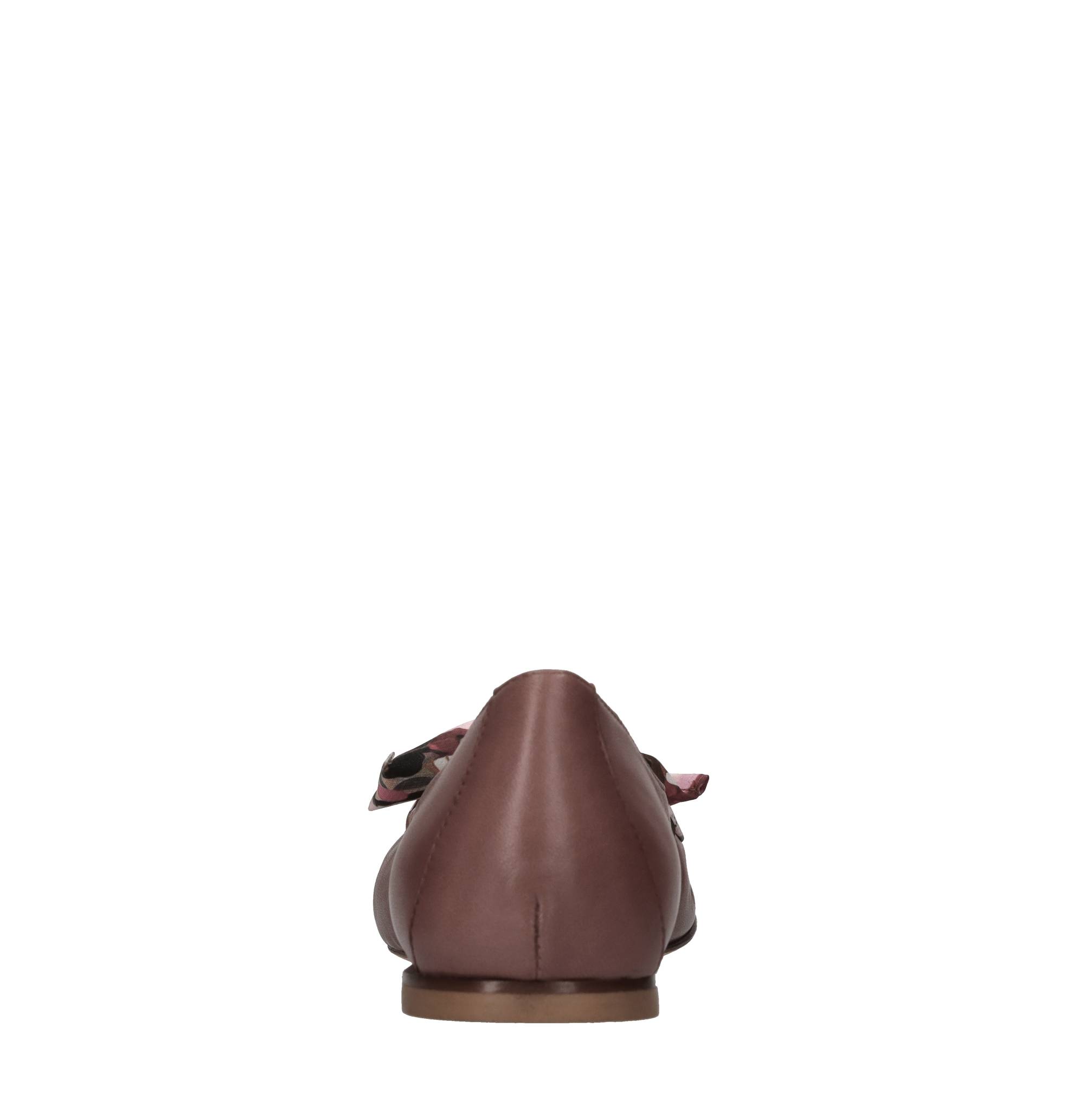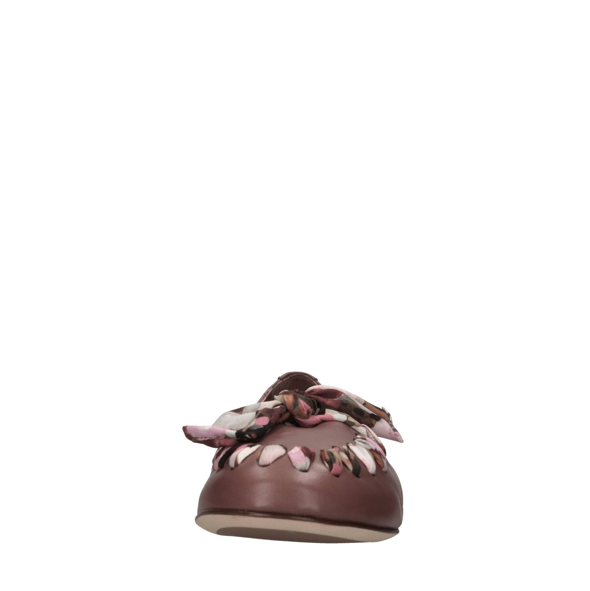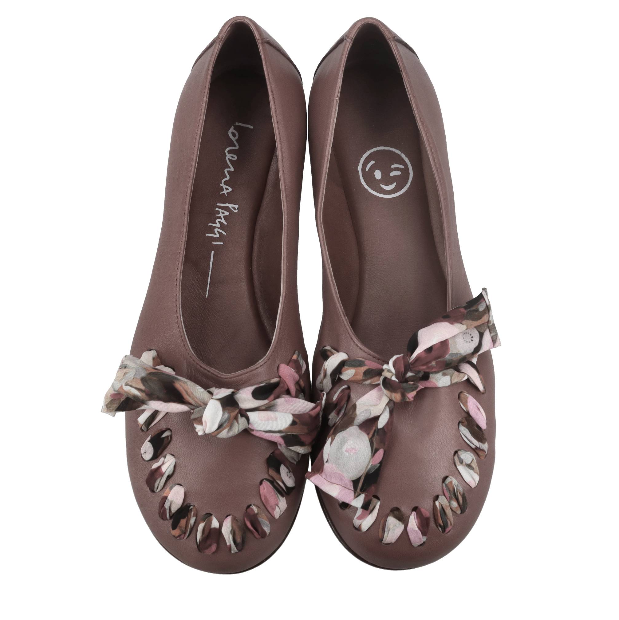 Ballerine in pelle e tessuto. Applicazioni in tessuto a fiori. Tomaia interna in pelle. Suola esterna in cuoio con inserti in gomma antiscivolo.