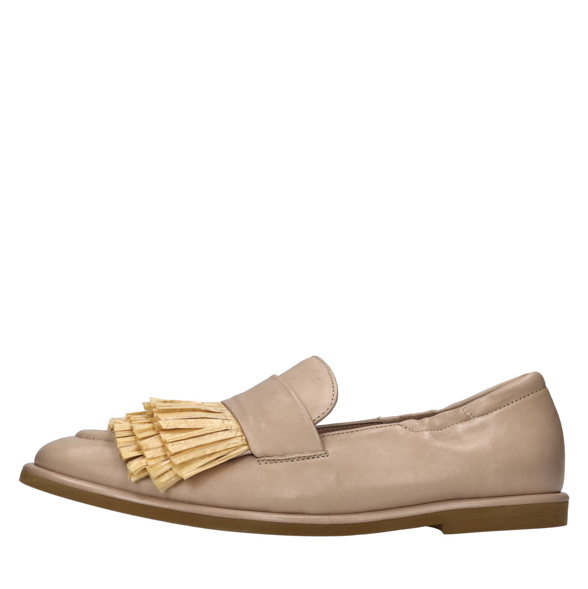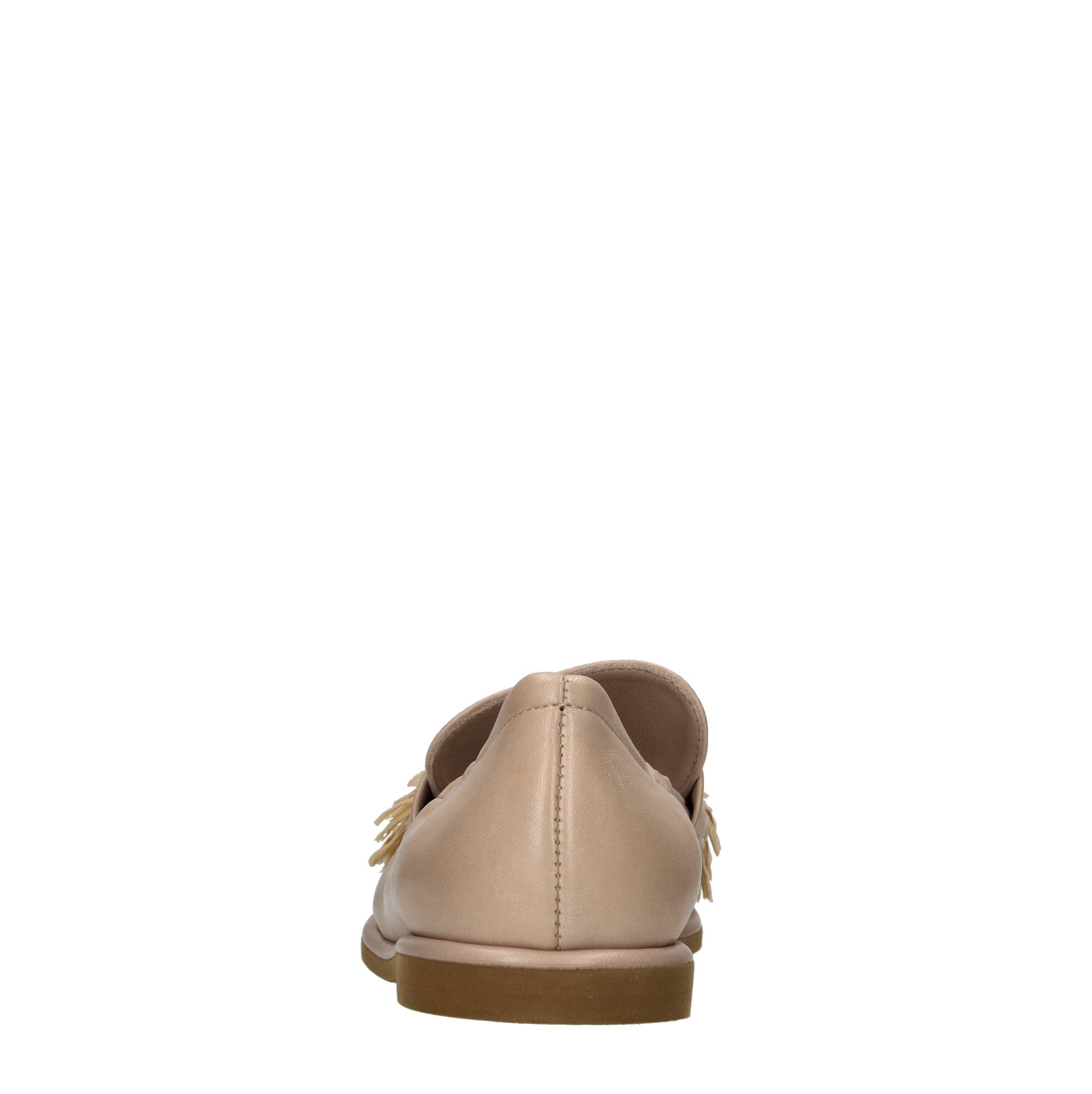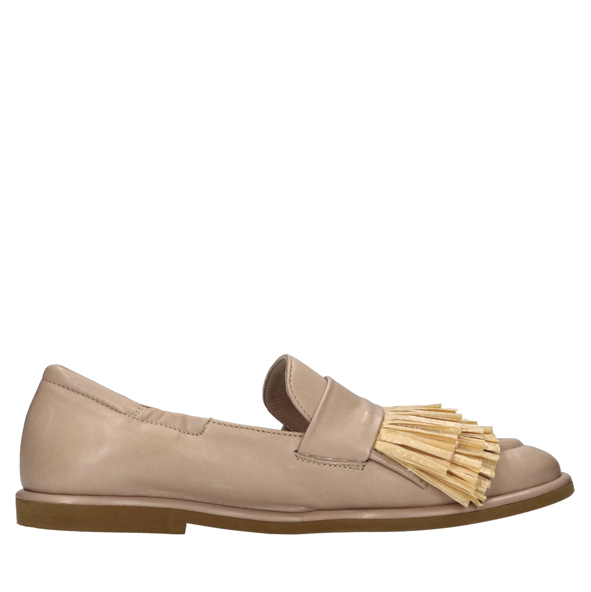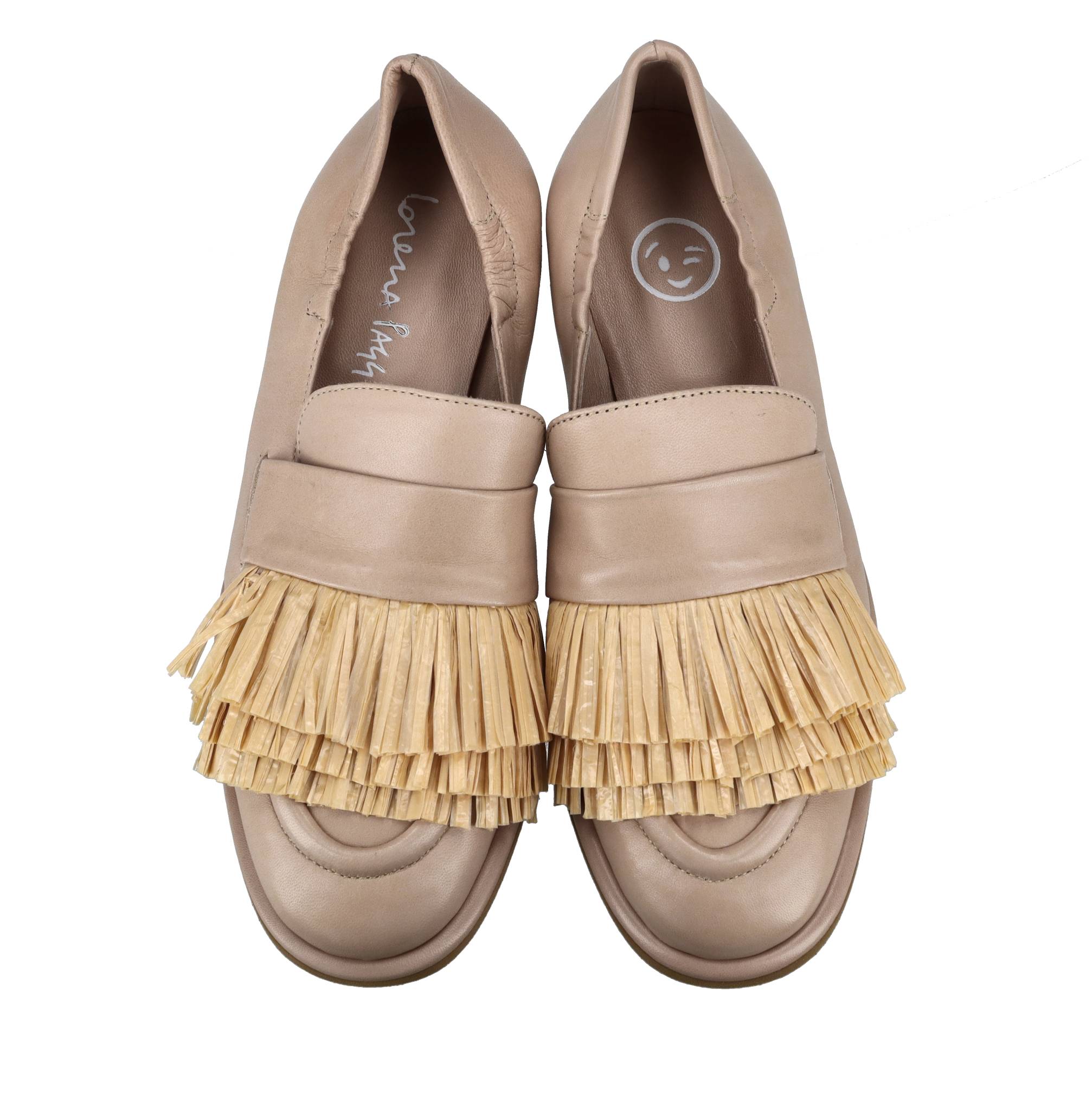 Mocassini in pelle con frangia in rafia. Tomaia interna in pelle.Suola esterna in gomma.