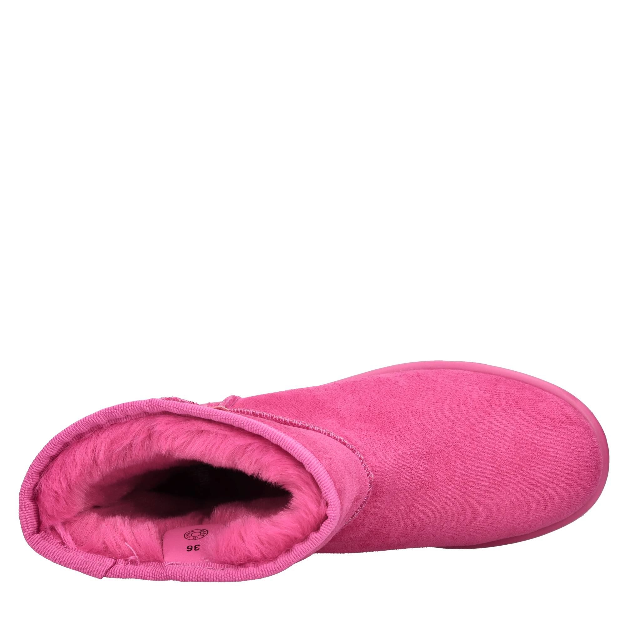Stivaletti in camoscio e tessuto. Tomaia interna in ecopelliccia. Suola esterna in gomma.