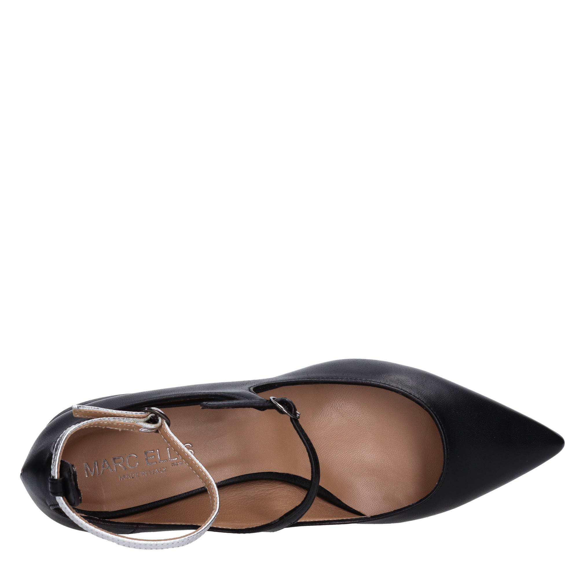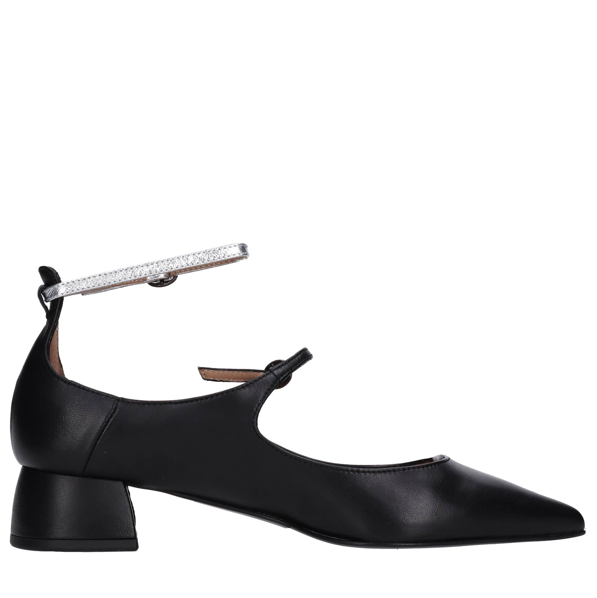 Décolleté in pelle. Tomaia interna in pelle. Suola esterna in gomma. Cinturino argento rimovibile.