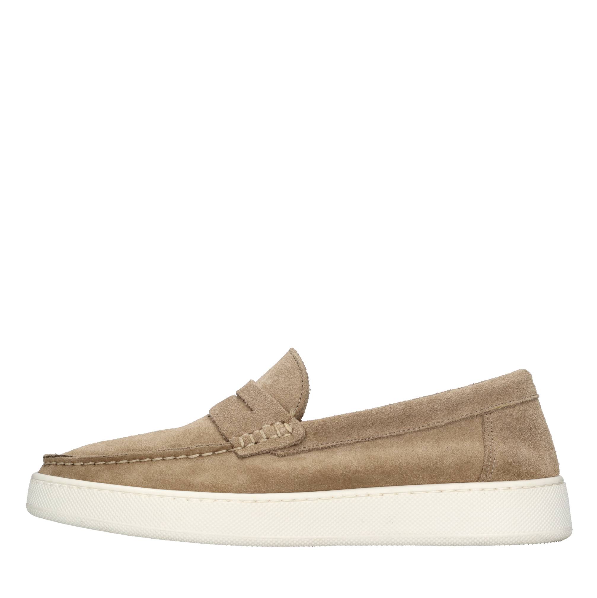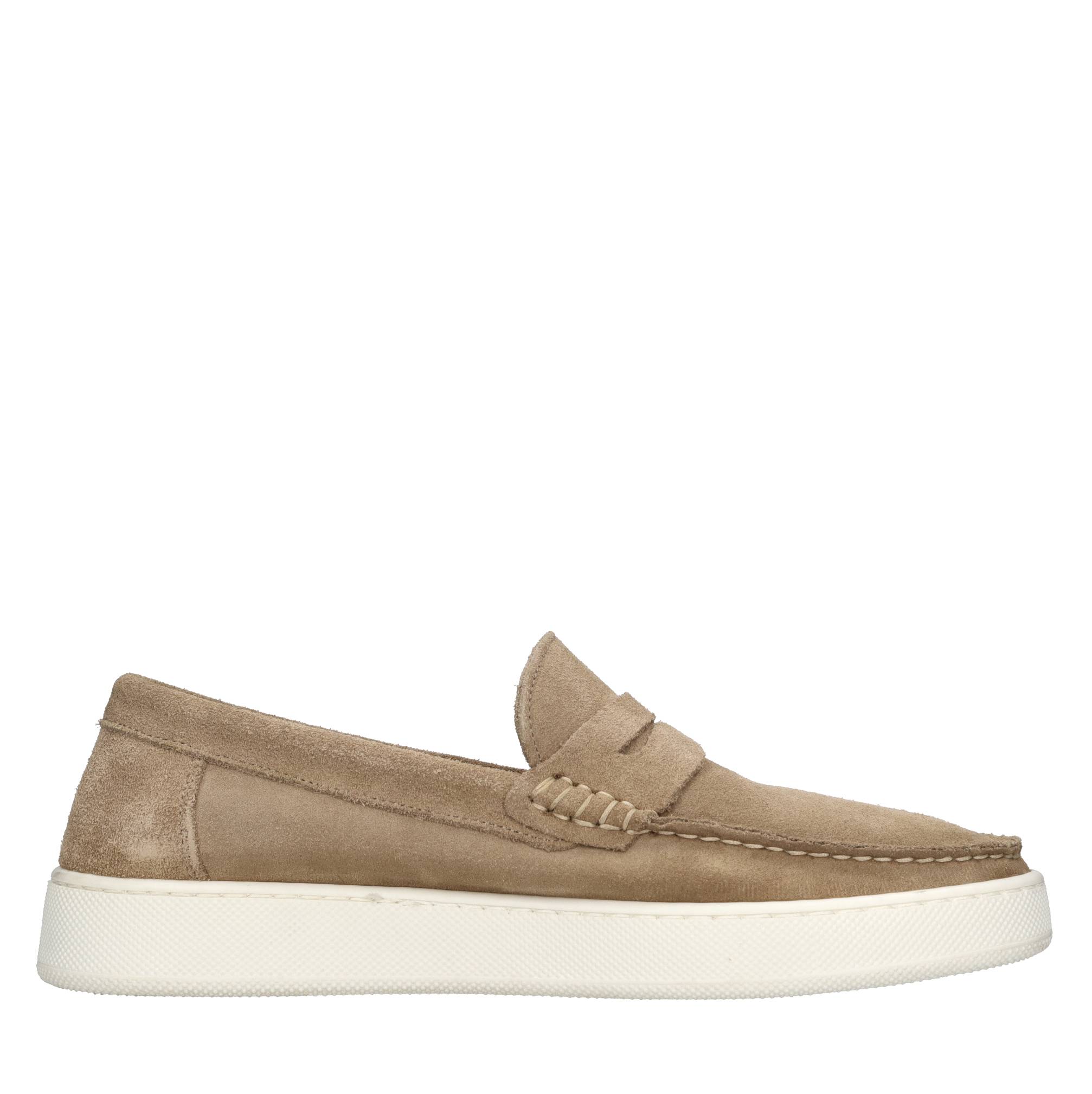 Mocassini in camoscio. Suola esterna in gomma. Tomaia interna in pelle e camoscio.