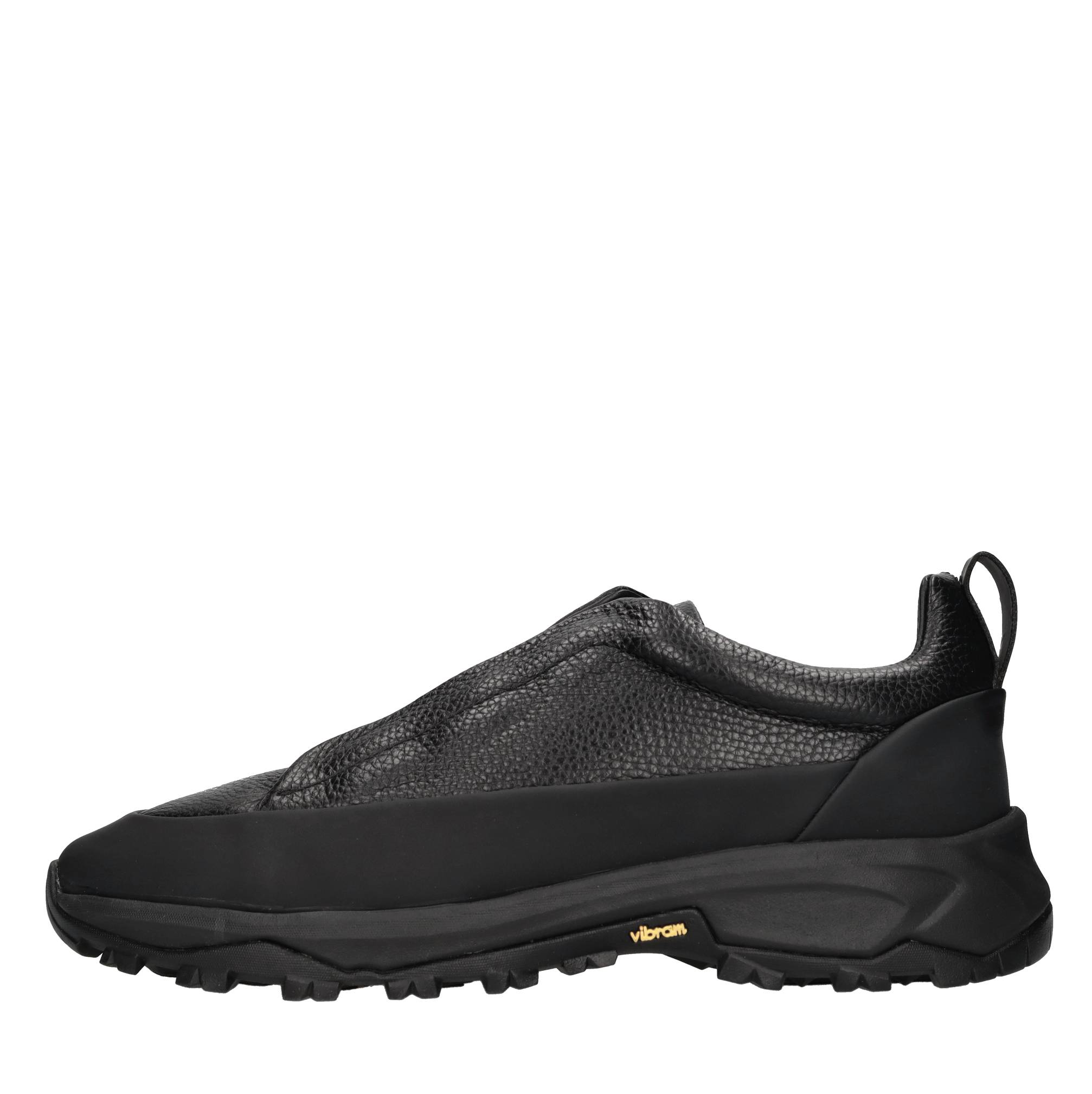 Sneakers in pelle. Martellata. Tomaia interna in pelle. Suola esterna in gomma: vibram. Chiusura con elastici intrecciati.