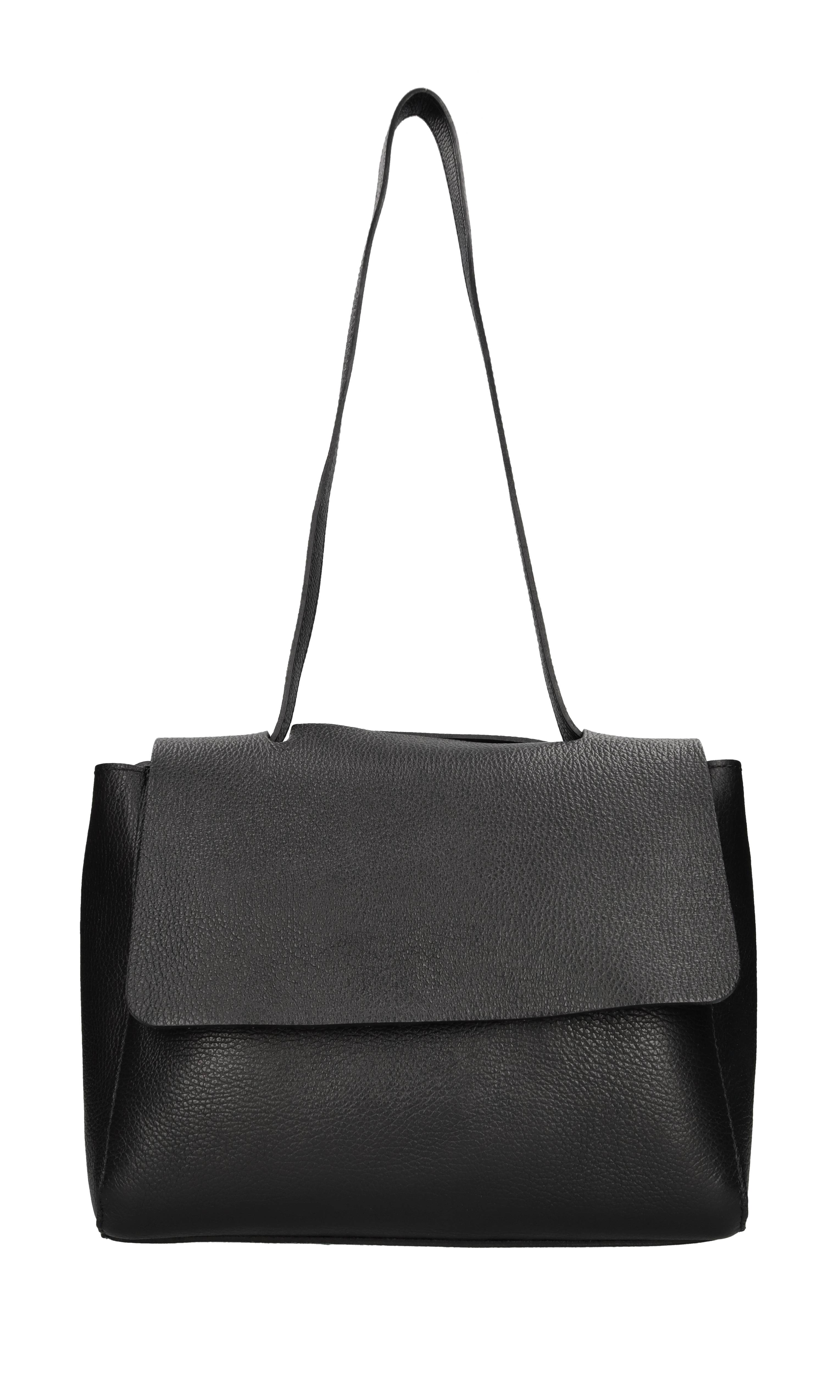 Borsa in pelle. Chiusura con patta con zip. 1 comparto.Tracolla in pelle regolabile. Spedito su busta trasparente.