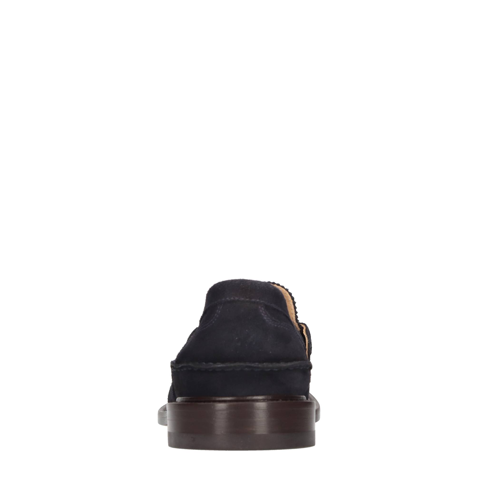 Mocassini in camoscio. Tomaia interna in pelle. Suola in cuoio e gomma.