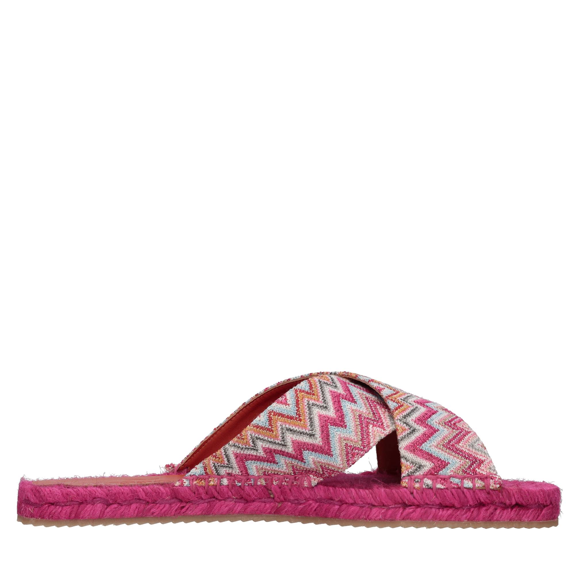 Mules in tessuto zig zag. Suola esterna in gomma. Suola interna in pelle e tessuto. Tomaia in tessuto.