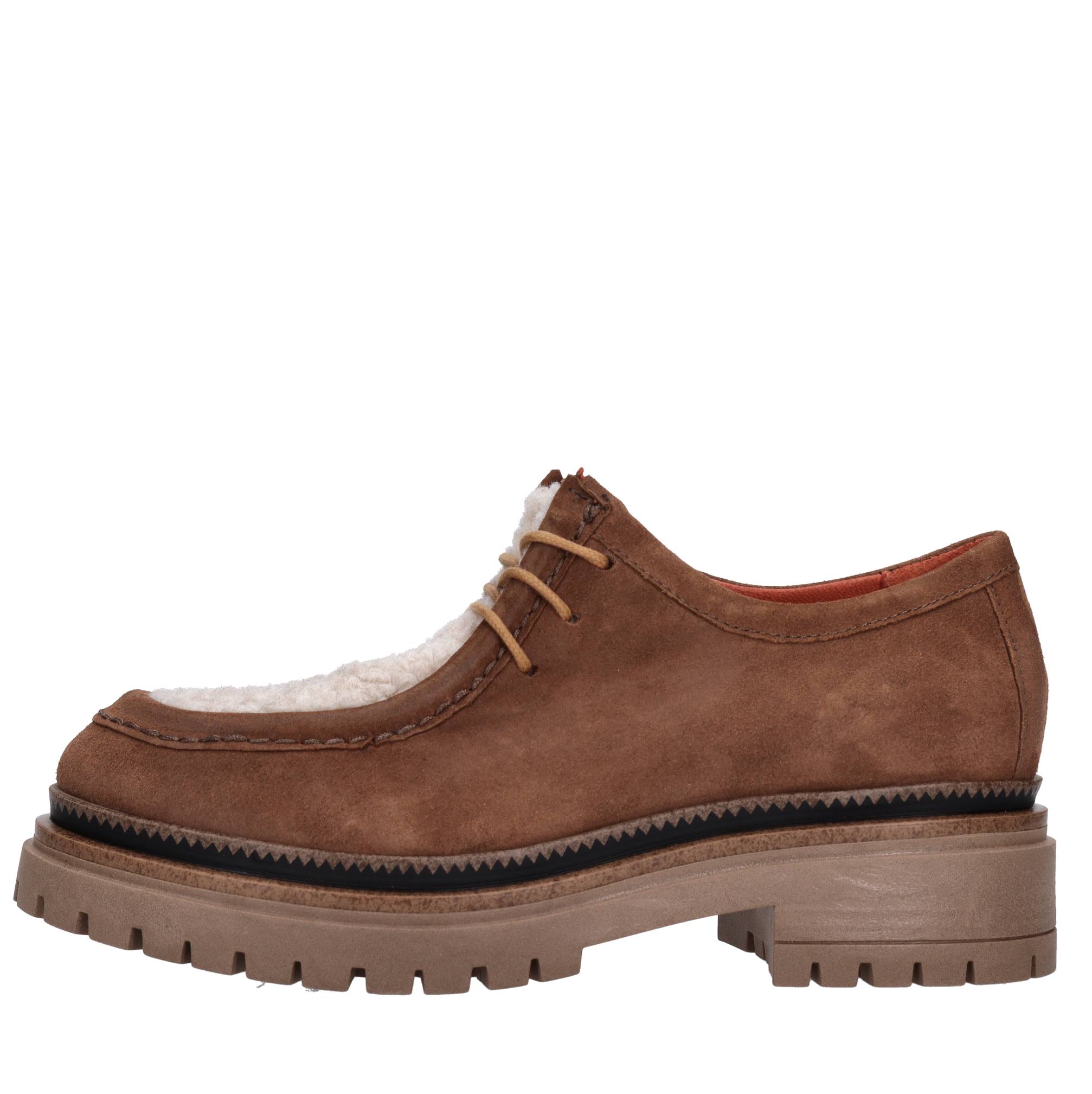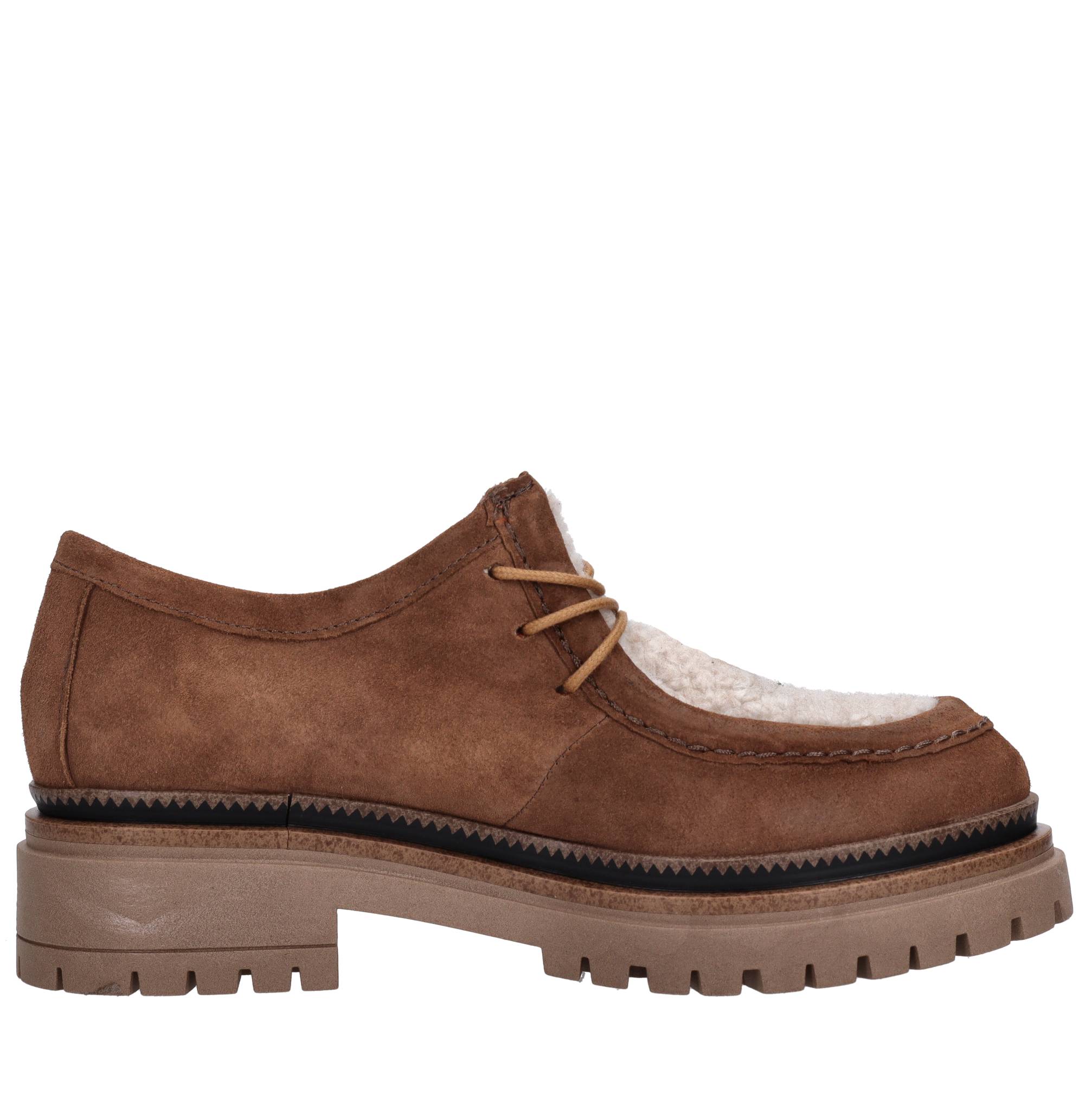 Stringate in camoscio. Tomaia interna in pelle. Suola esterna in gomma.