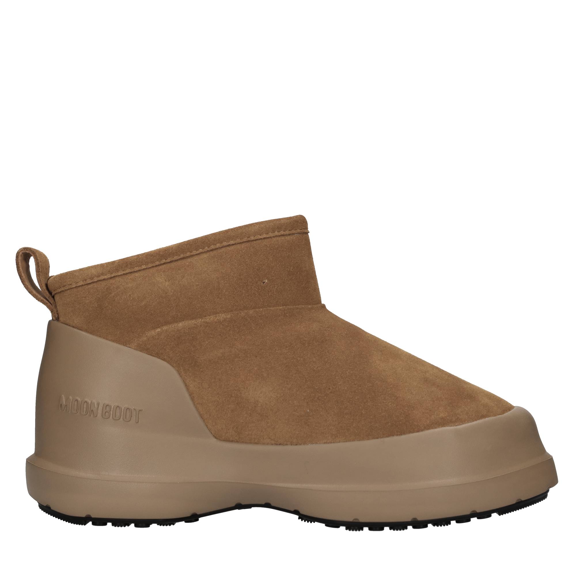 Moon Boot in camoscio. Tomaia interna in tessuto termo isolante ed ecopelliccia. Suola esterna in gomma. Calzatura ambidestra.