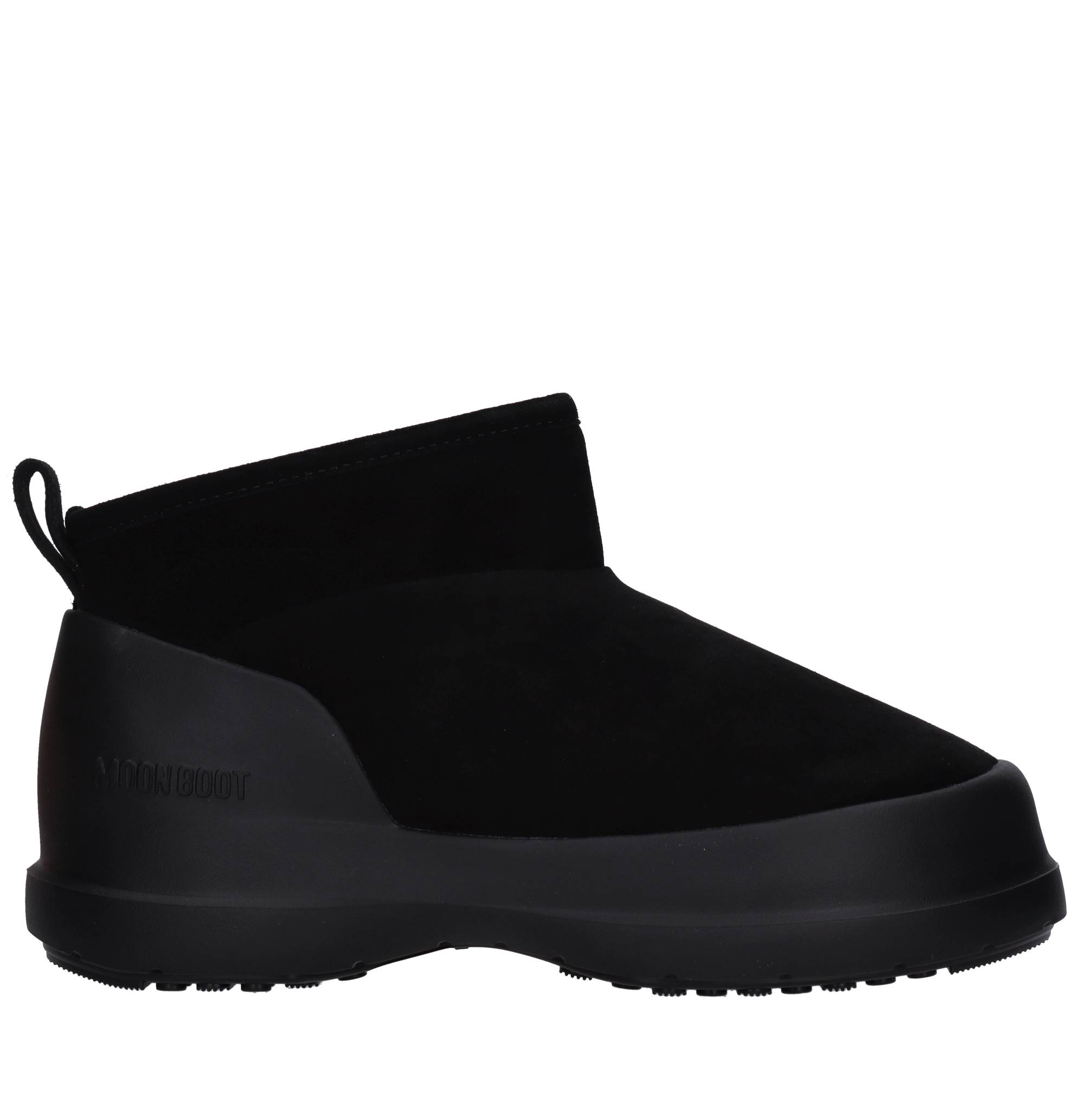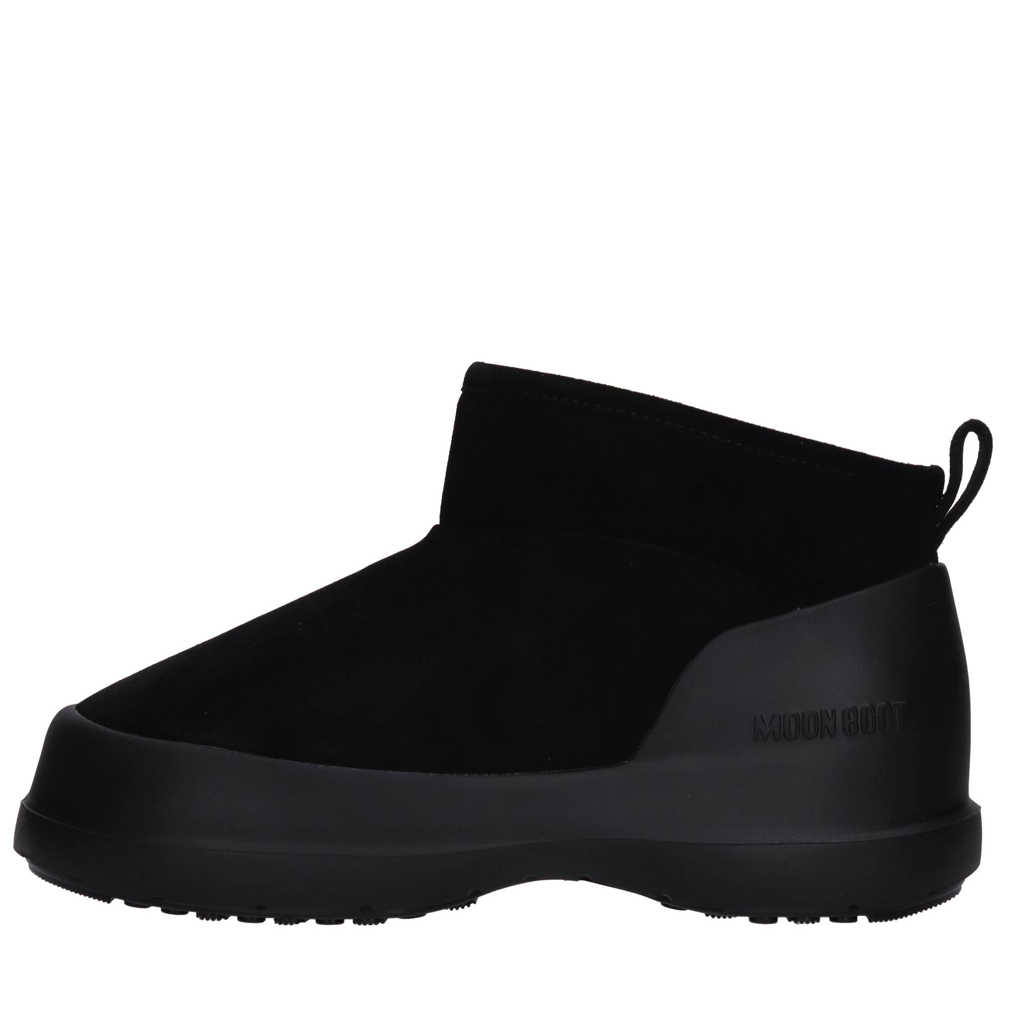 Moon Boot in camoscio. Tomaia interna in tessuto termo isolante ed ecopelliccia. Suola esterna in gomma. Calzatura ambidestra.