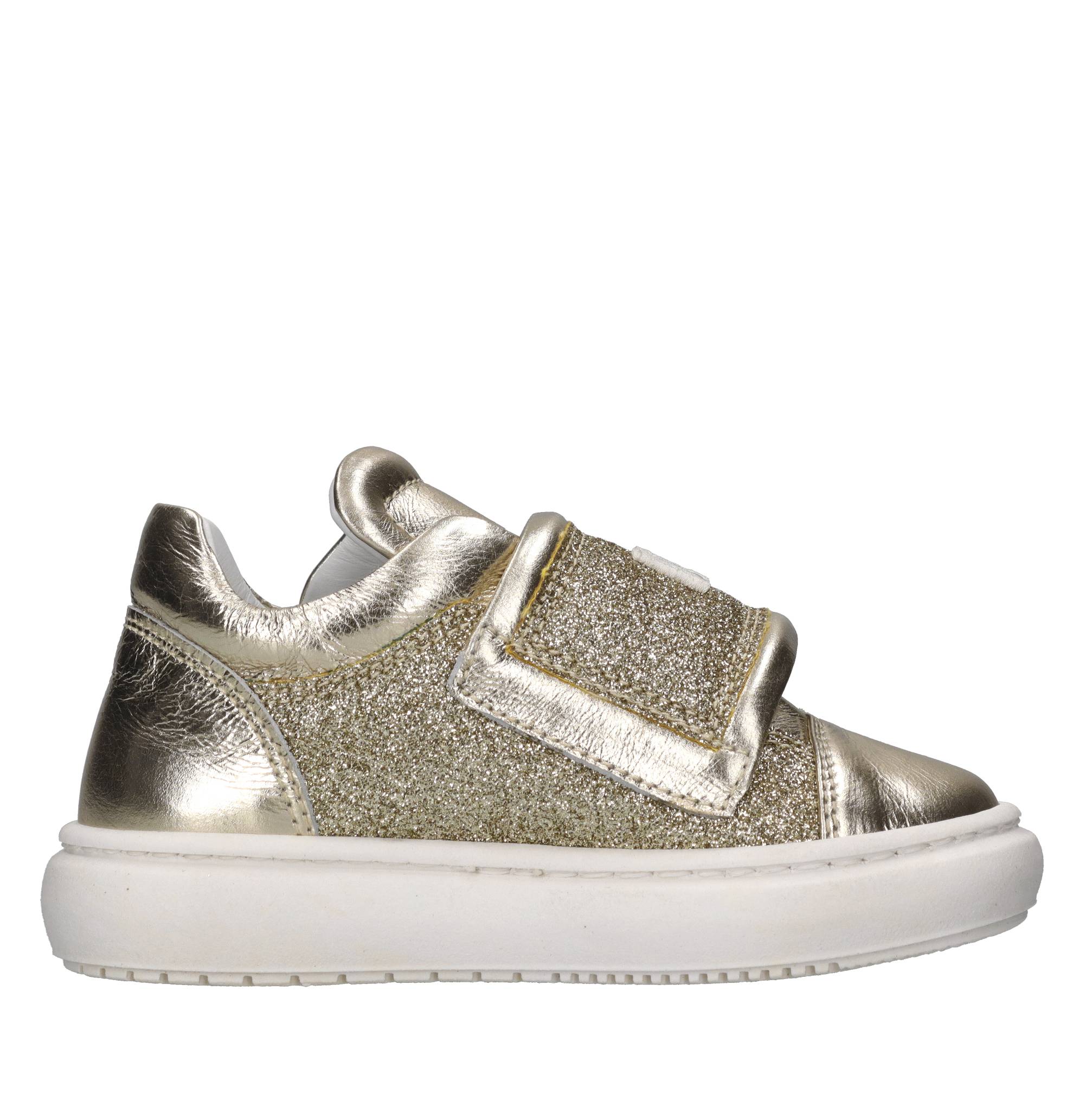 Sneakers in pelle e glitter. Tomaia interna in pelle. Suola esterna in gomma.