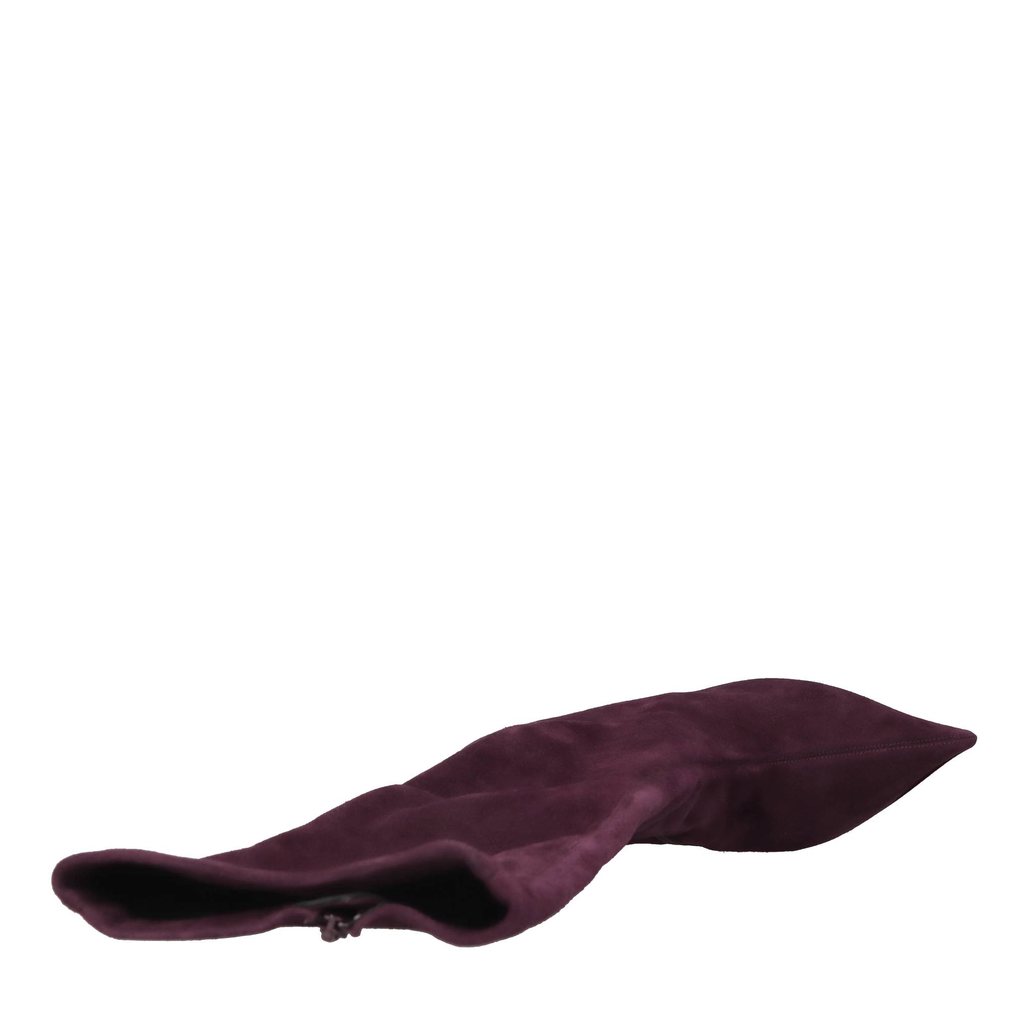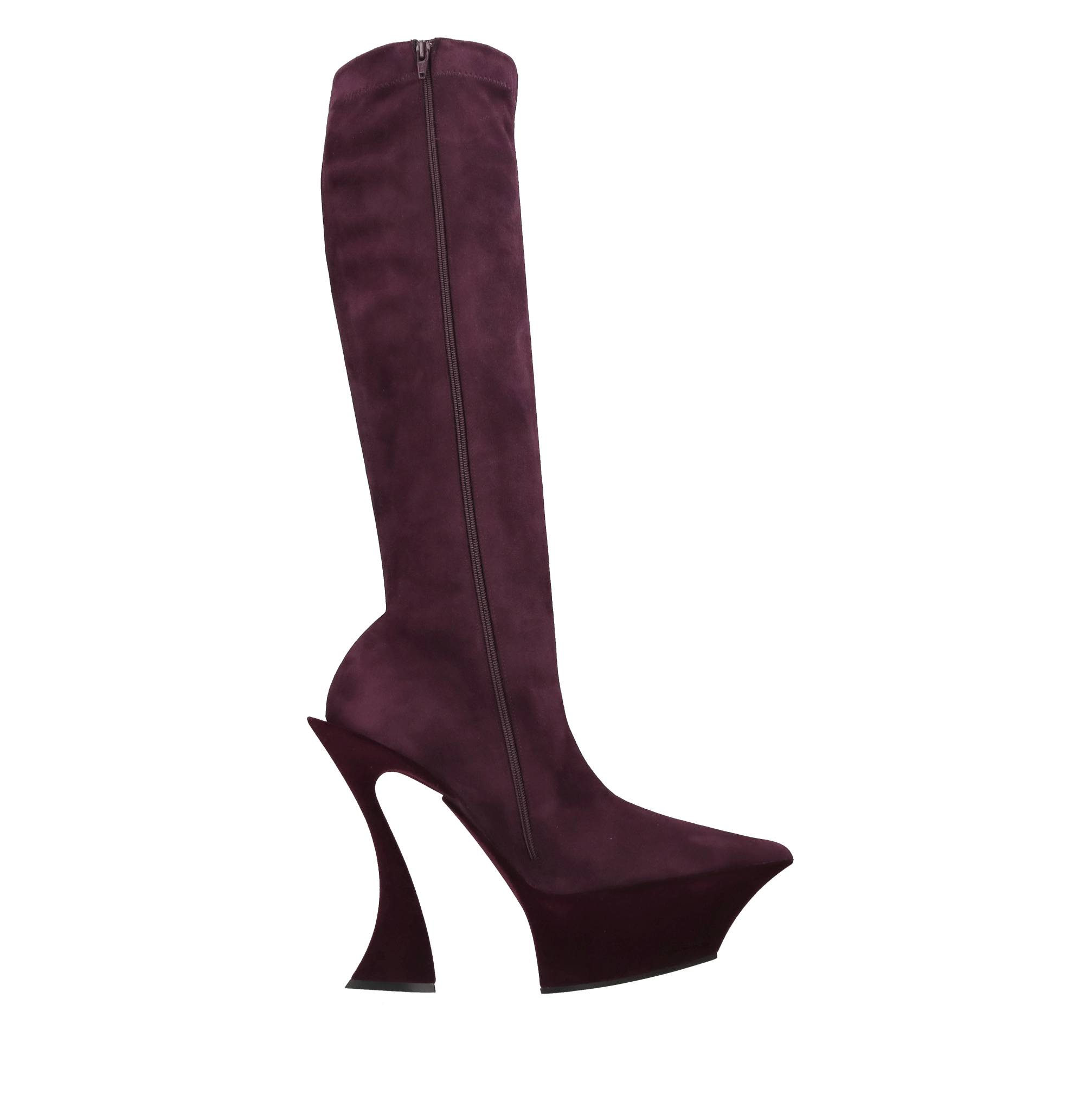 Stivali in camoscio. Strech. Tomaia interna in pelle e tessuto. Suola esterna in gomma e cuoio. Campionario. Piccole imperfezioni dovute a prove in negozio. Zip laterale interna. Plateau: 5,5 cm. Spedito su scatola neutra.