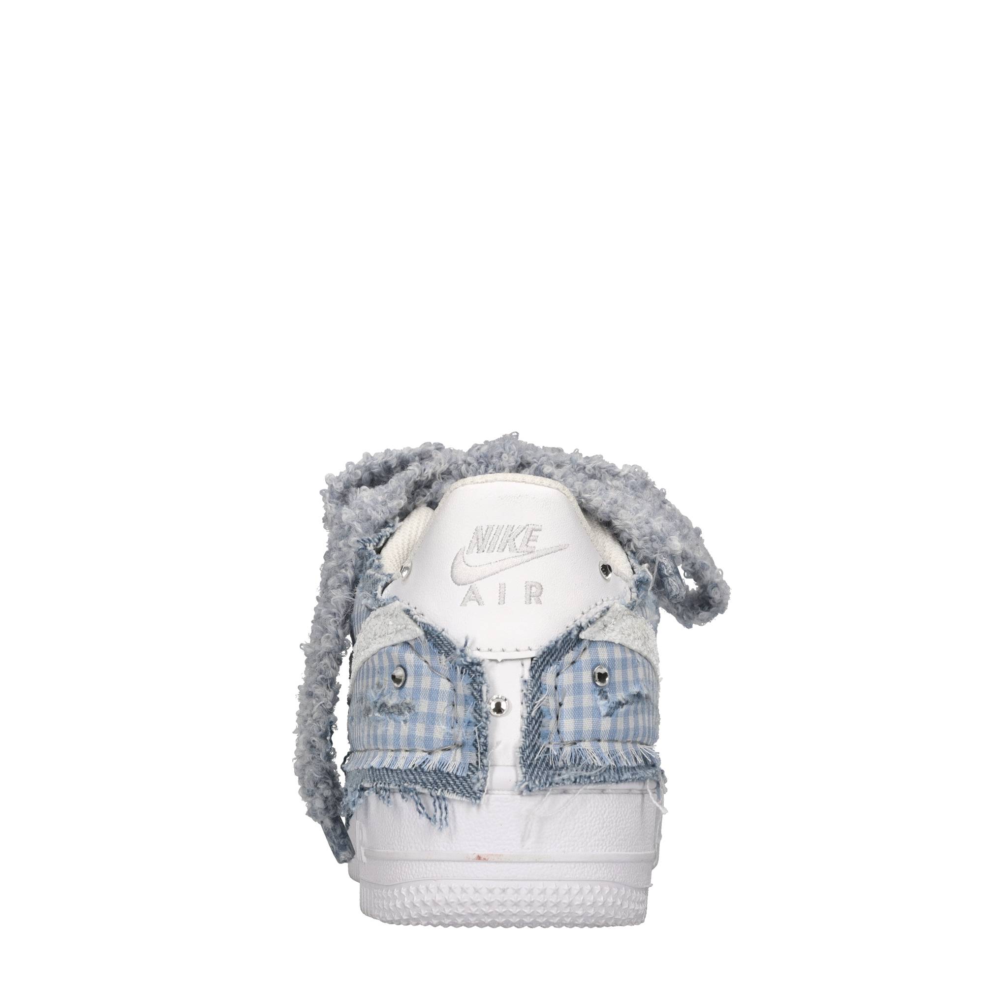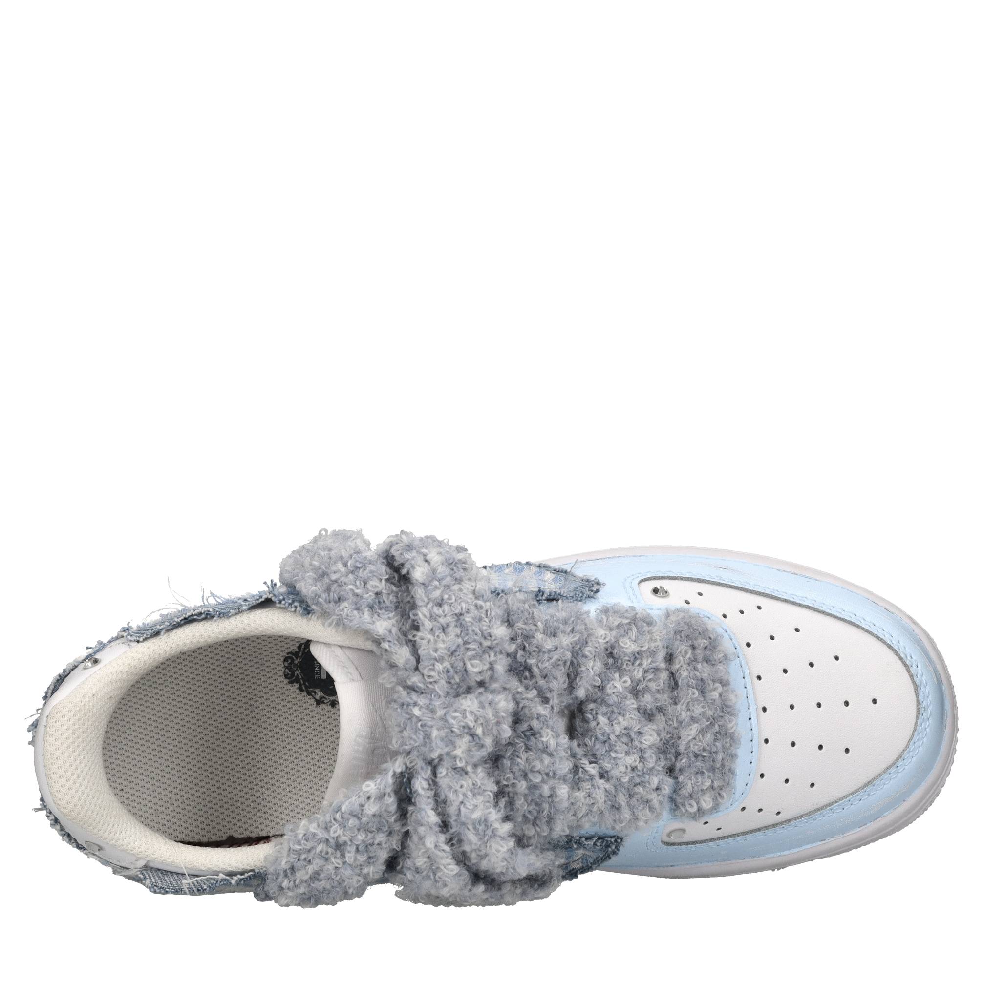Sneakers Air Force 1 in pelle e tessuto. Strass e glitter applicati. Tomaia interna in tessuto. Suola esterna in gomma. Lacci in ecopelliccia.