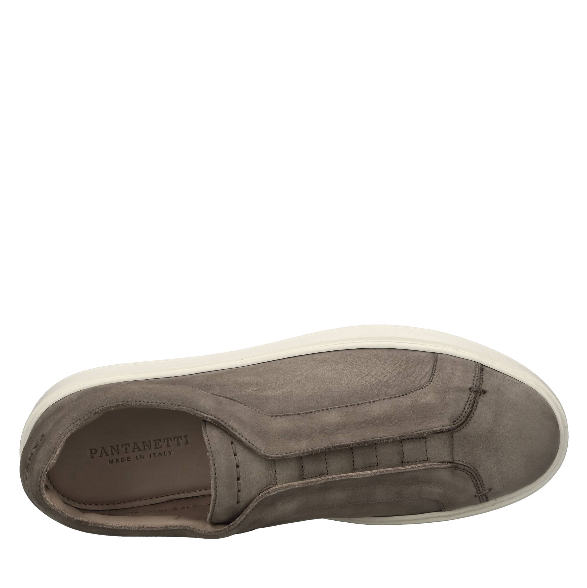 Slip on in nabuk. Tomaia interna in pelle. Suola esterna in gomma.