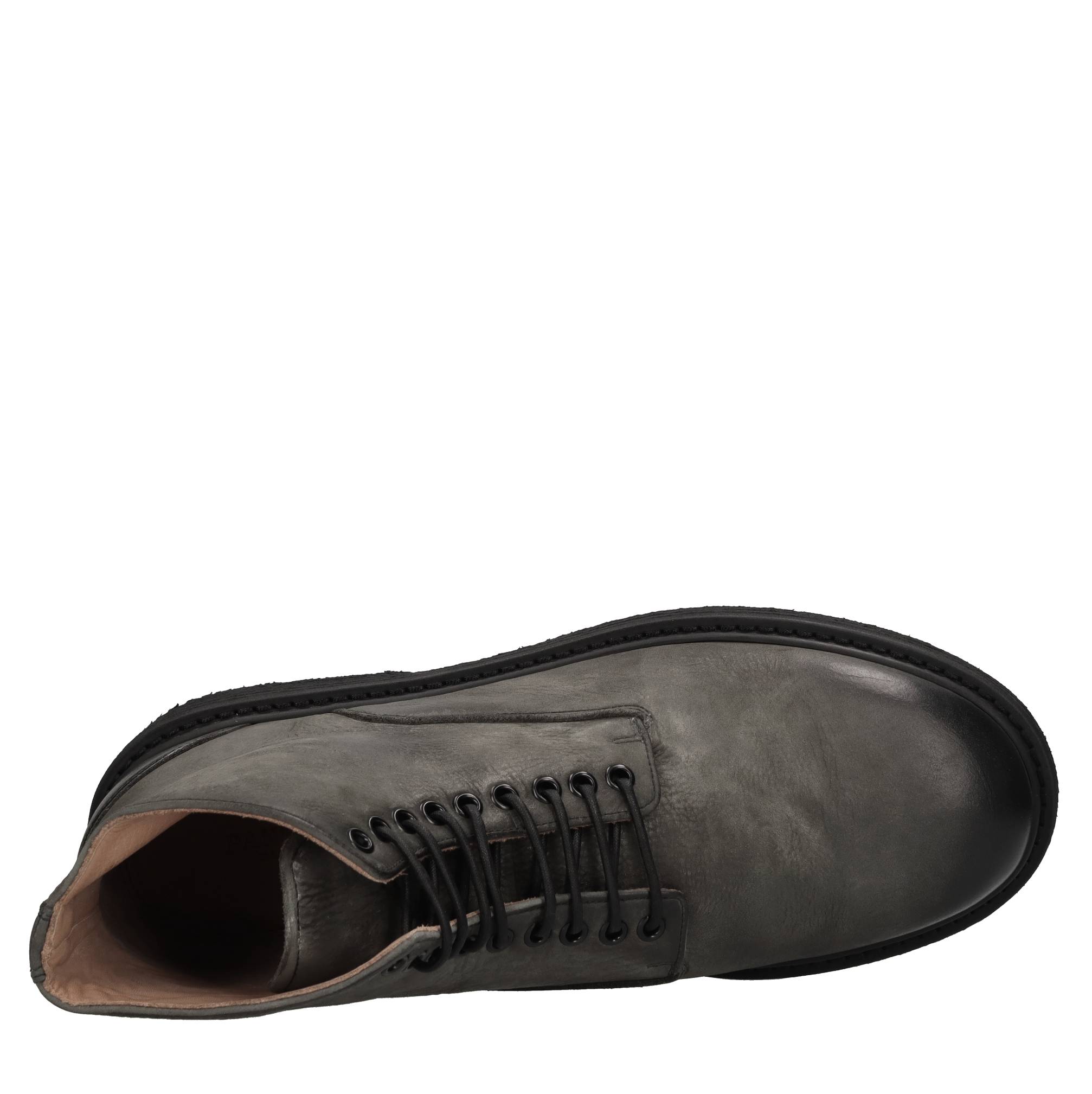 Stivaletti in pelle. Tomaia interna in pelle. Suola esterna in gomma. Effetto vintage.