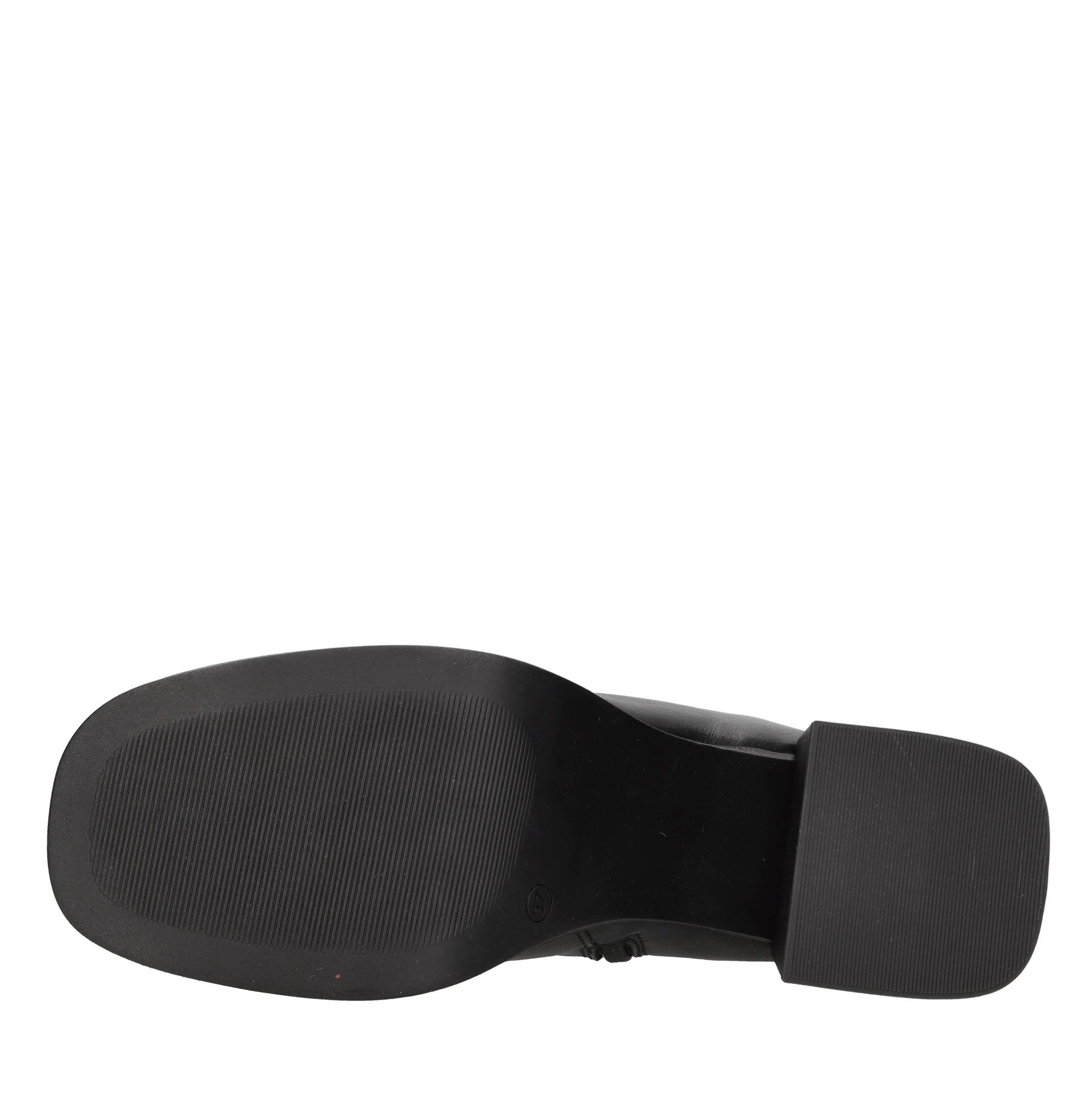 Tronchetti in pelle. Plateau 3,5cm. Suola esterna in gomma. Tomaia interna in pelle.