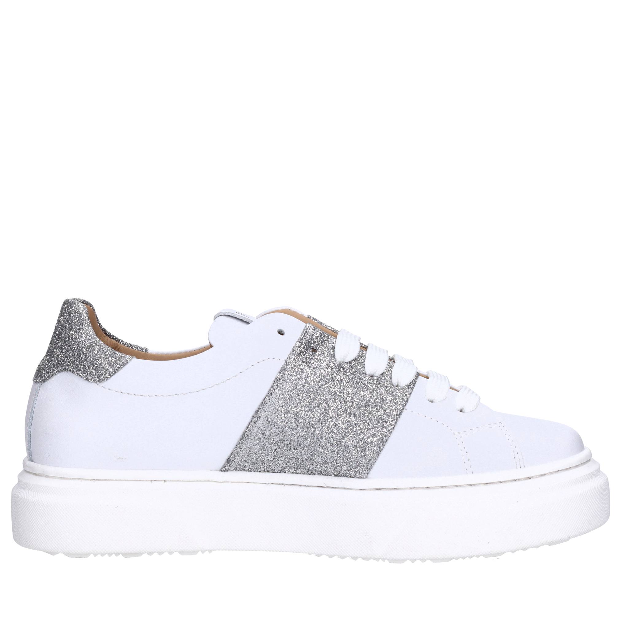 Sneakers in pelle. Dettagli in glitter argento. Tomaia interna in pelle. Suola esterna in gomma.