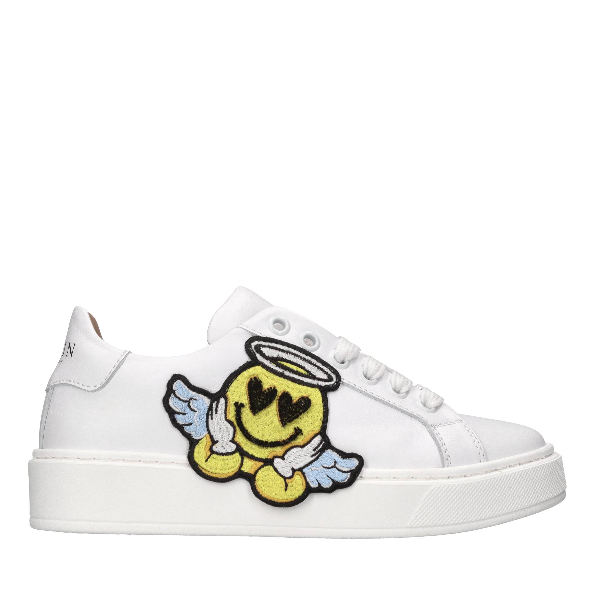 Sneakers in pelle. Tomaia interna in pelle. Suola esterna in gomma. Applicazioni in tessuto.