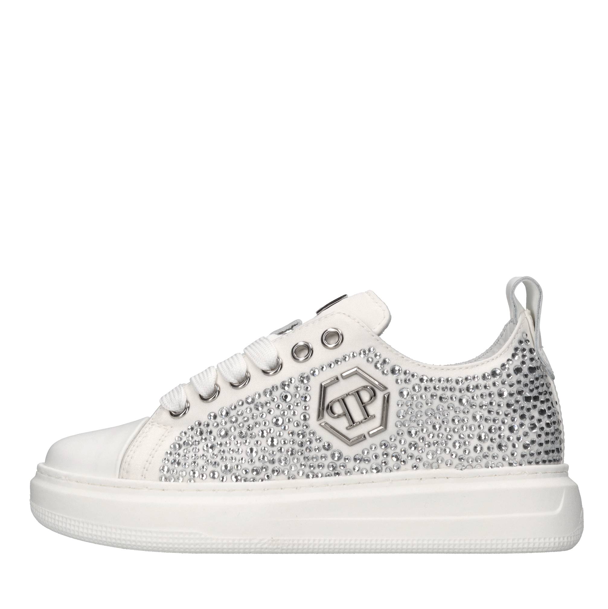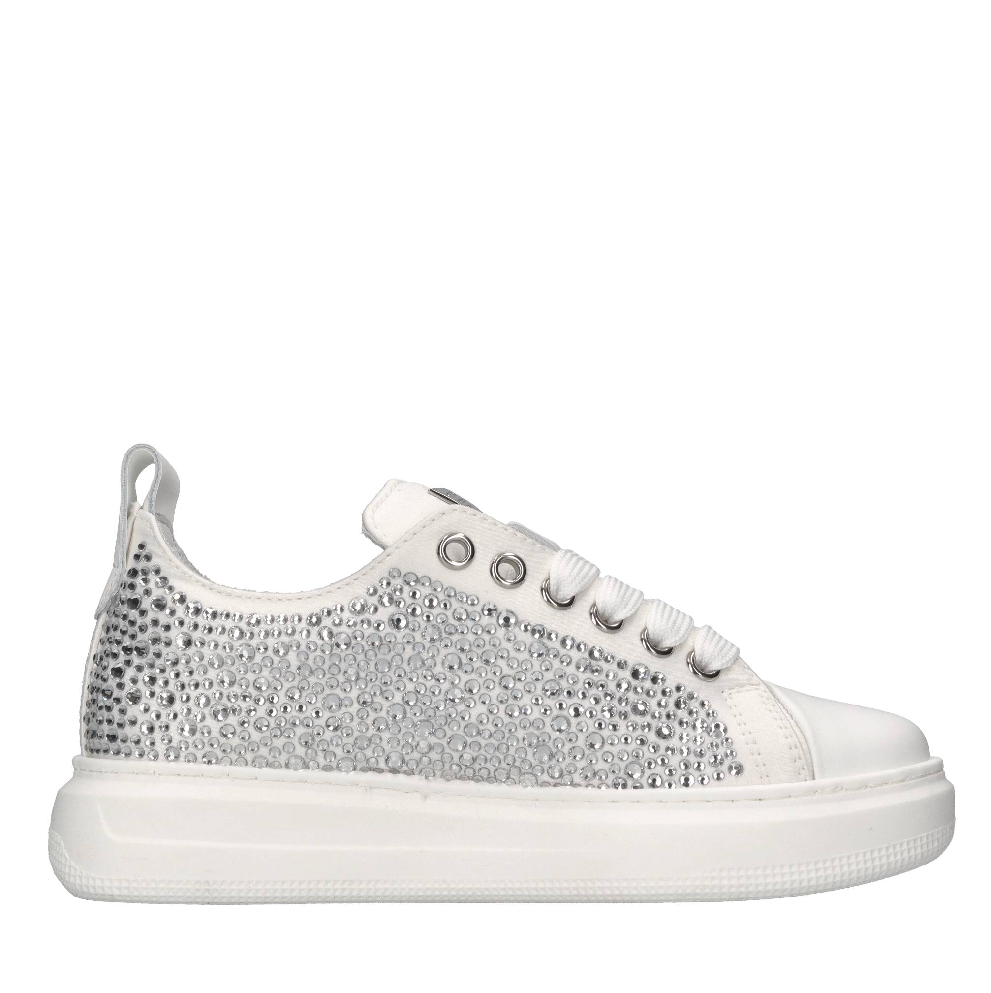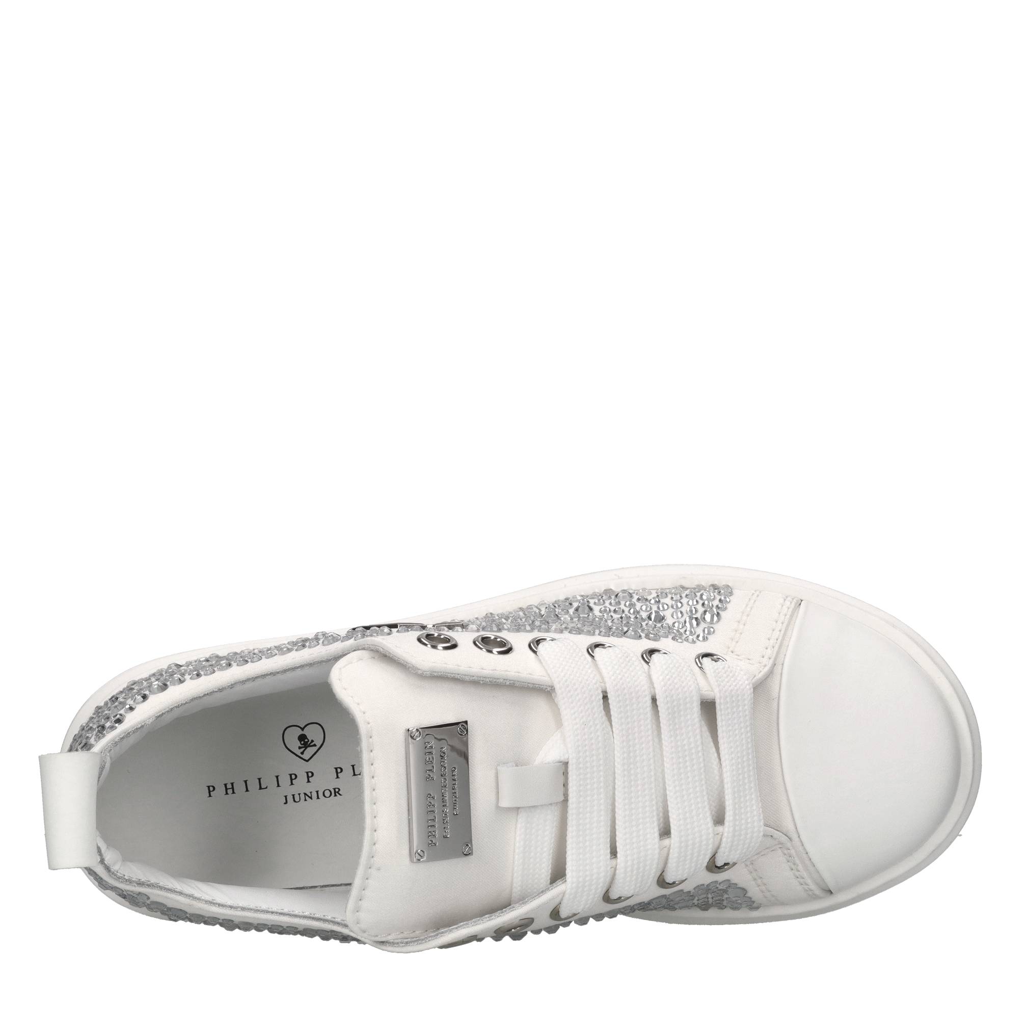 Sneakers in pelle e strass. Tomaia interna in pelle. Suola esterna in gomma.