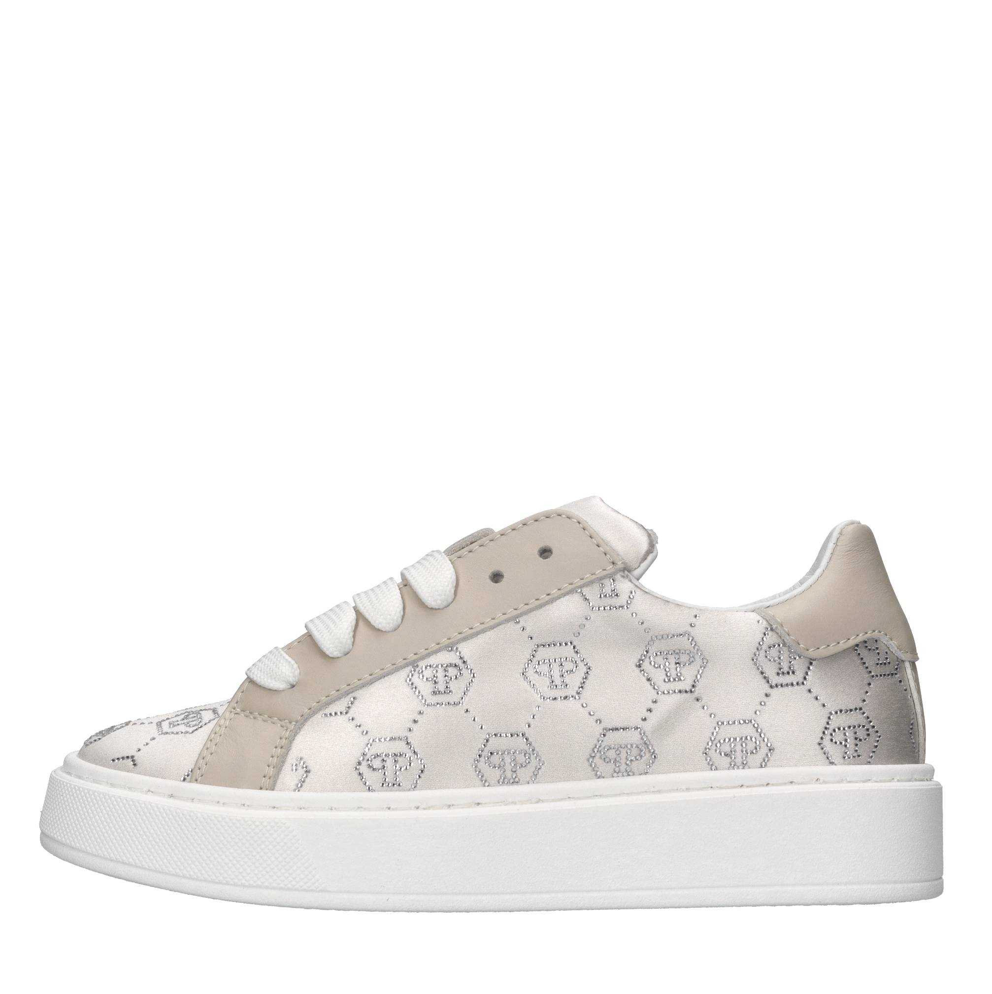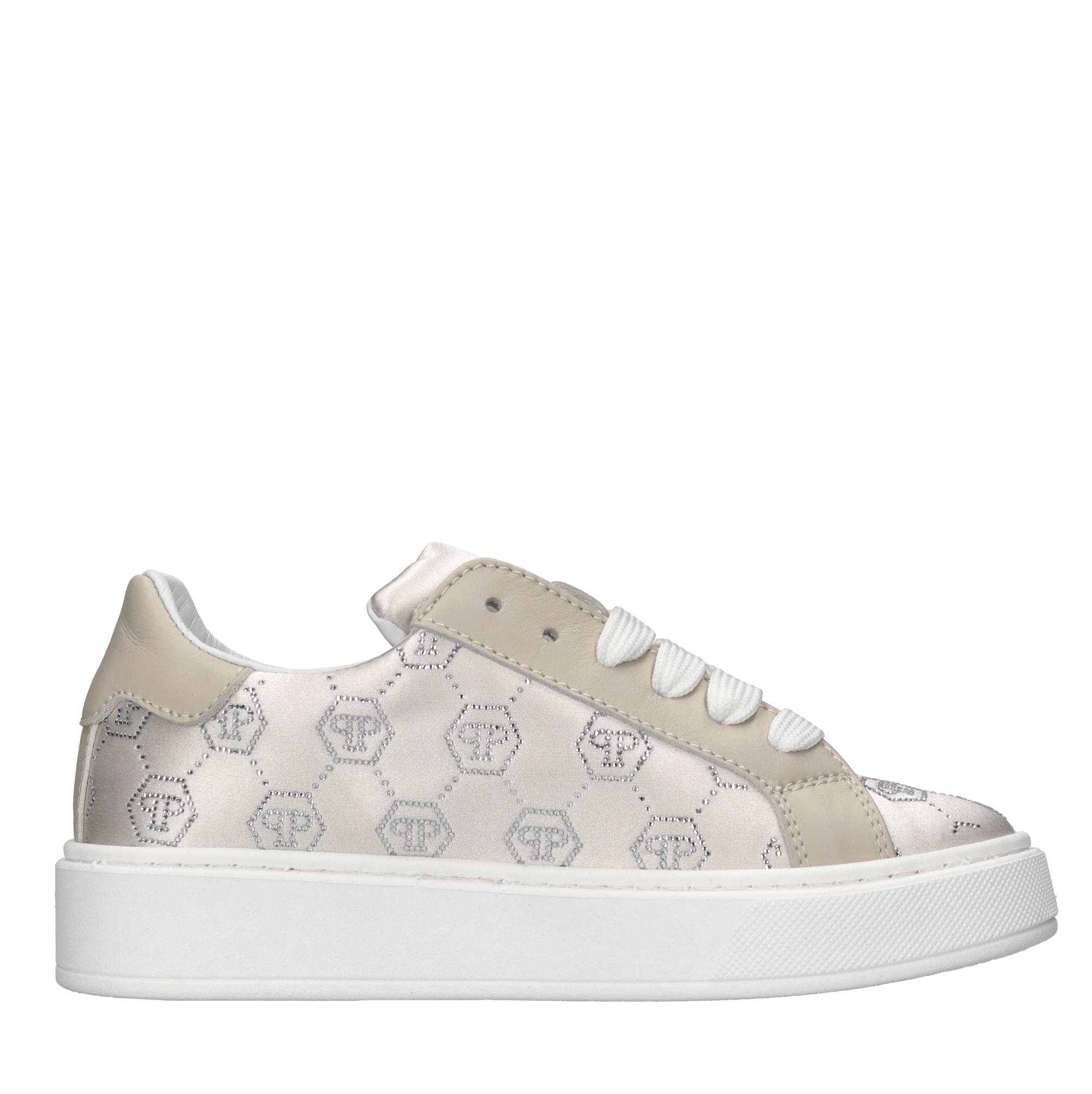 Sneakers in raso e strass. Tomaia interna in pelle. Suola esterna in gomma.