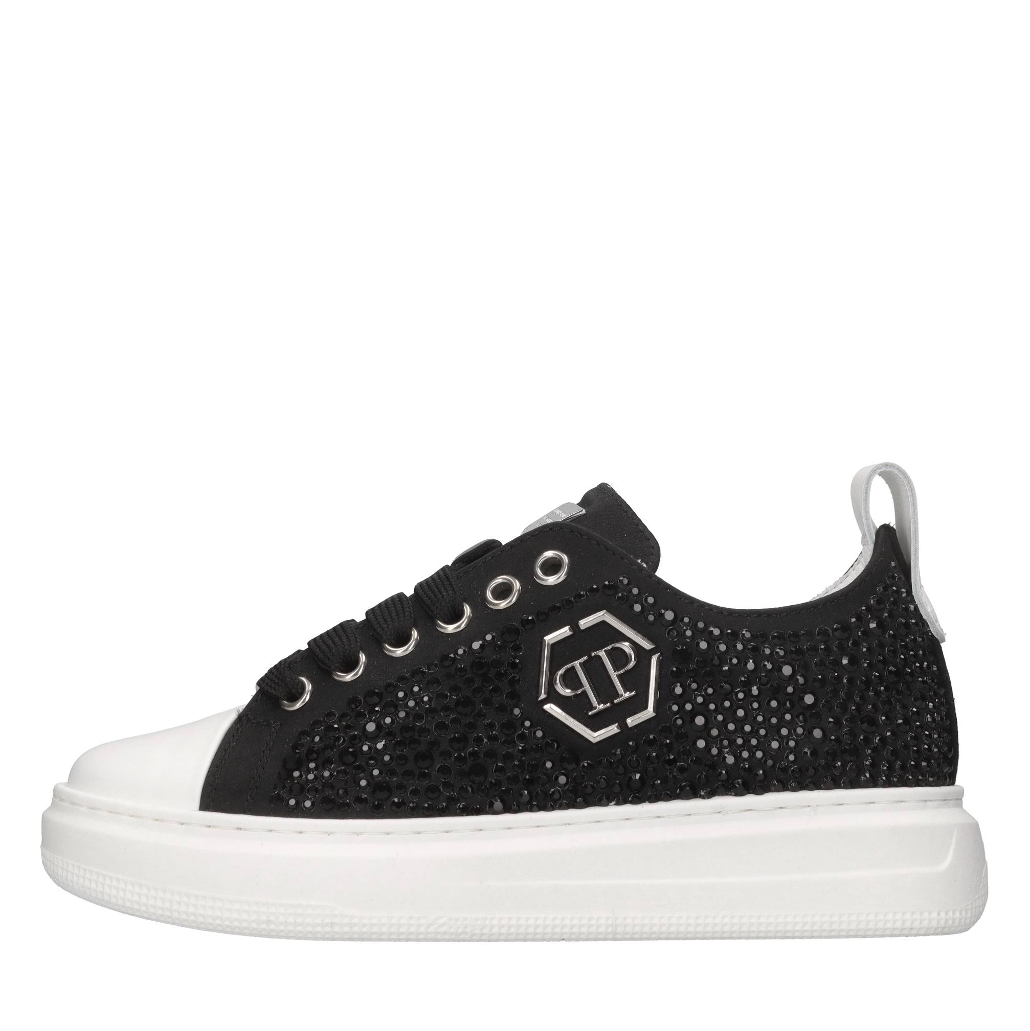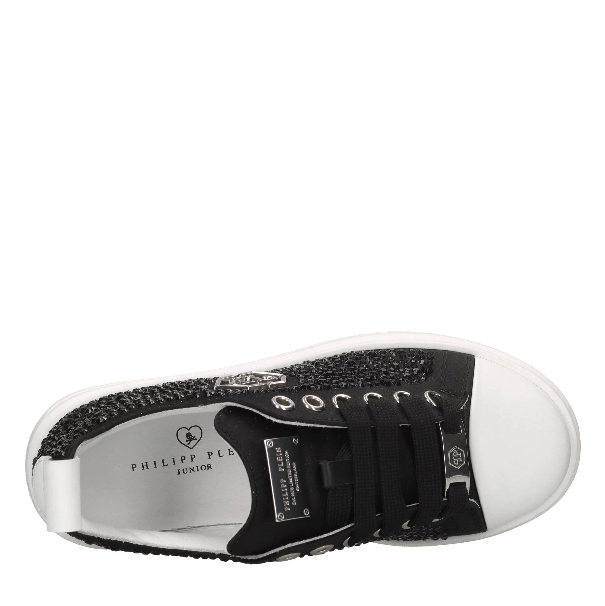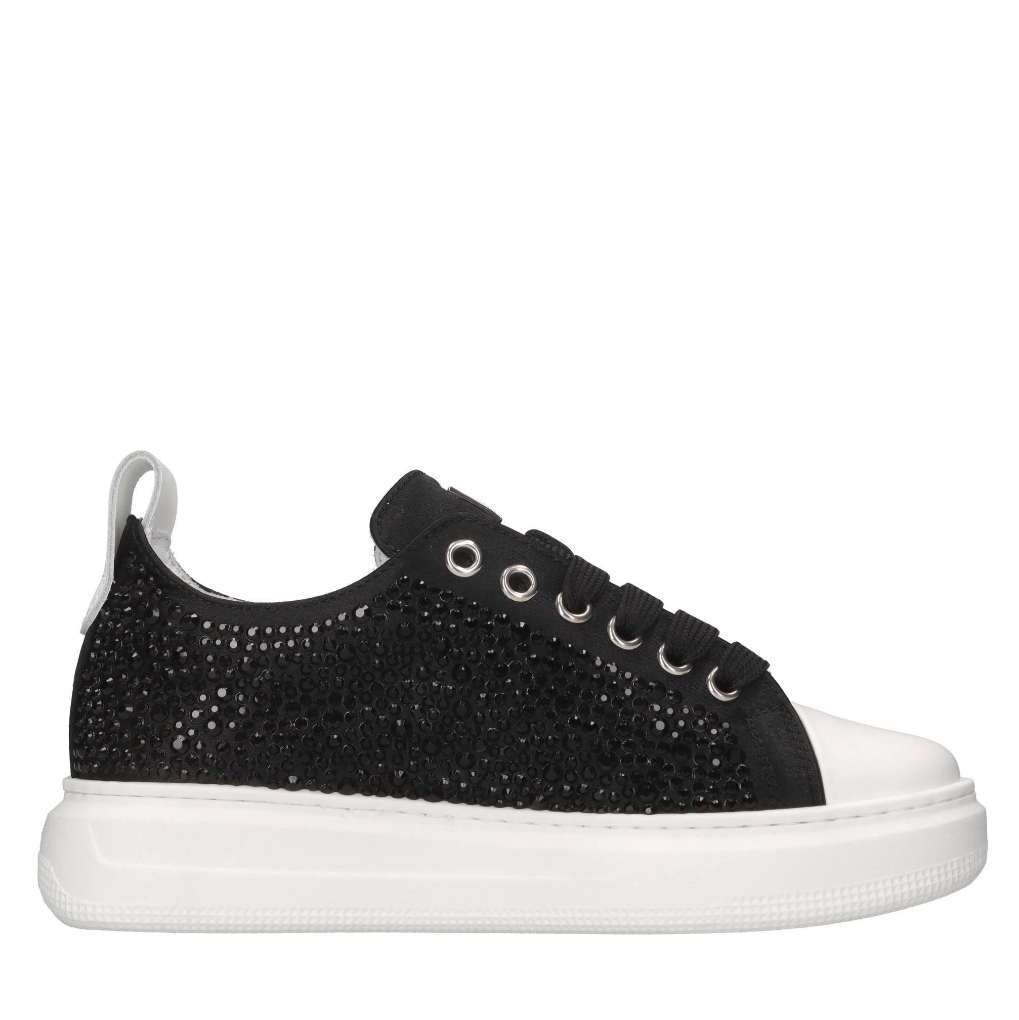 Sneakers in raso e strass. Tomaia interna in pelle. Suola esterna in gomma.