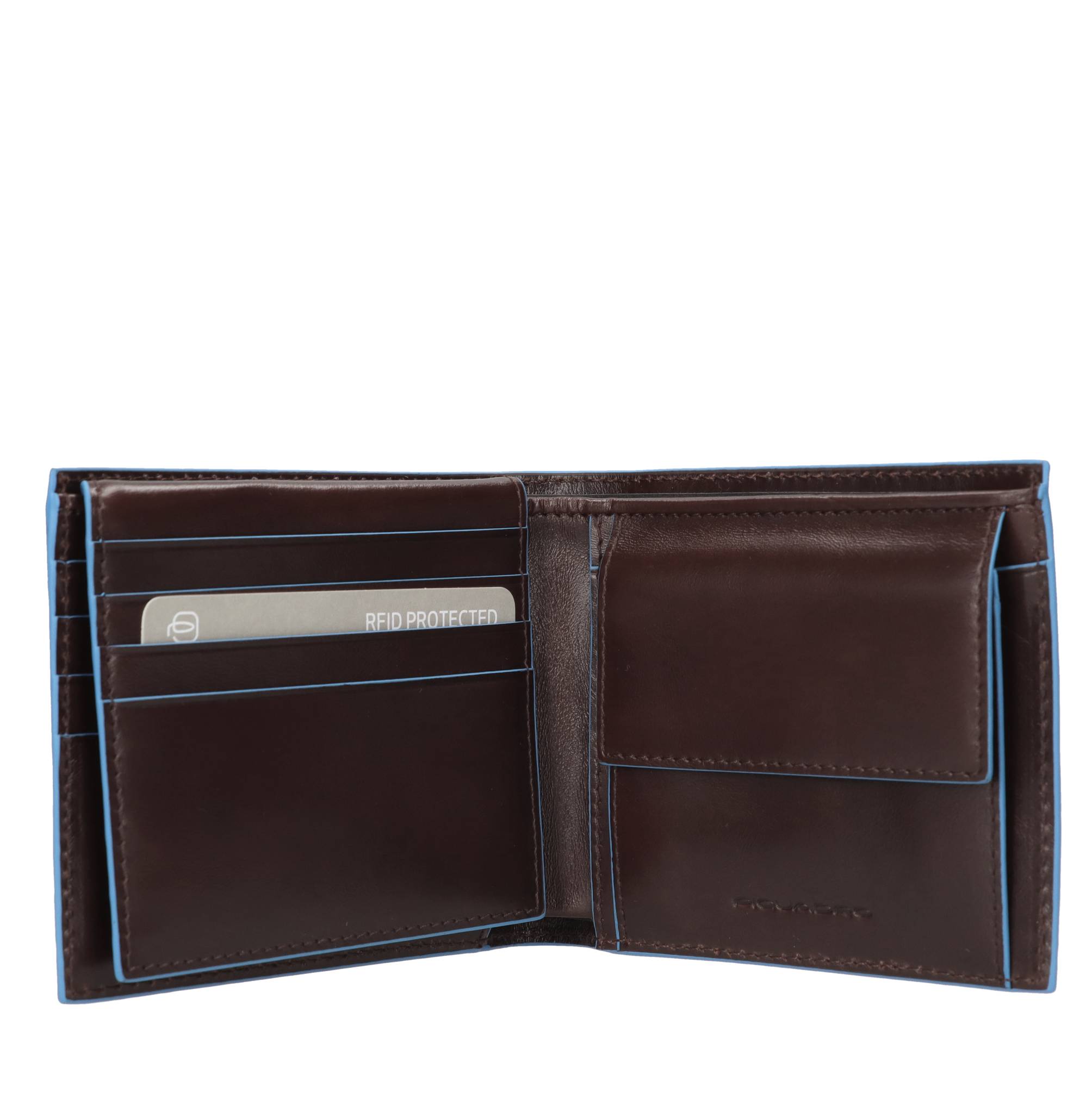Portafogli in pelle con volantino porta documenti, portacarte di credito e protezione RFID. 2 comparti. Fessure per 7 carte di credito. Porta monete. Fodera interna: 100% Poliestere.