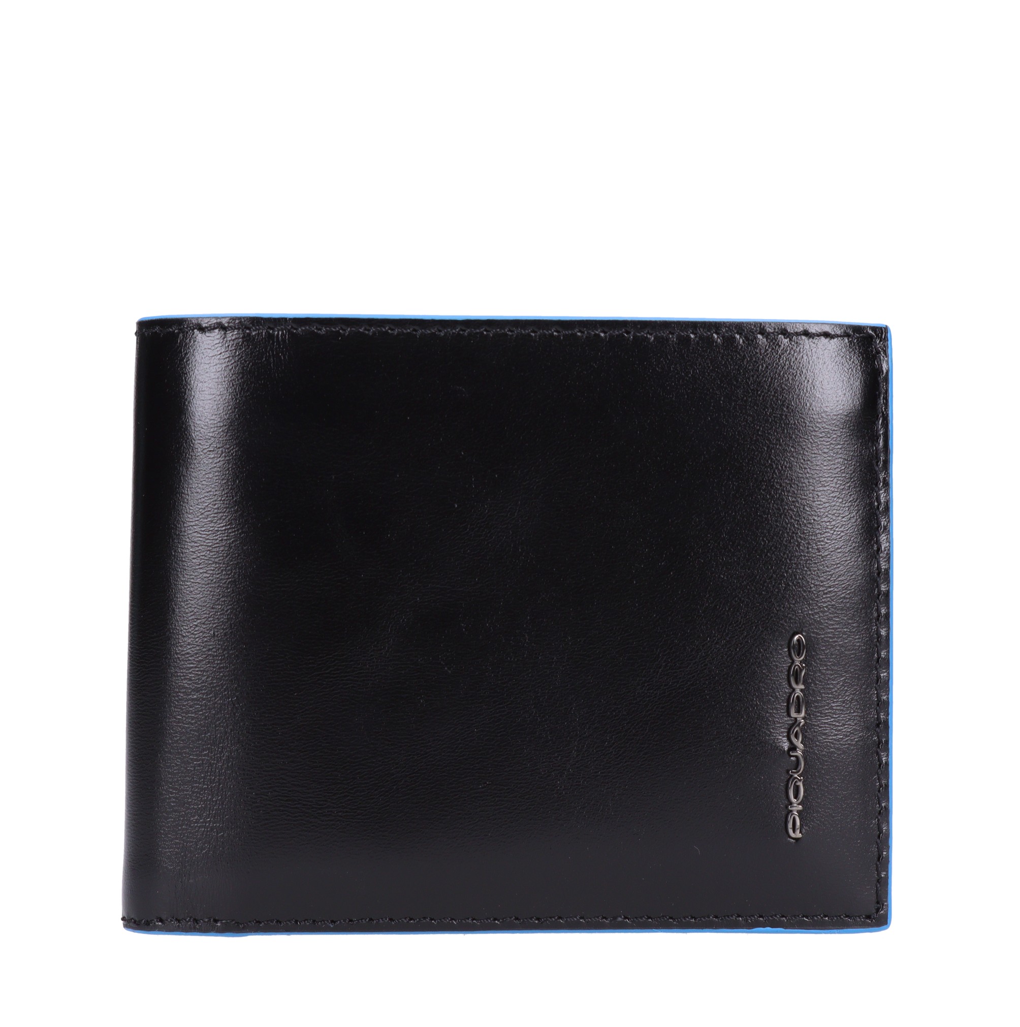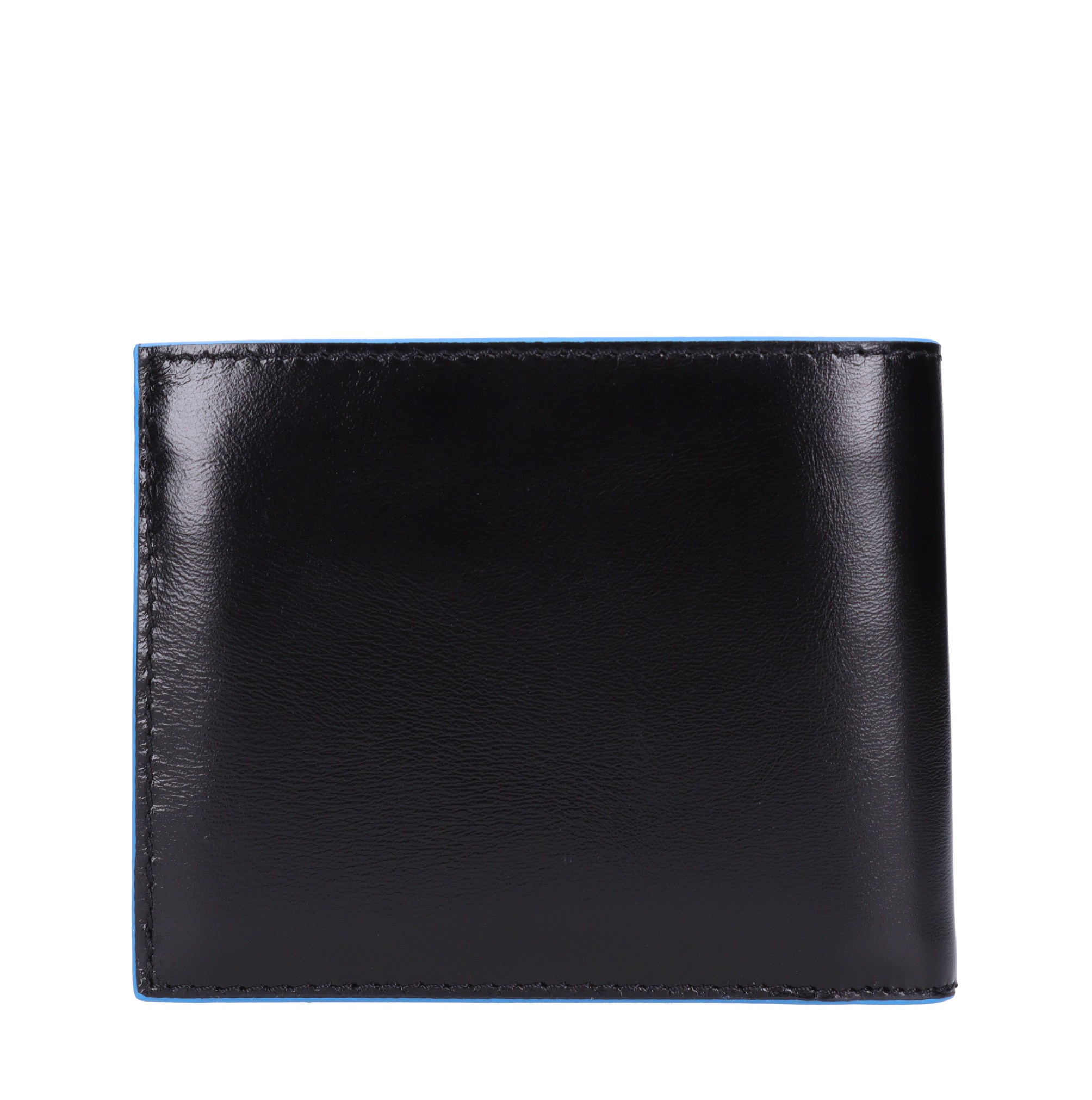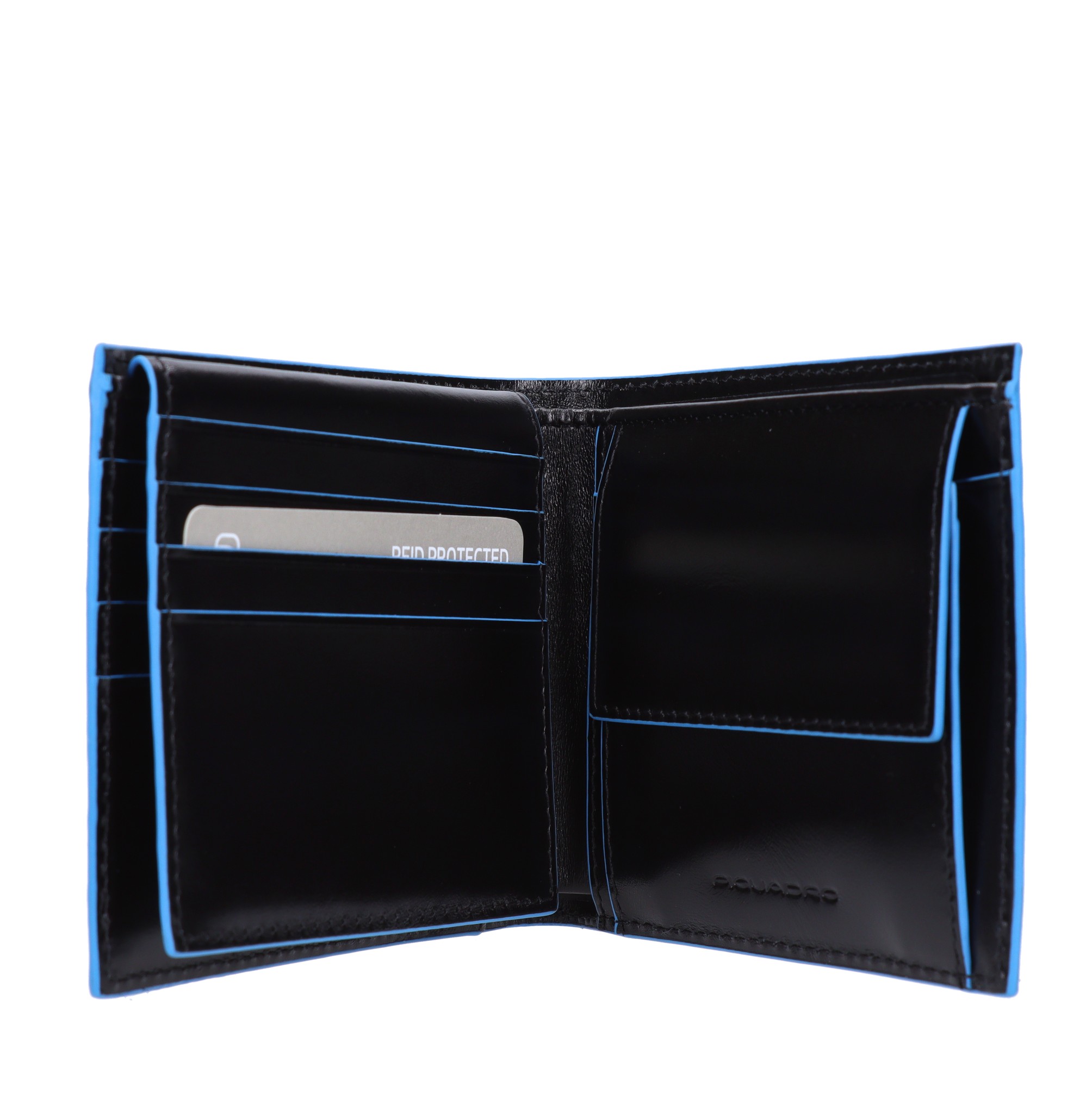Portafoglio in pelle. Fodera interna in poliestere. 2 comparti. Fessure porta carte. Protezione anti-frode RFID. Portamonete.