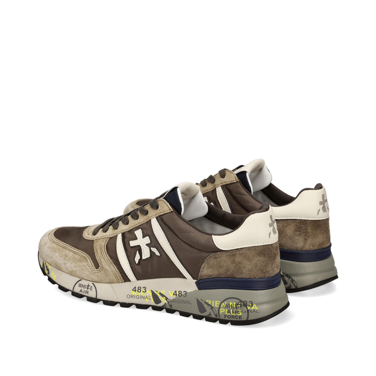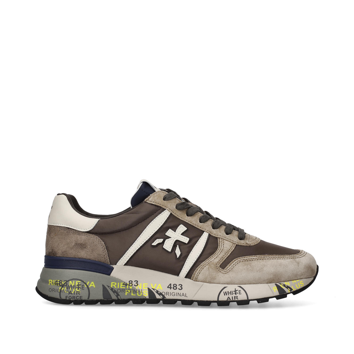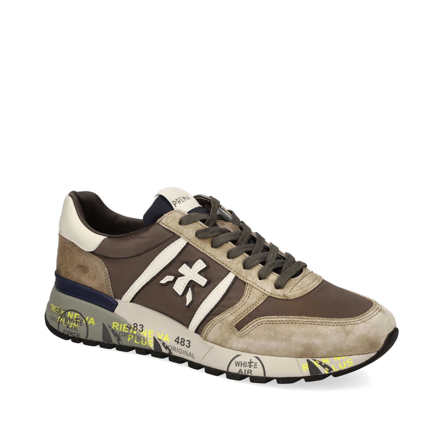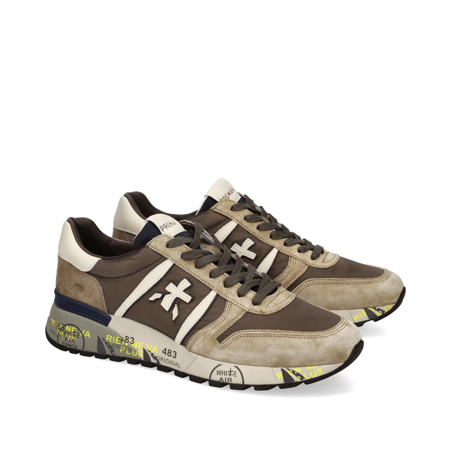 Sneakers in camoscio tessuto ed ecopelle. Tomaia interna in pelle. Suola esterna in gomma.