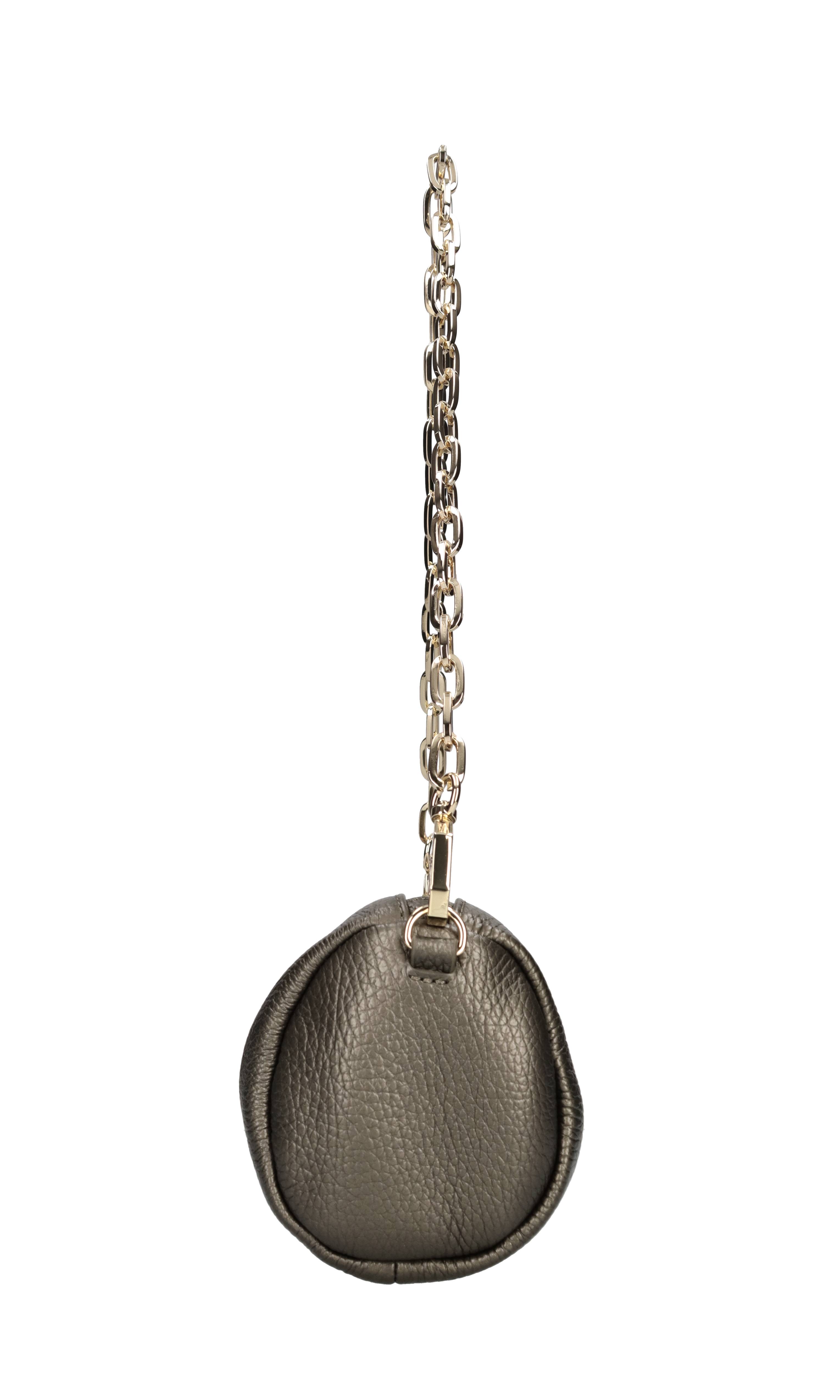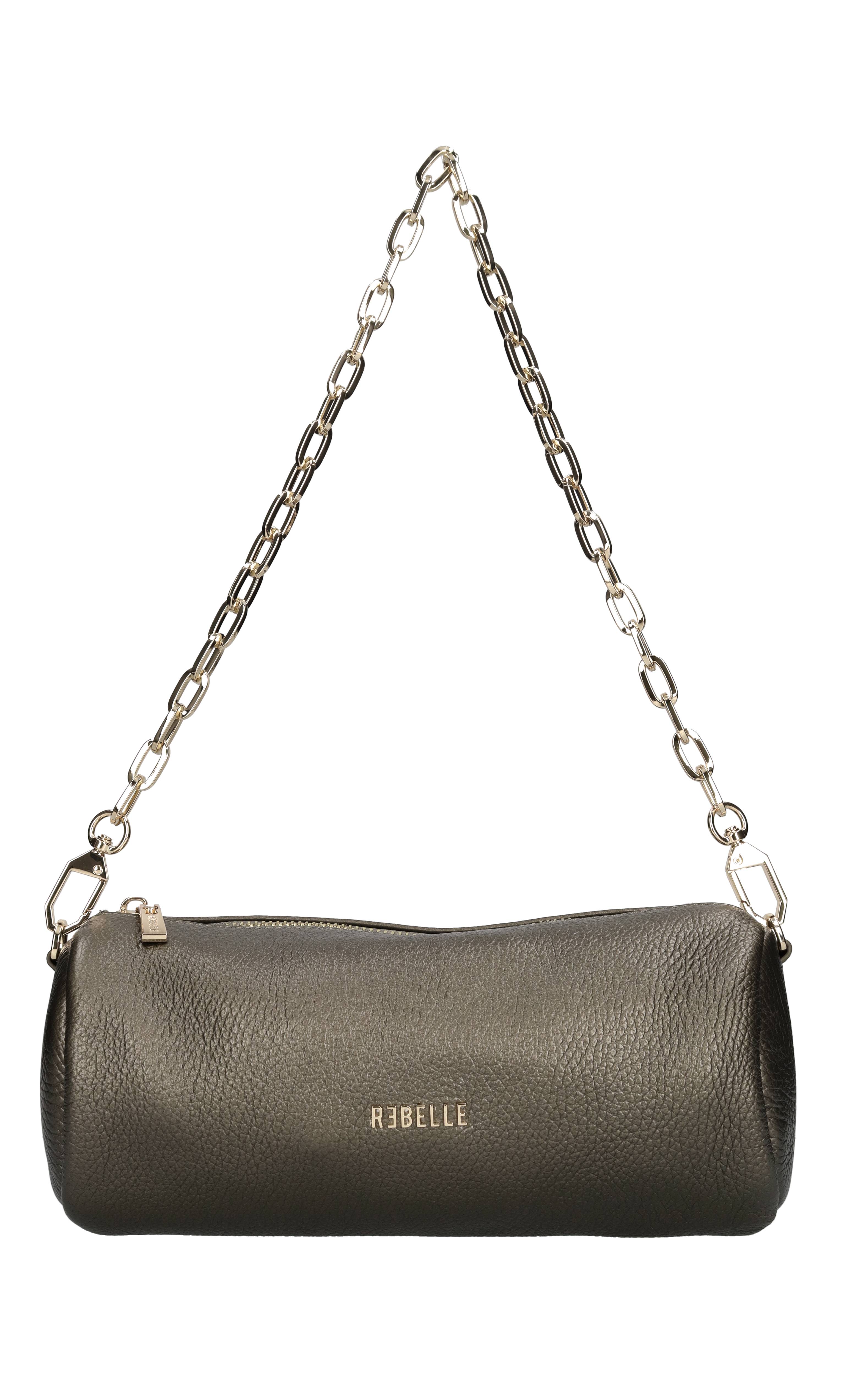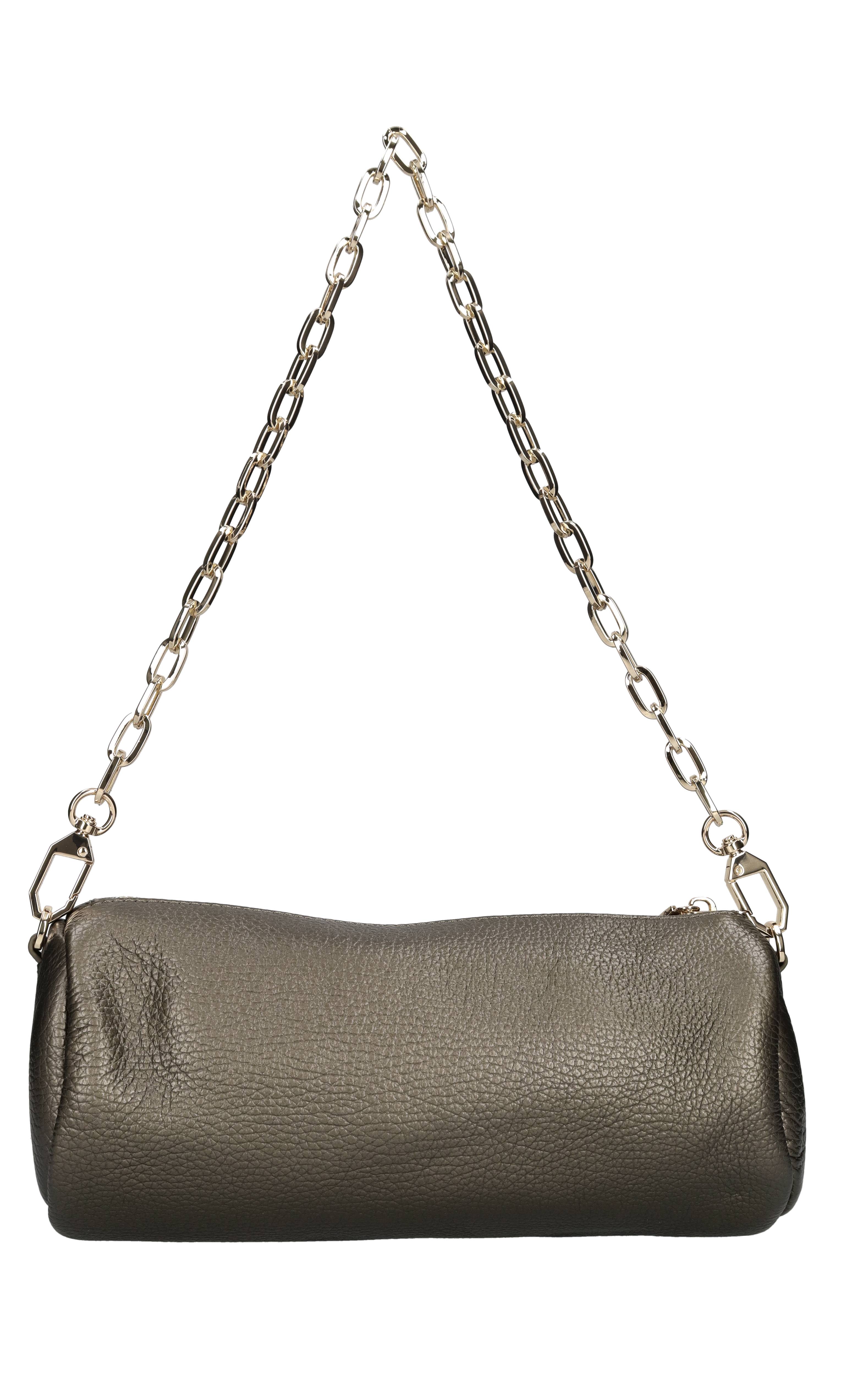 Borsa Lou Bondage in pelle. Martellata. 1 Comparto. Chiusura con zip. Tracolla in pelle e golden chain regolabile e rimovibile. Manico golden chain rimovibile.