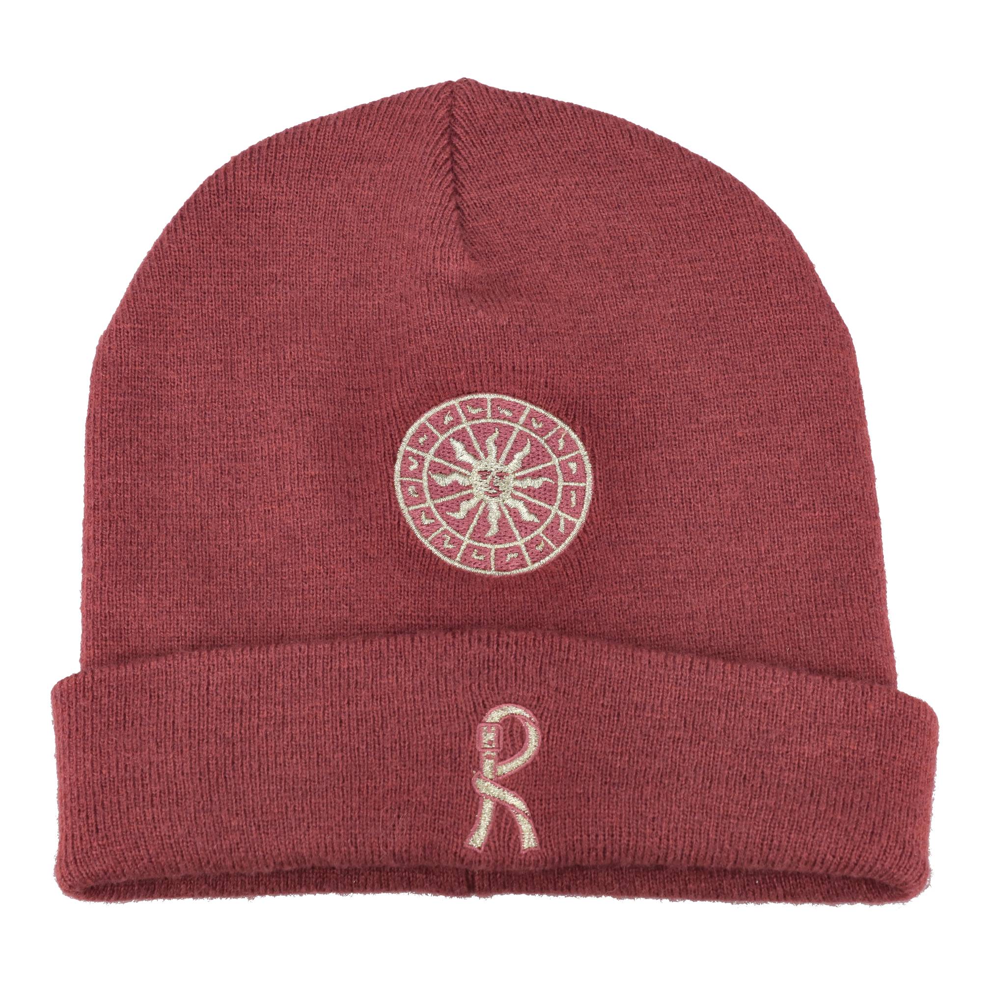 Berretto Meridiana in maglia. Ricamo in lurex color oro. Taglia unica. Spedito su bustina trasparente.