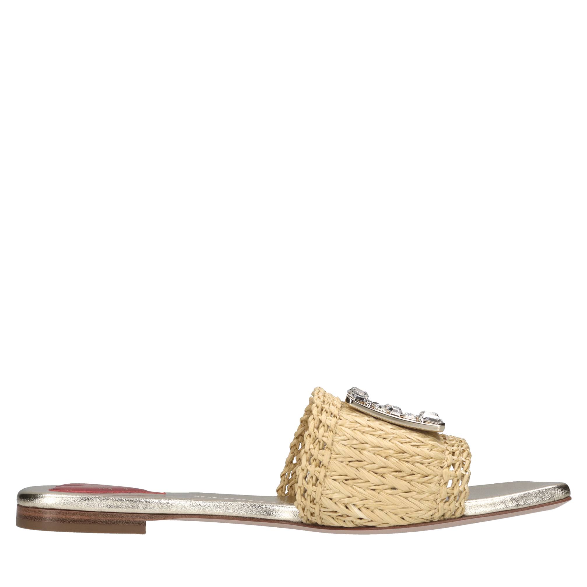 Flat in rafia e applicazioni.Tomaia interna in pelle.Suola esterna in cuoio.