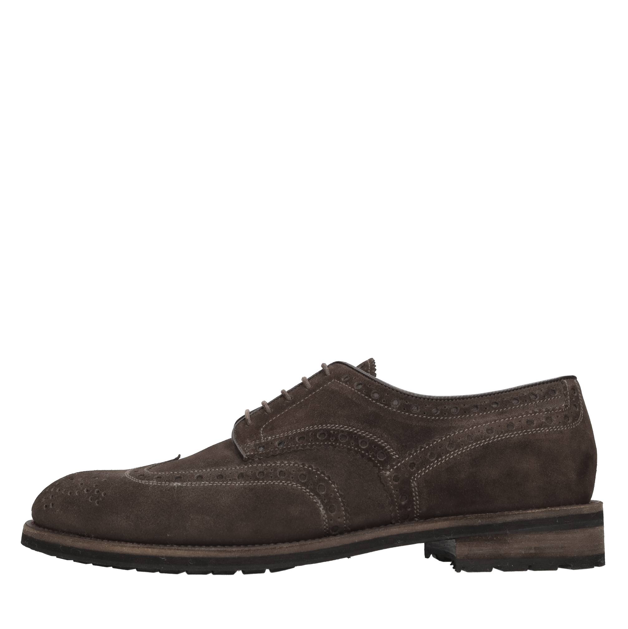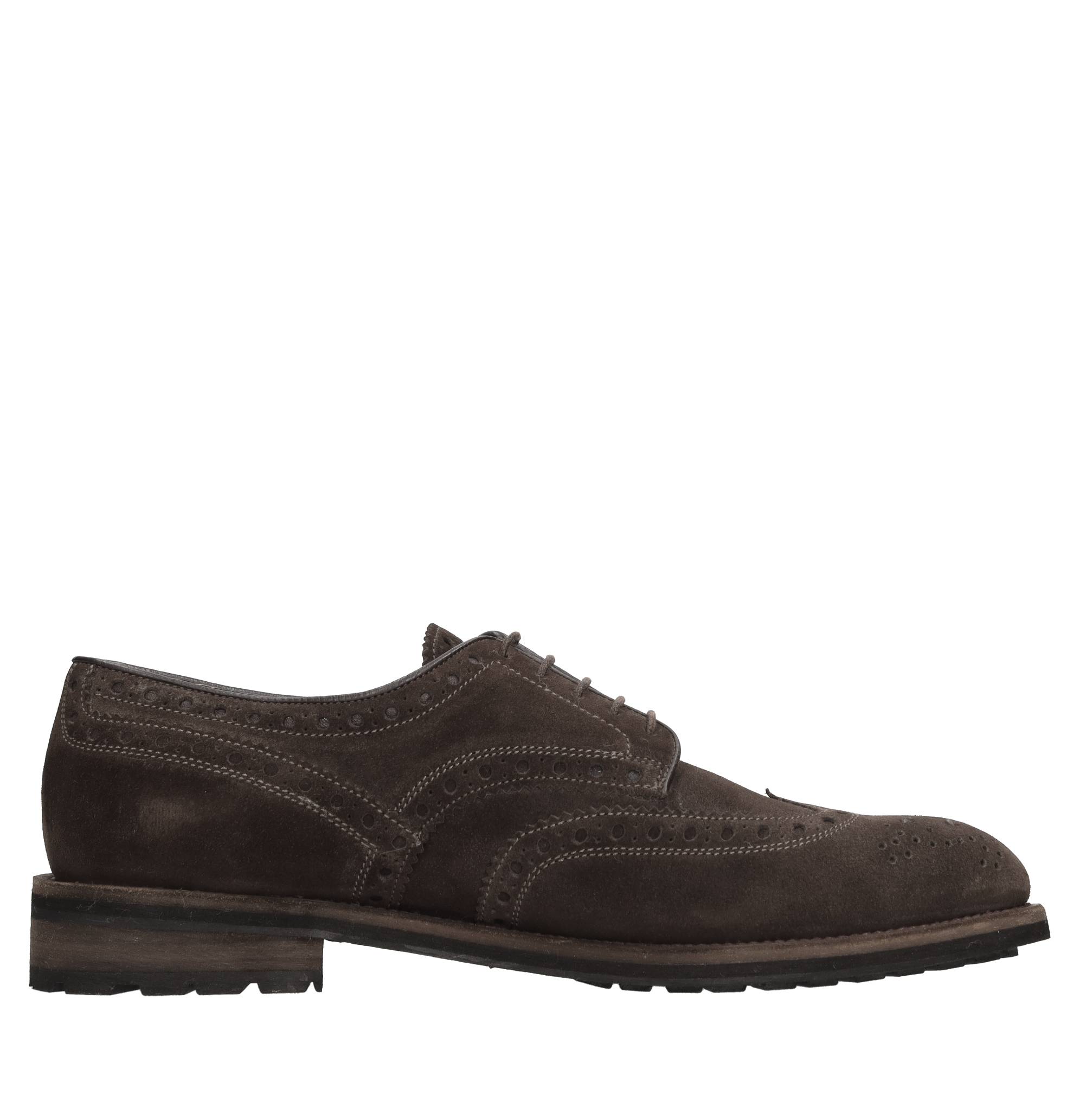 Stringate in camoscio. Tomaia interna in pelle. Suola esterna in gomma.