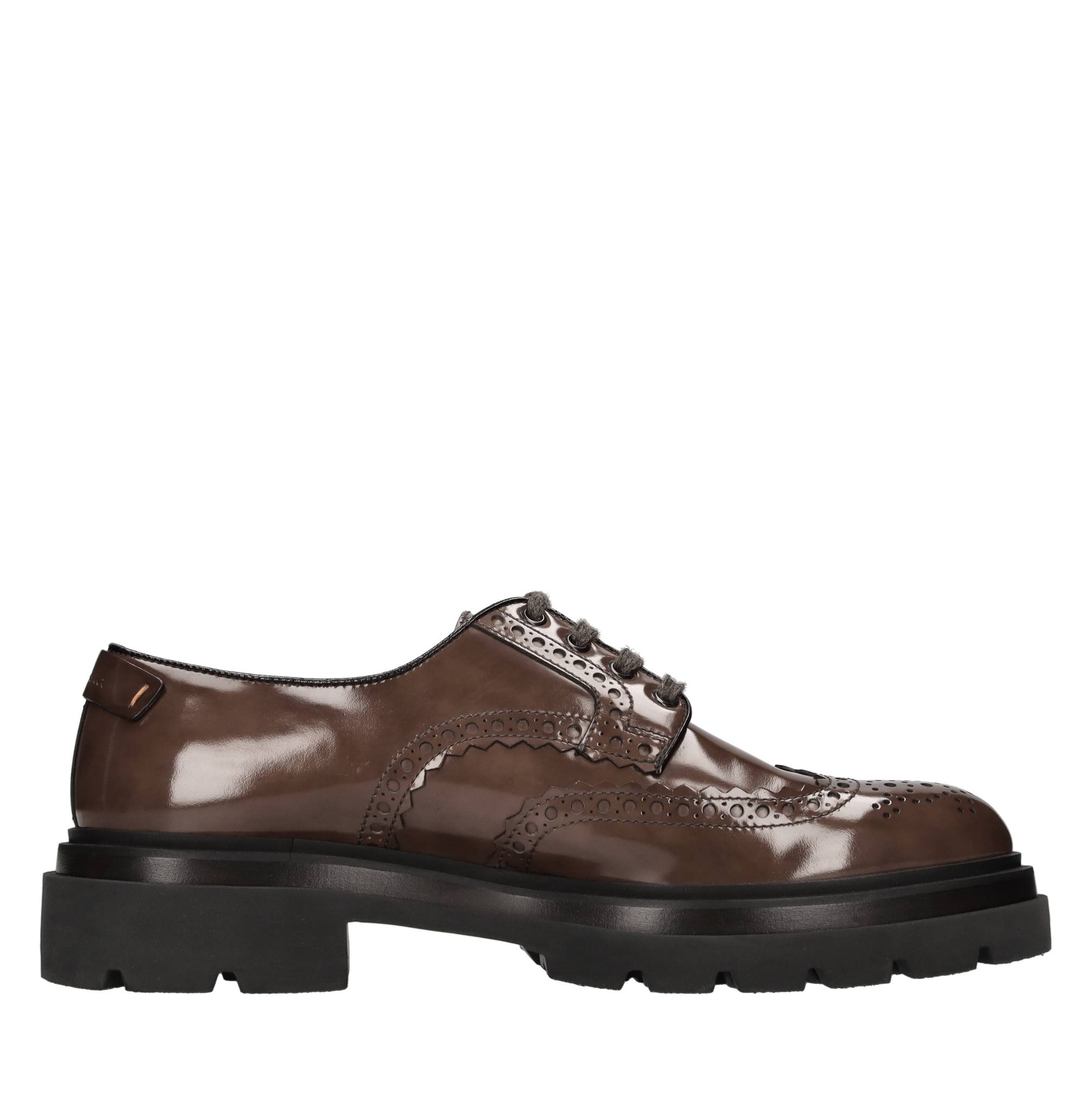 Stringate in pelle lucida. Tomaia interna in pelle. Suola esterna in gomma.