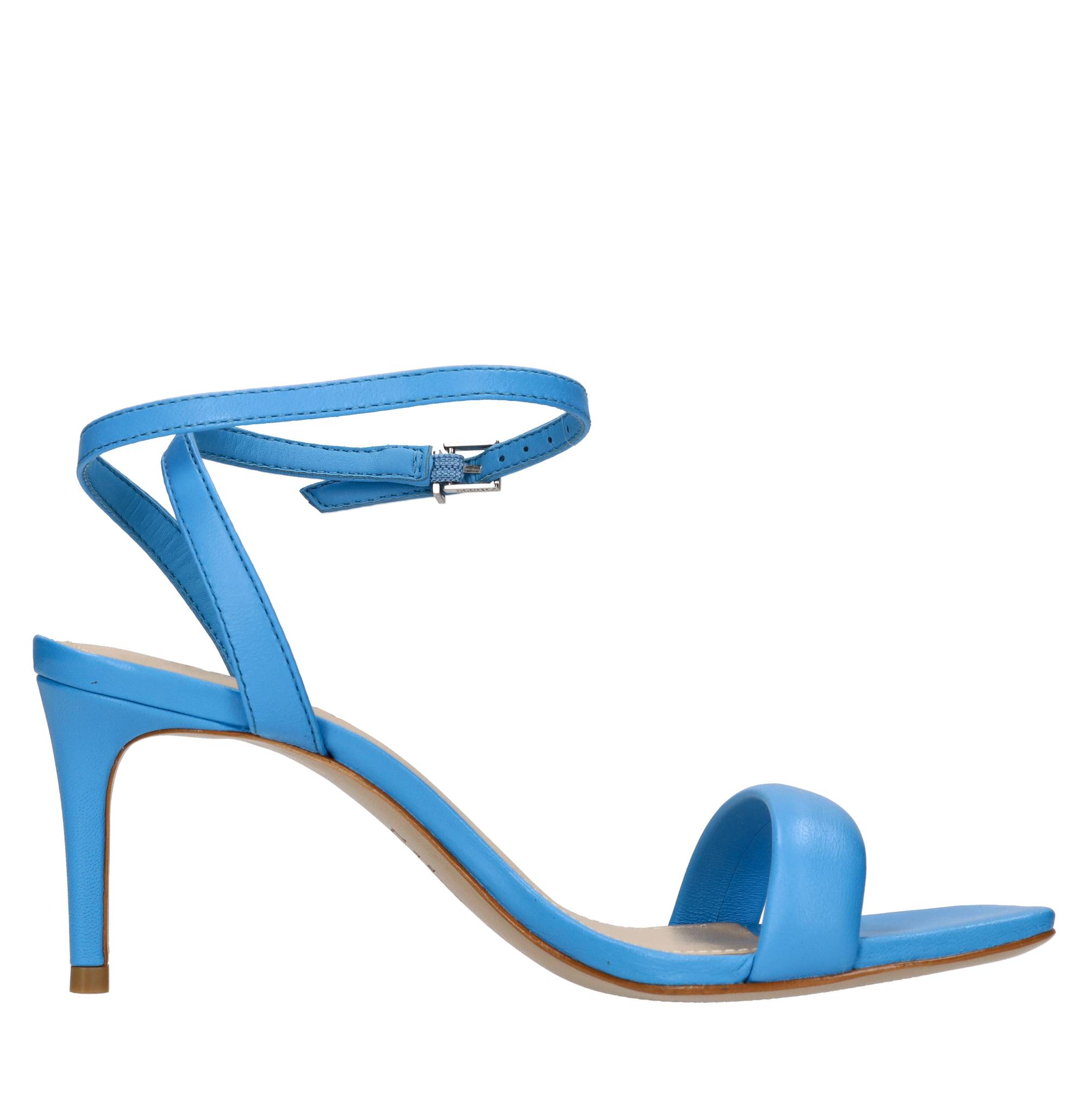 Sandali in pelle. Tomaia interna in pelle ed ecopelle. Suola esterna in cuoio.