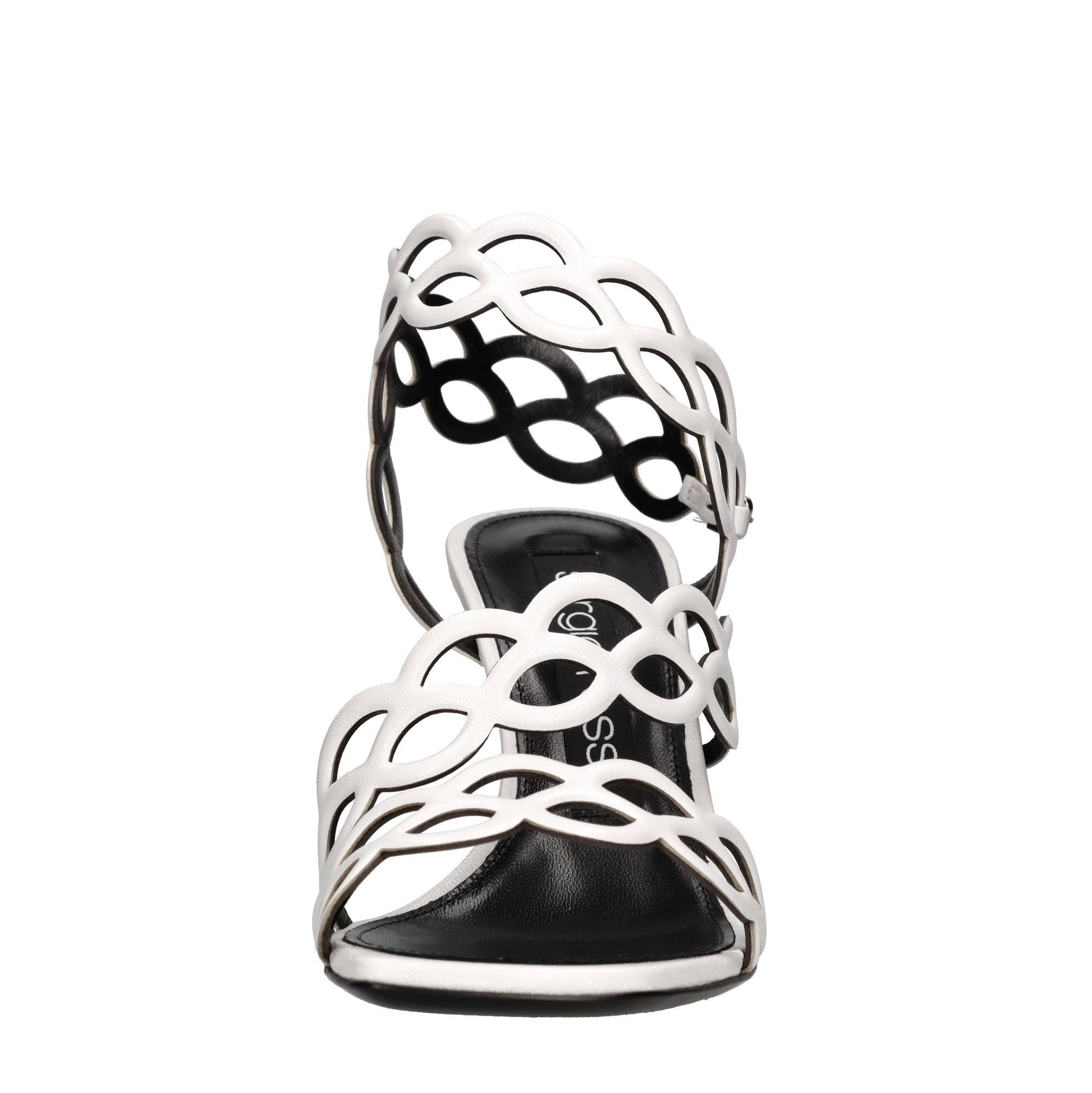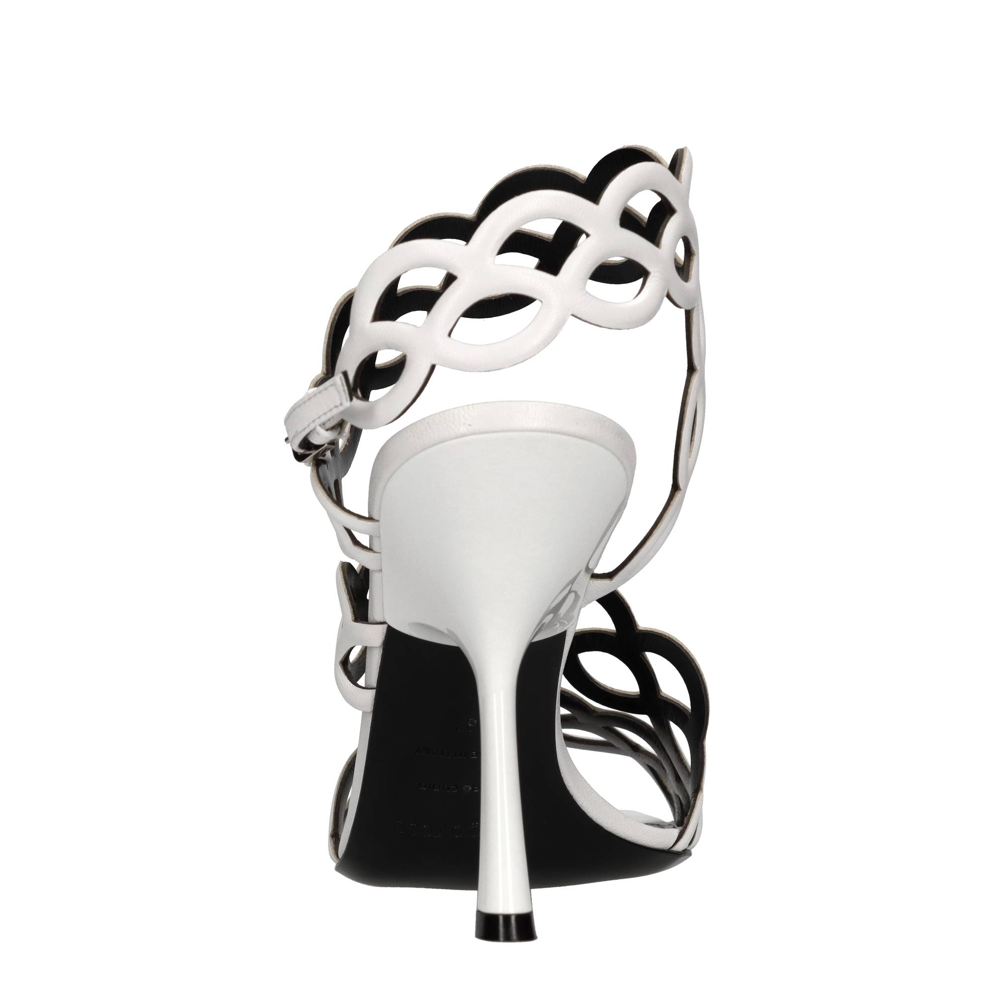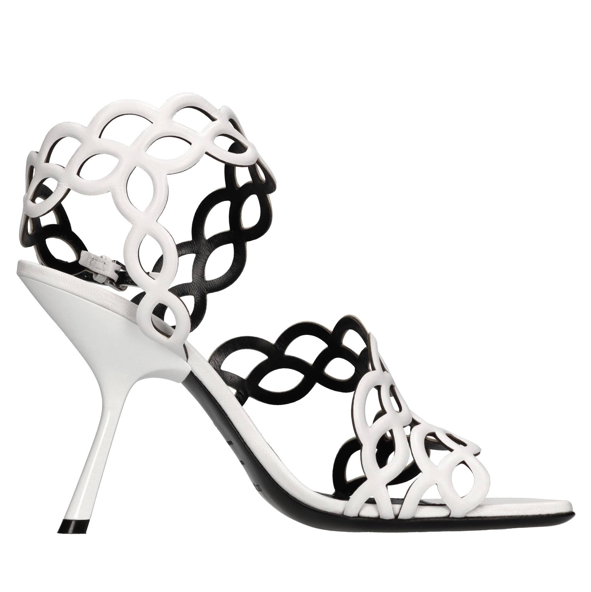 Sandali in pelle. Effetto traforato. Suola esterna in cuoio logato. Tomaia interna in pelle.