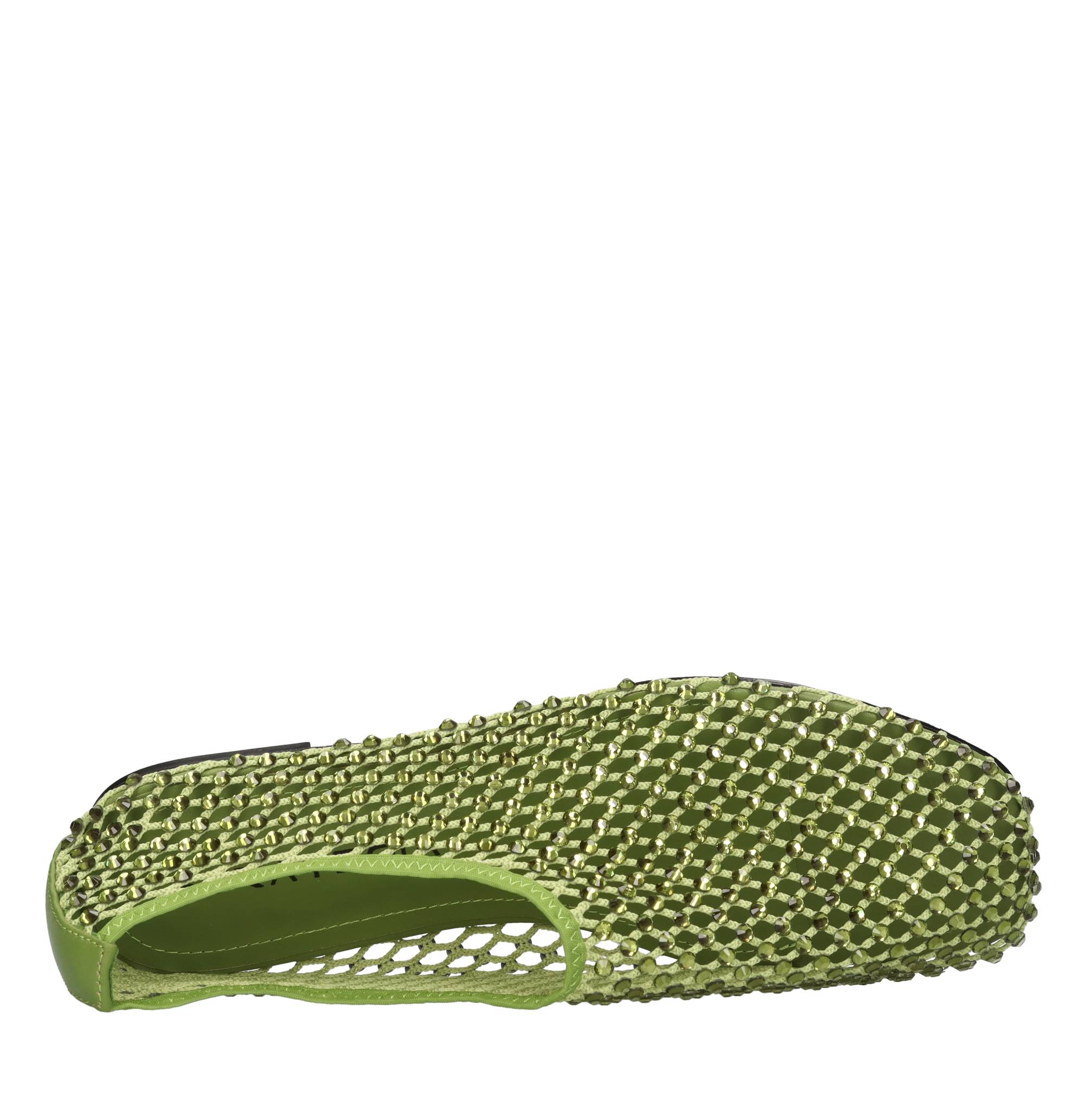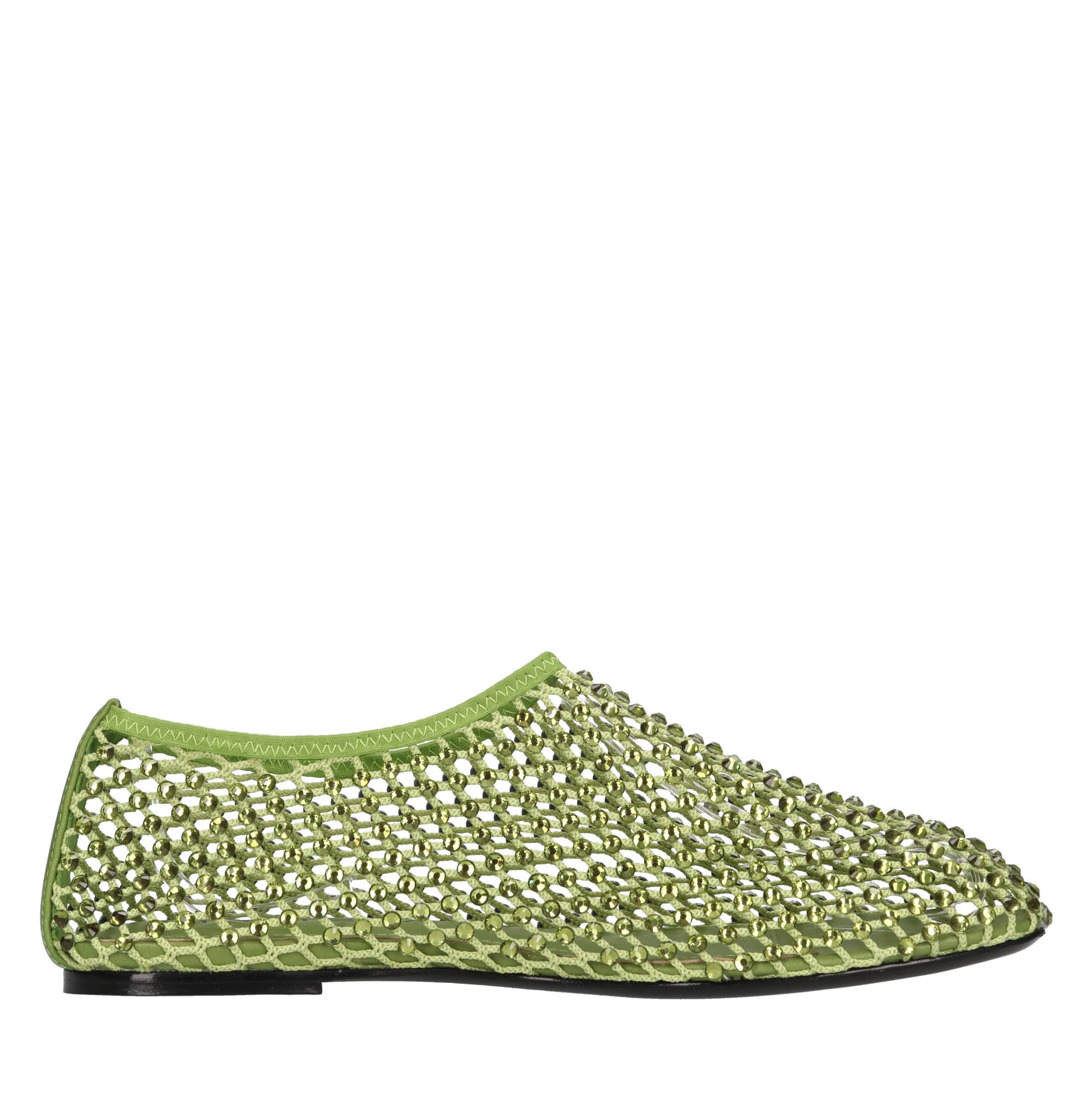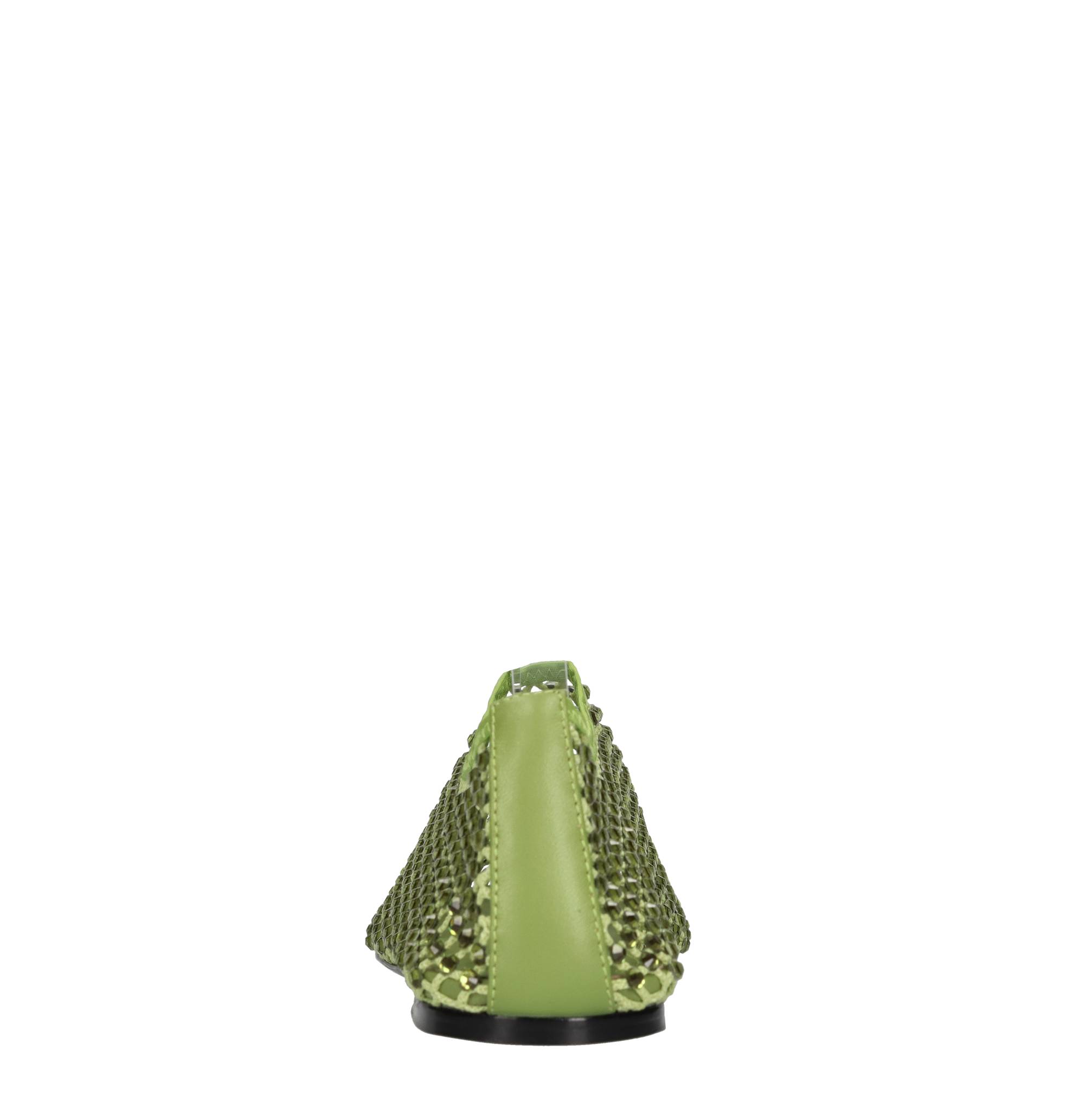 Ballerine Dollie in tessuto e strass. Tomaia interna in pelle e tessuto. Suola esterna in cuoio.