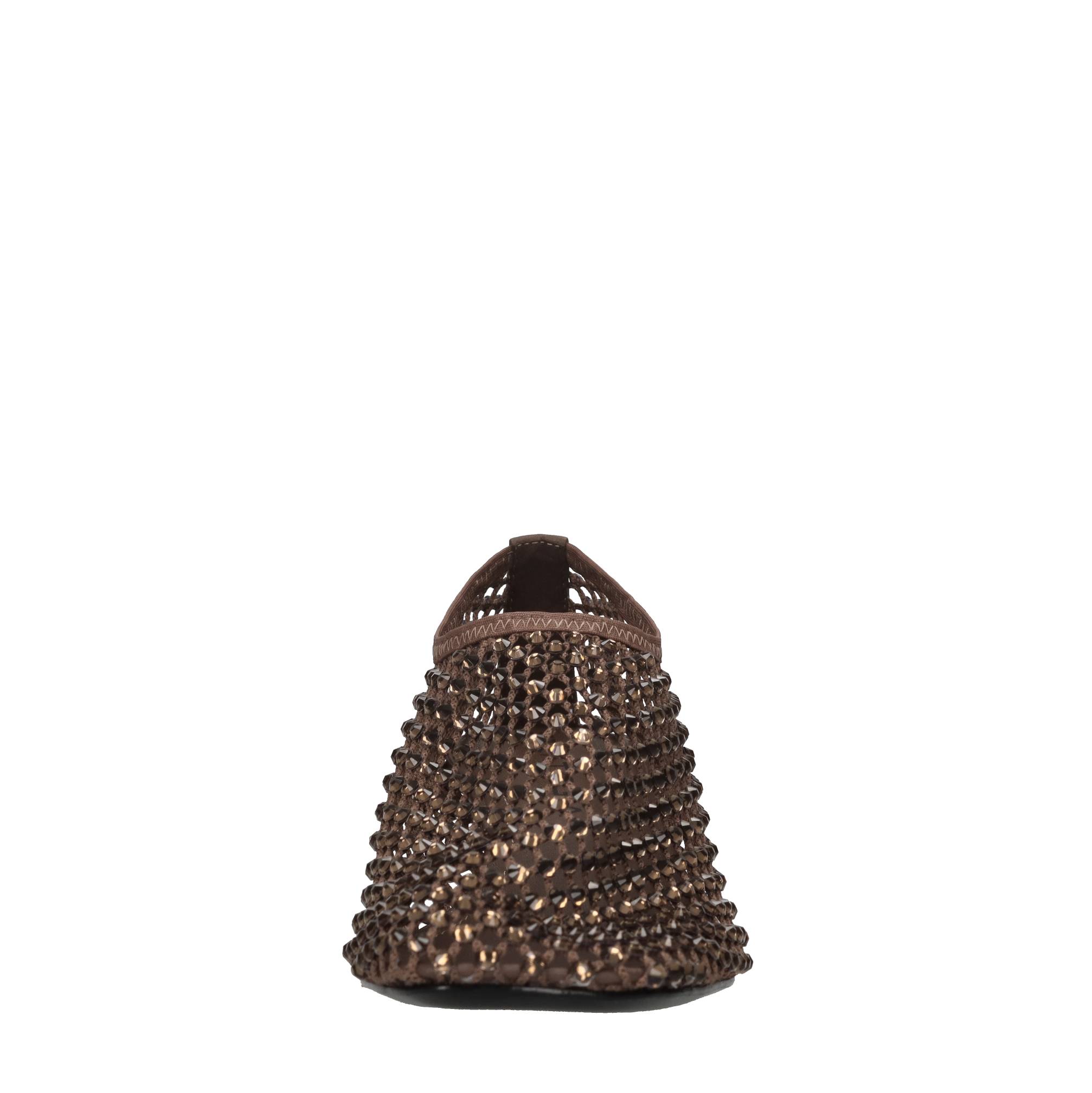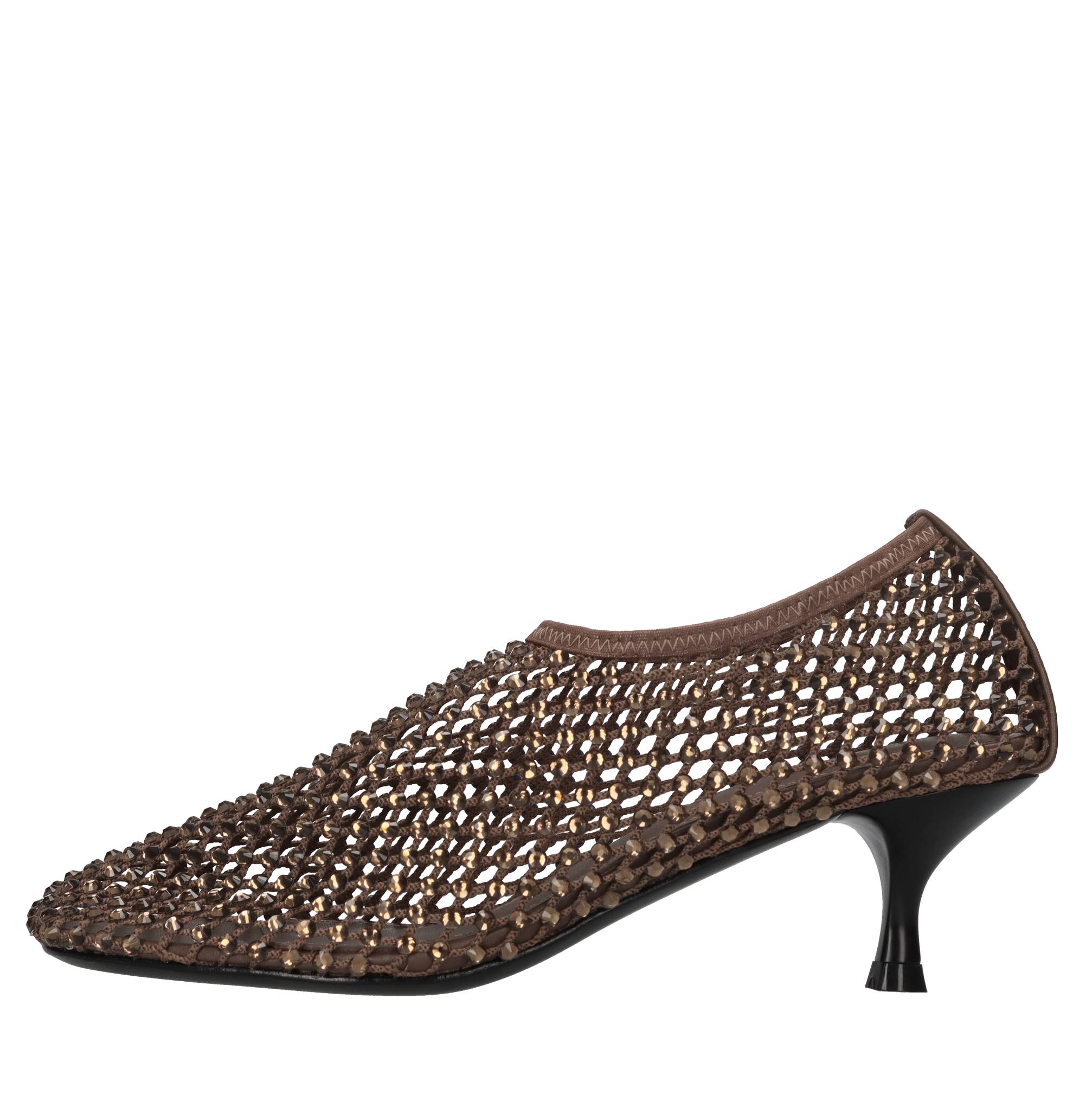 Décolleté Connie in pelle tessuto e strass. Tomaia interna in pelle. Suola esterna in cuoio.