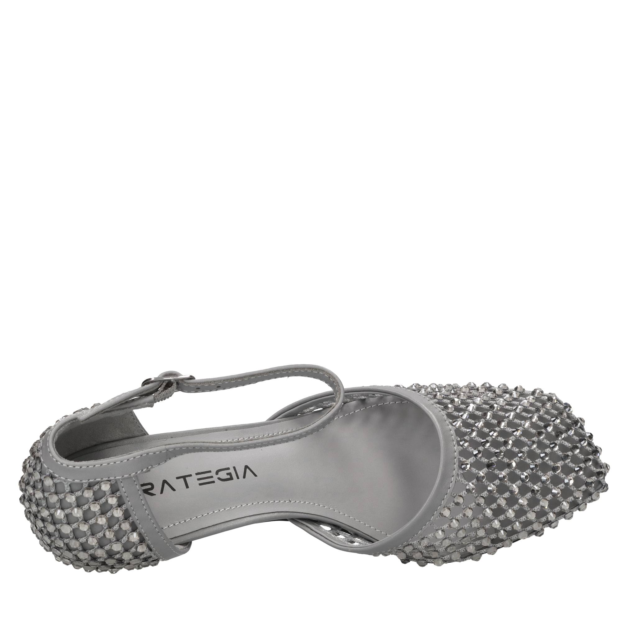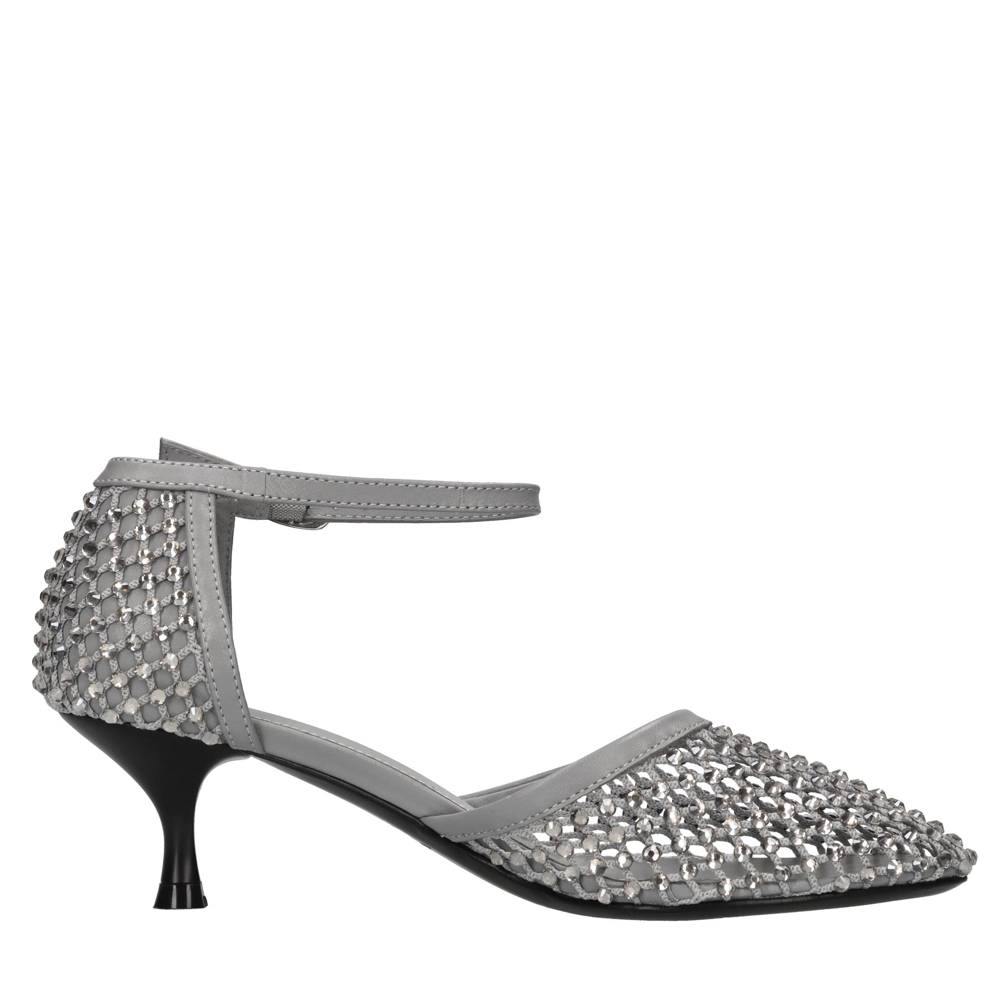 Décolleté Connie in pelle tessuto e strass. Tomaia interna in pelle. Suola esterna in cuoio.