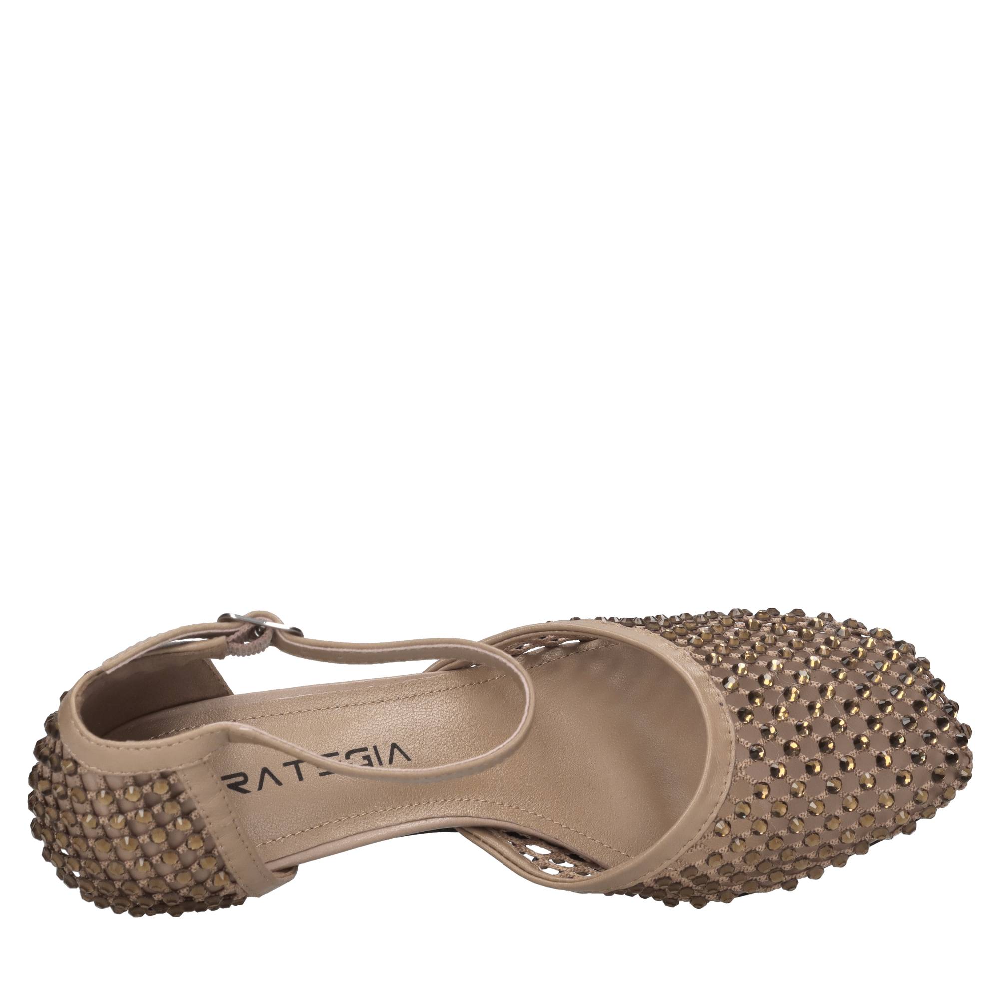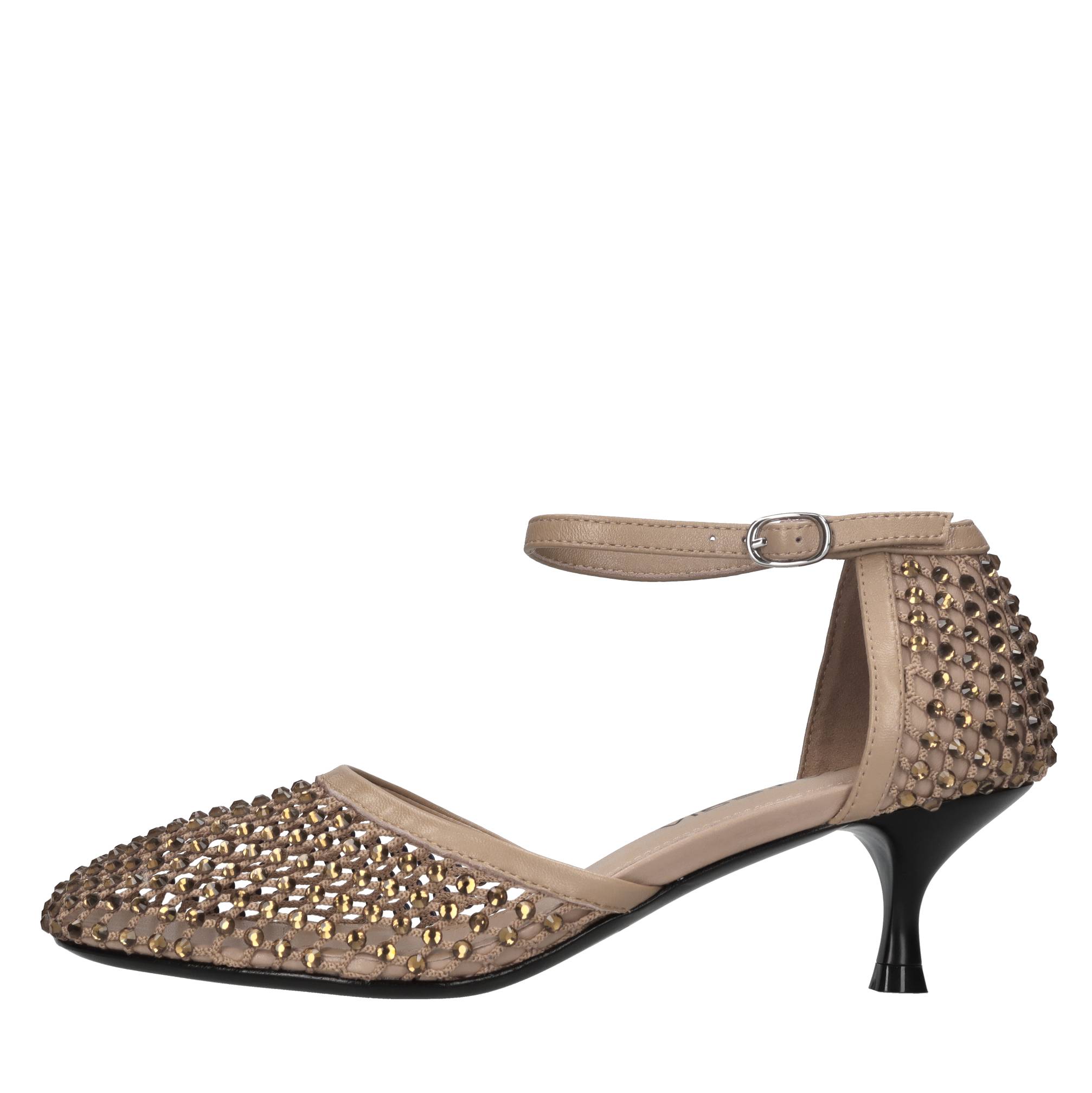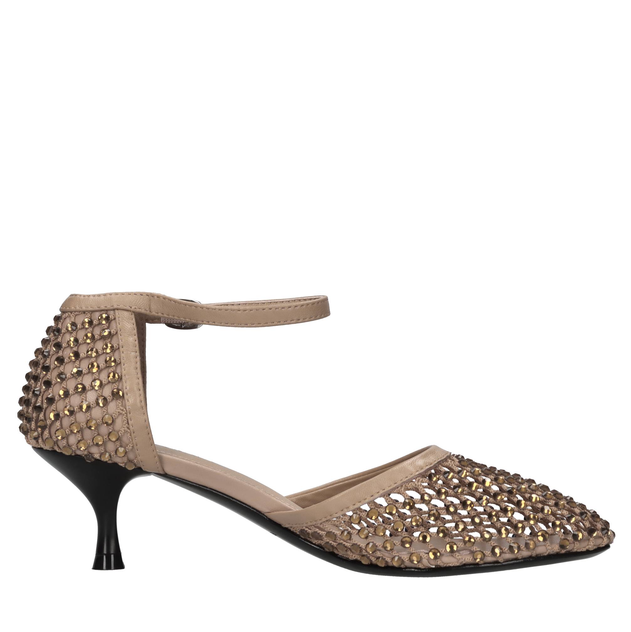 Décolleté Connie in pelle tessuto e strass. Tomaia interna in pelle. Suola esterna in cuoio.