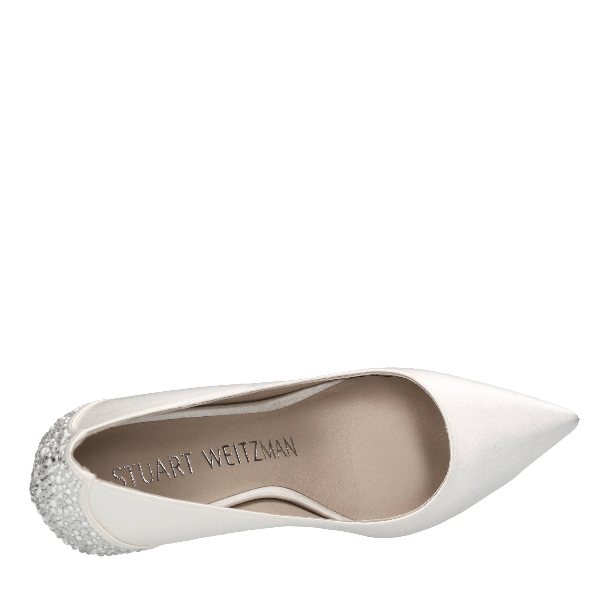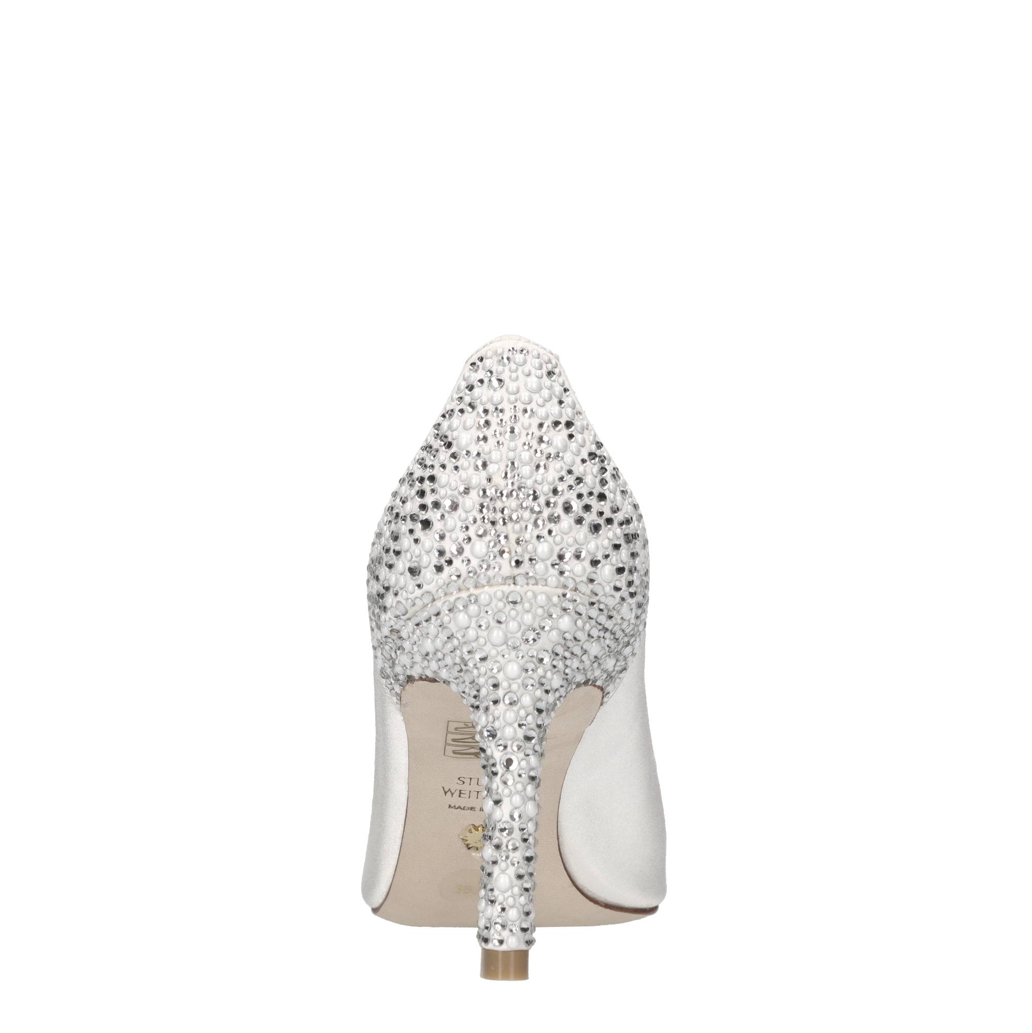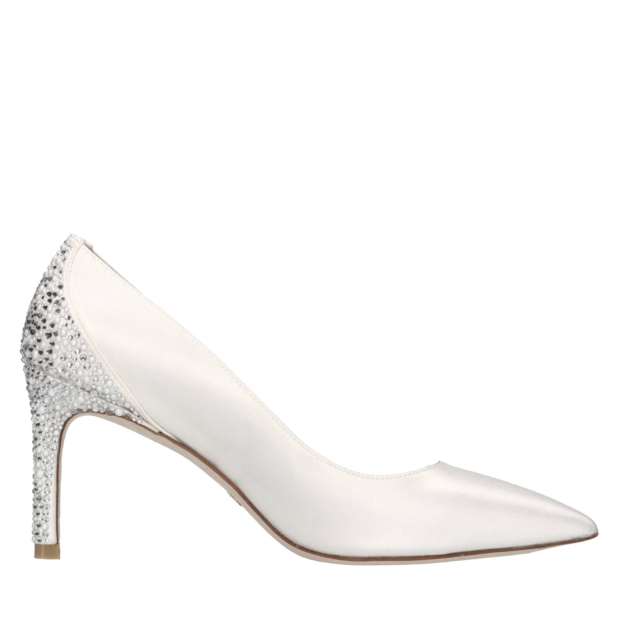 Décolleté in raso ed applicazioni. Tomaia interna in pelle. Suola esterna in cuoio.