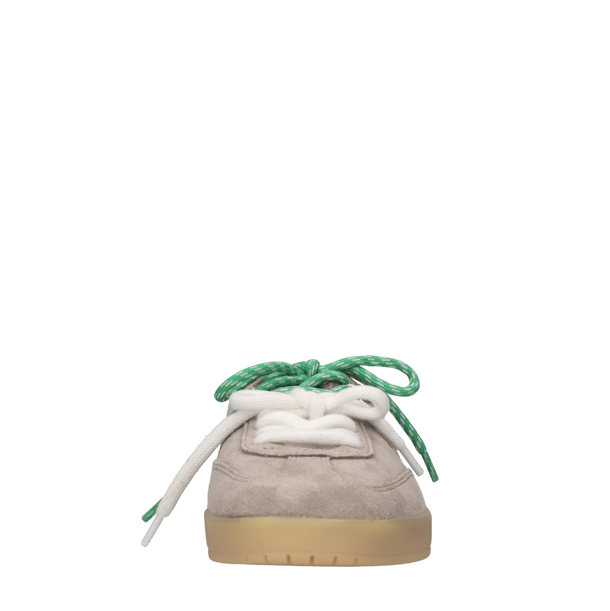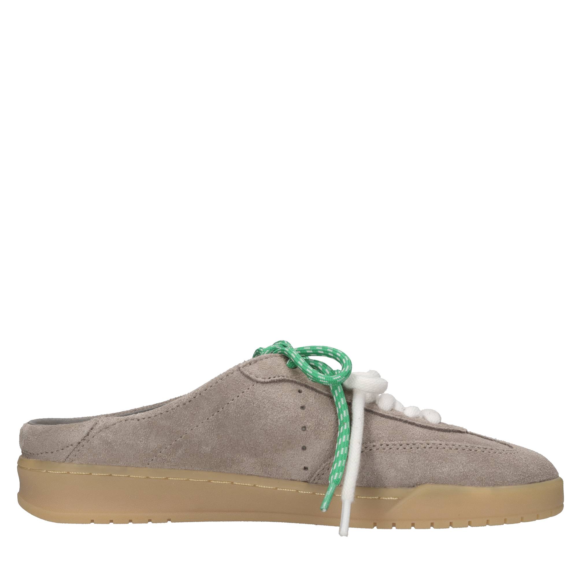 Sabot in camoscio. Tomaia interna in tessuto ed ecopelle. Suola esterna in gomma.