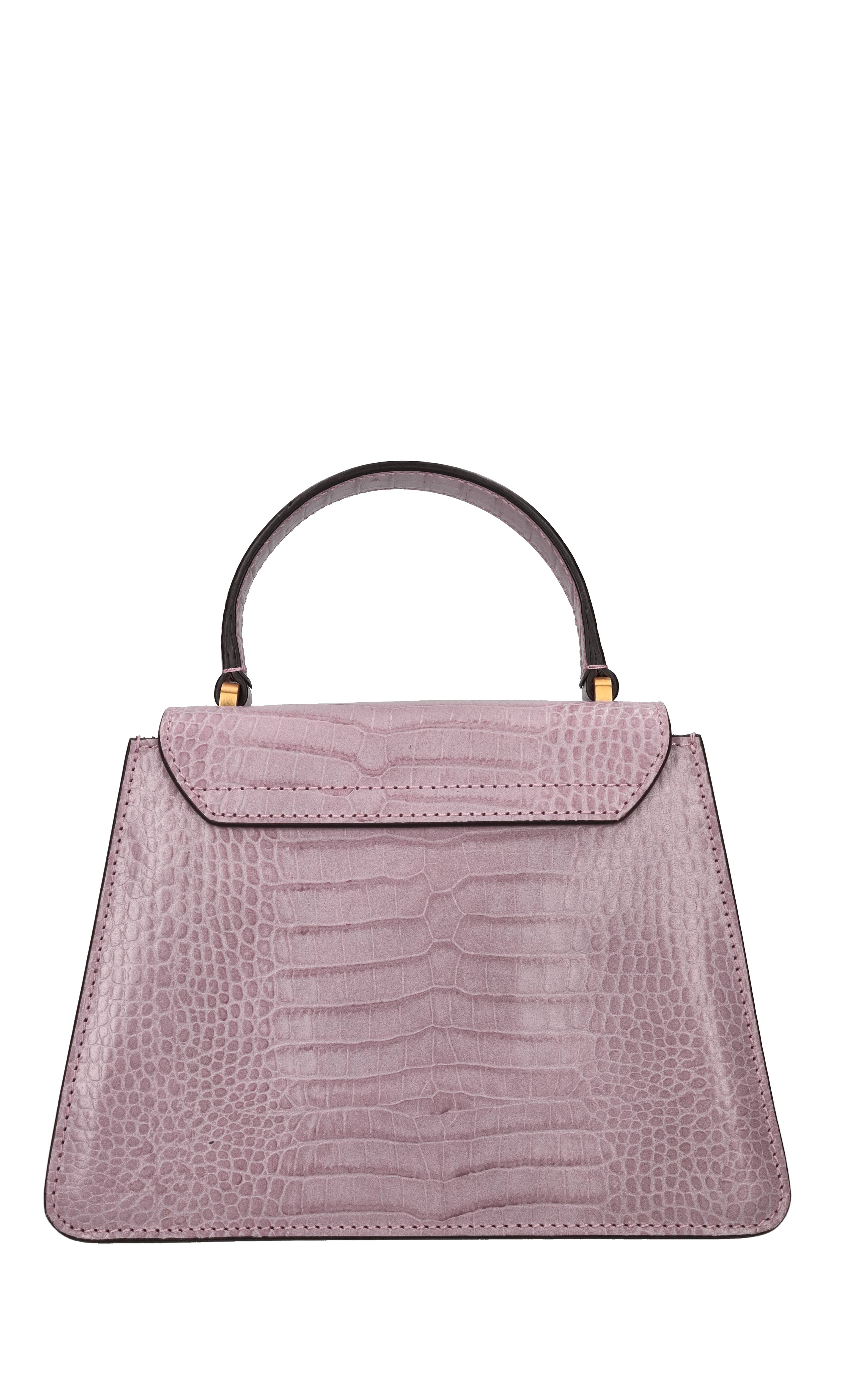 Borsa in pelle stampa cocco. Chiusura con patta con sistema ad incastro. 2 tasche interne di cui una con chiusura a zip.Tracolla gold chain e pelle. Metalleria color oro.