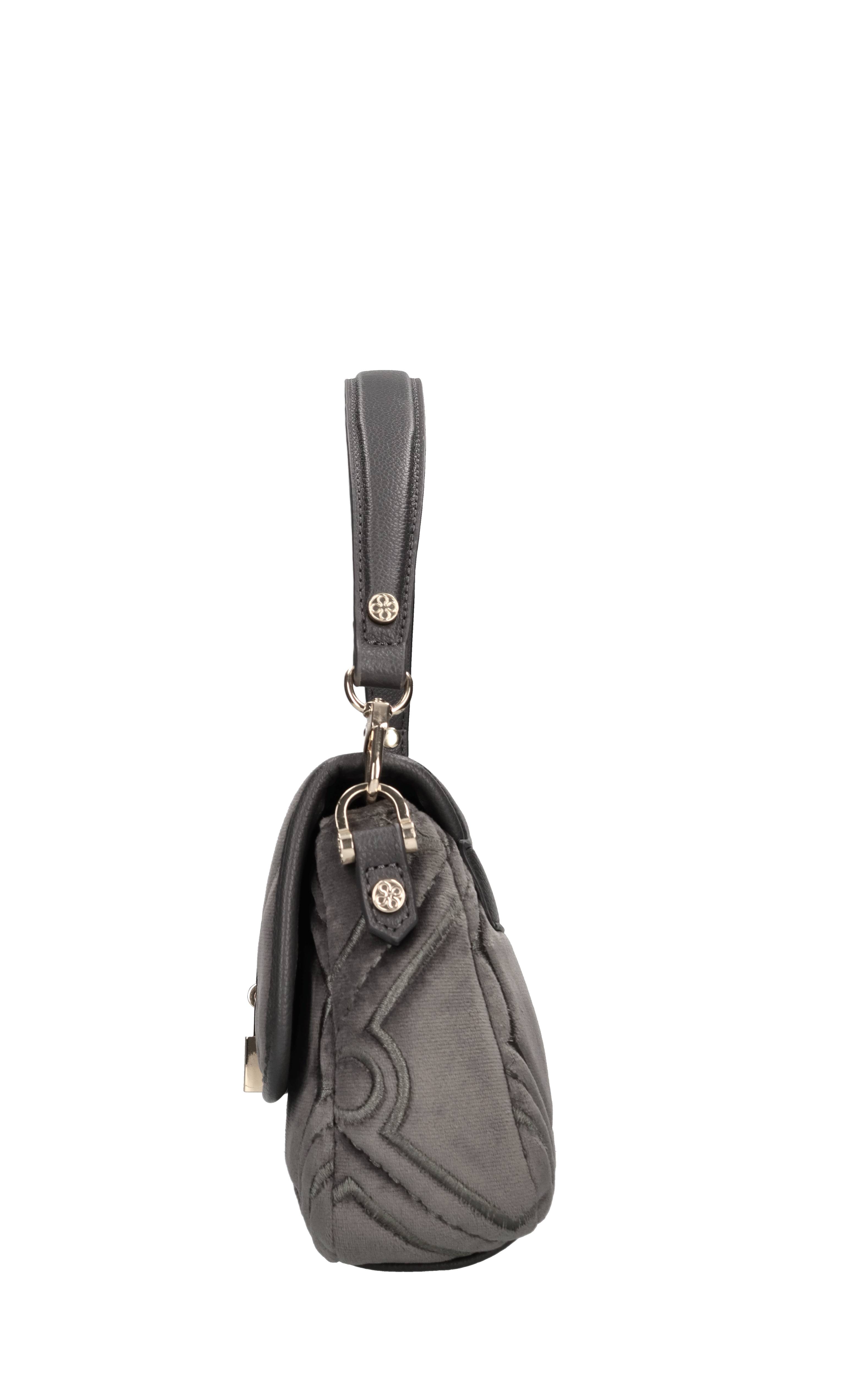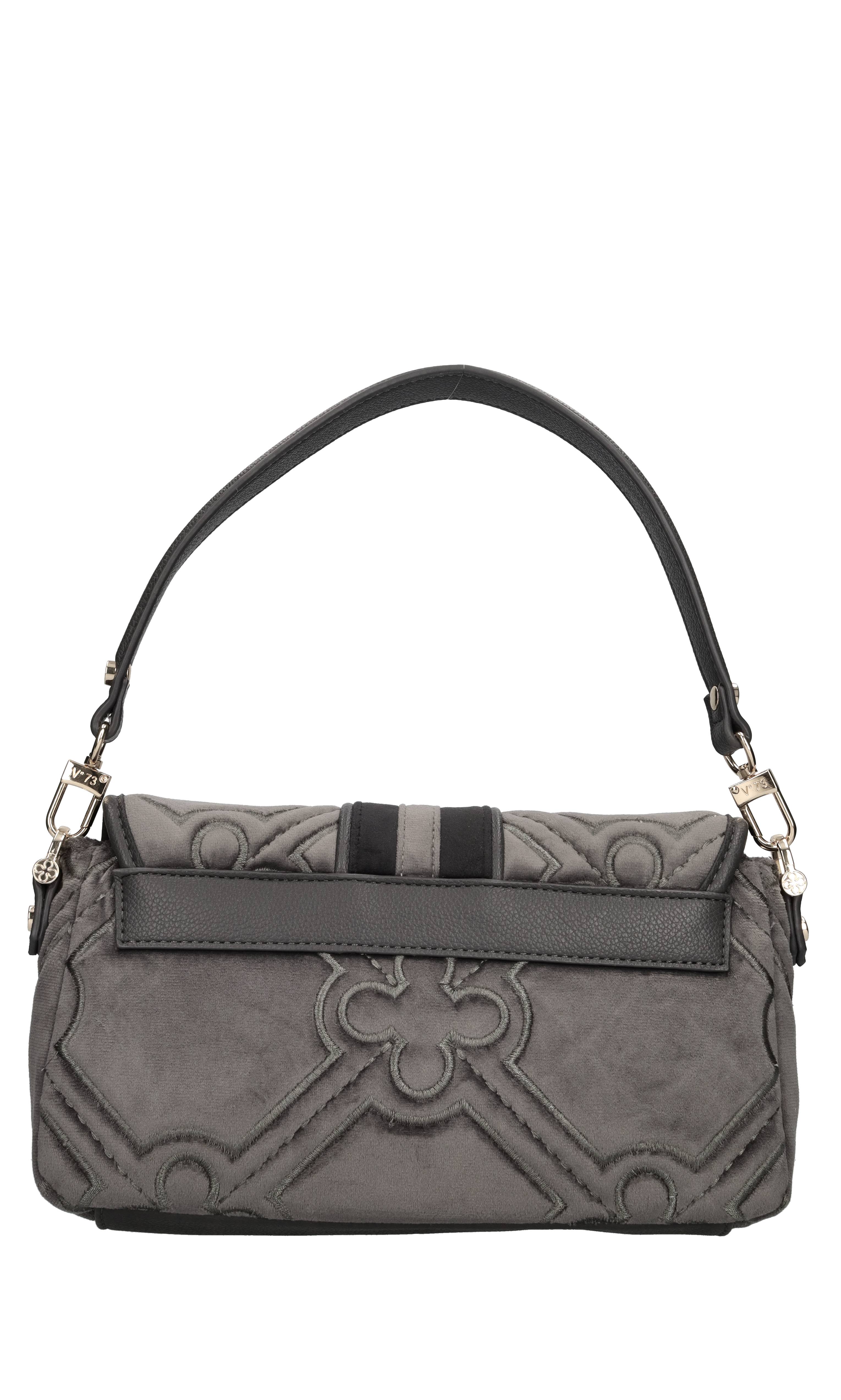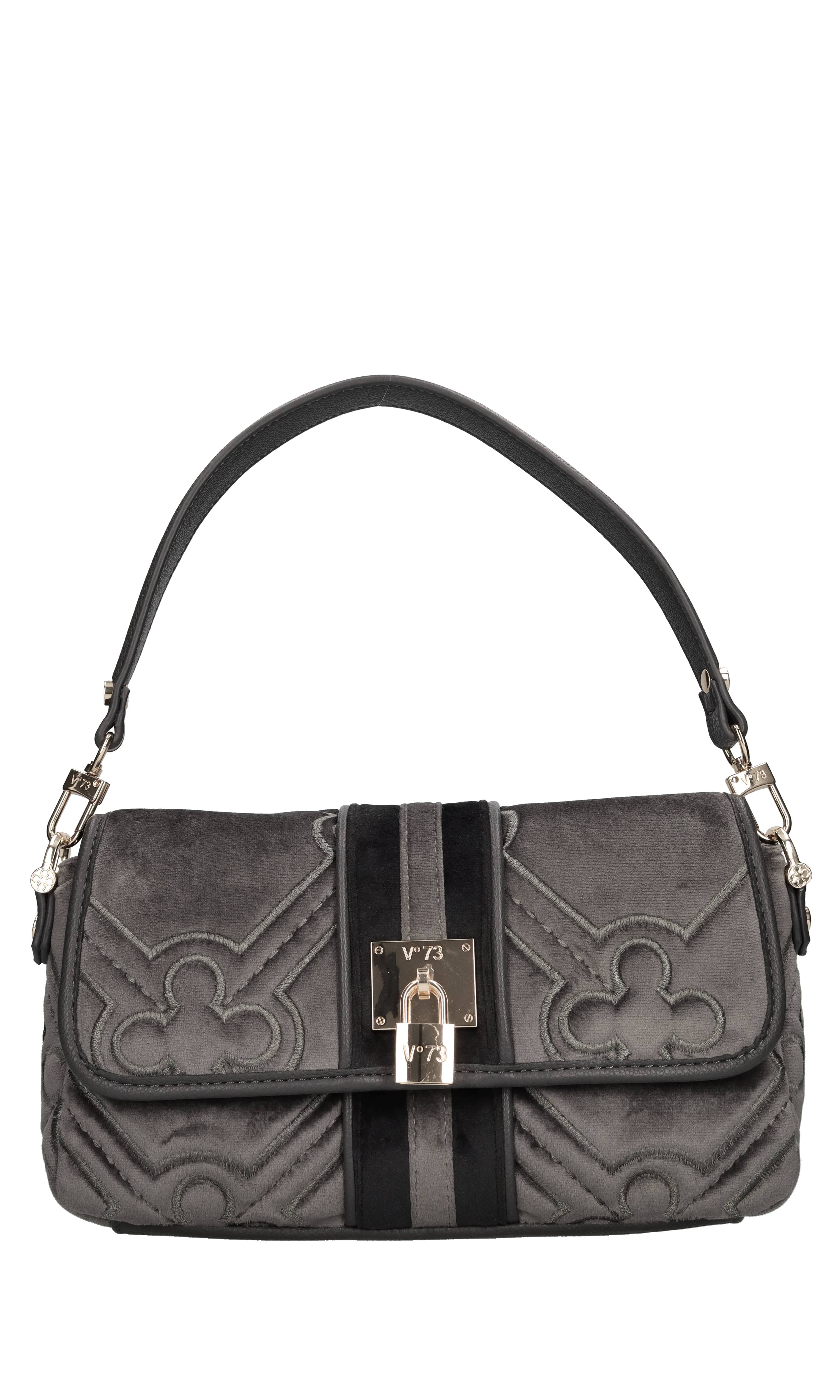 Borsa in velluto ed ecopelle. 1 Comparto. Chiusura con patta con bottone a scatto. Tracolla in ecopelle regolabile e removibile. Spedito su bustina trasparente.