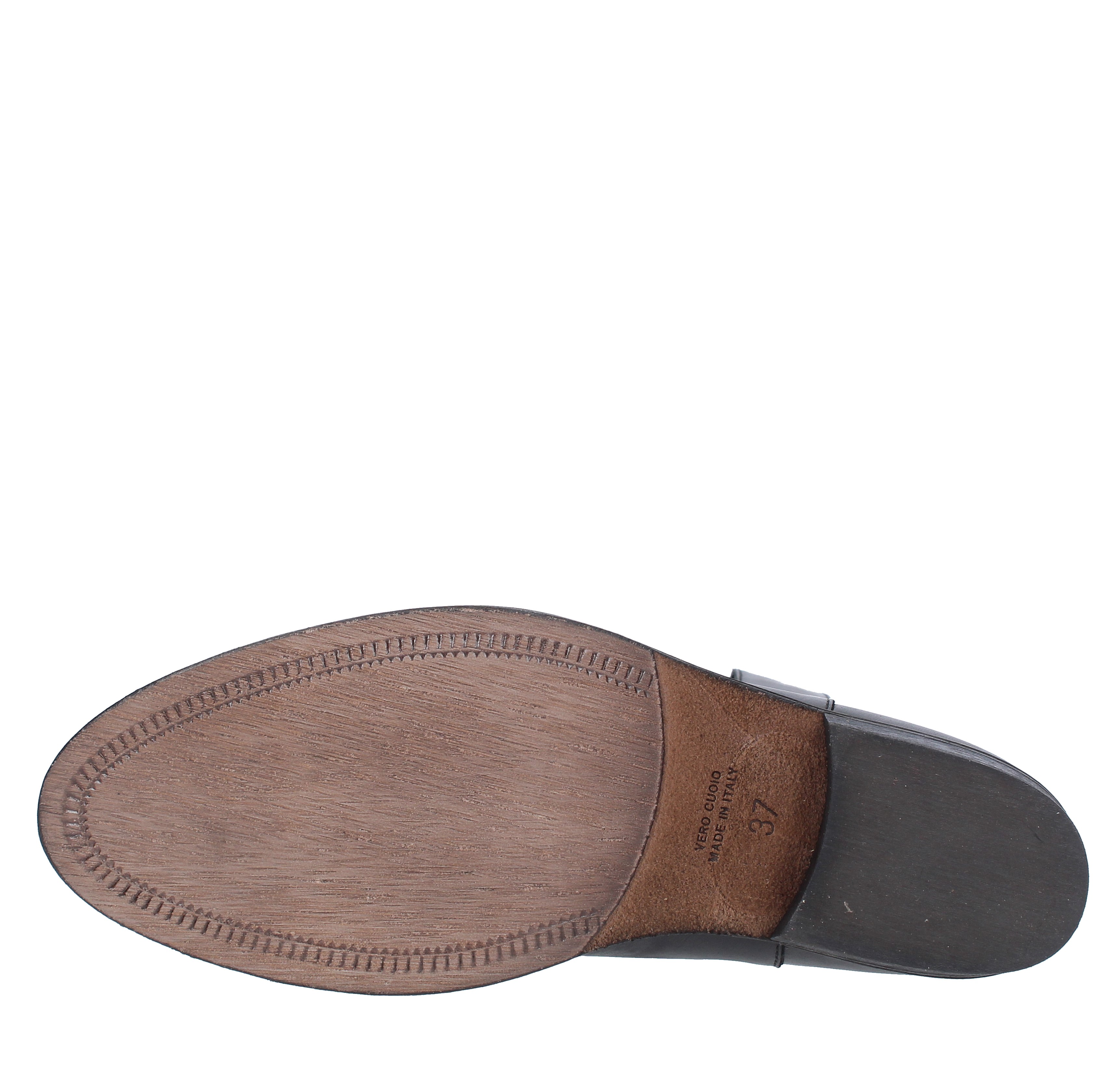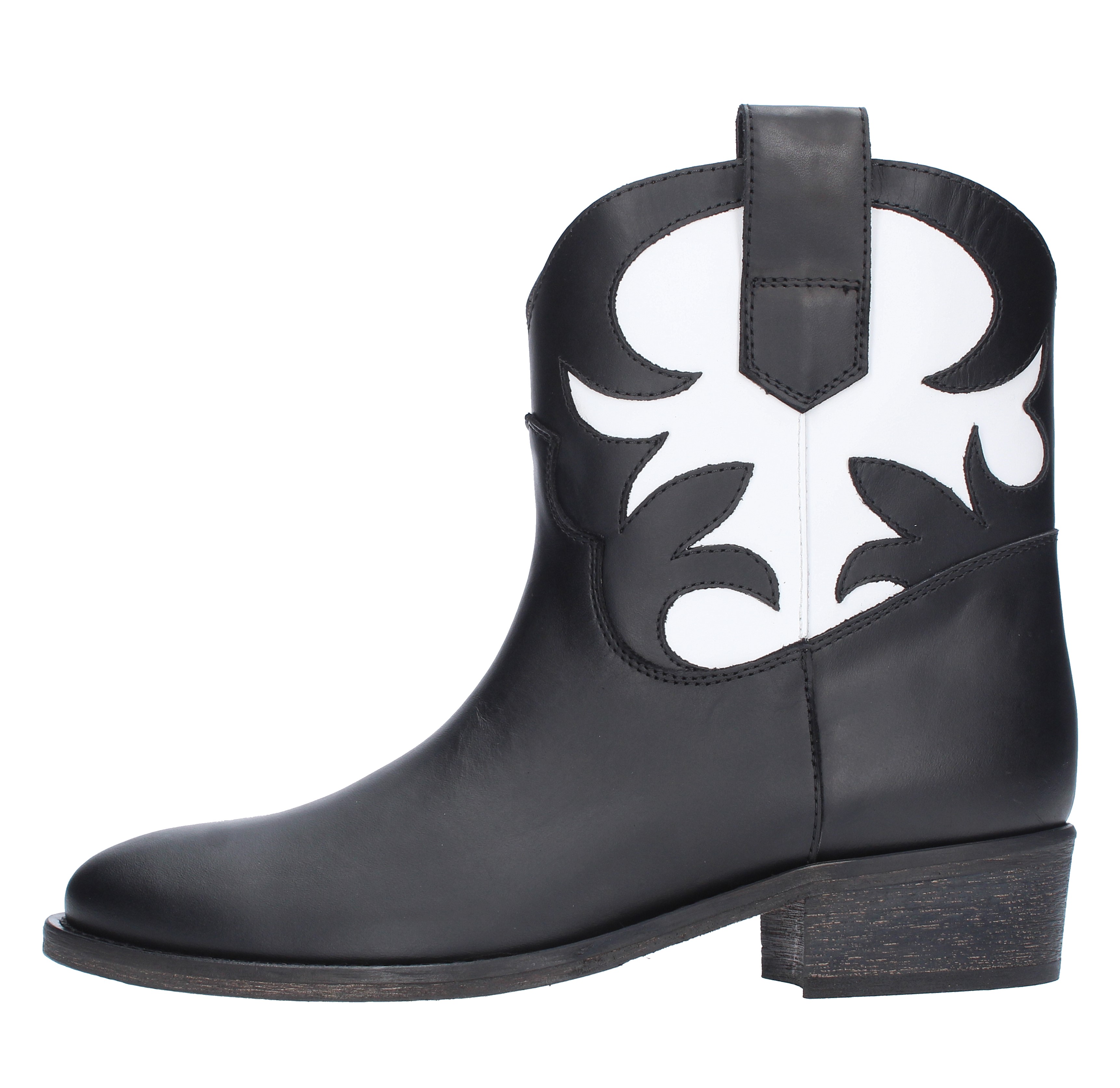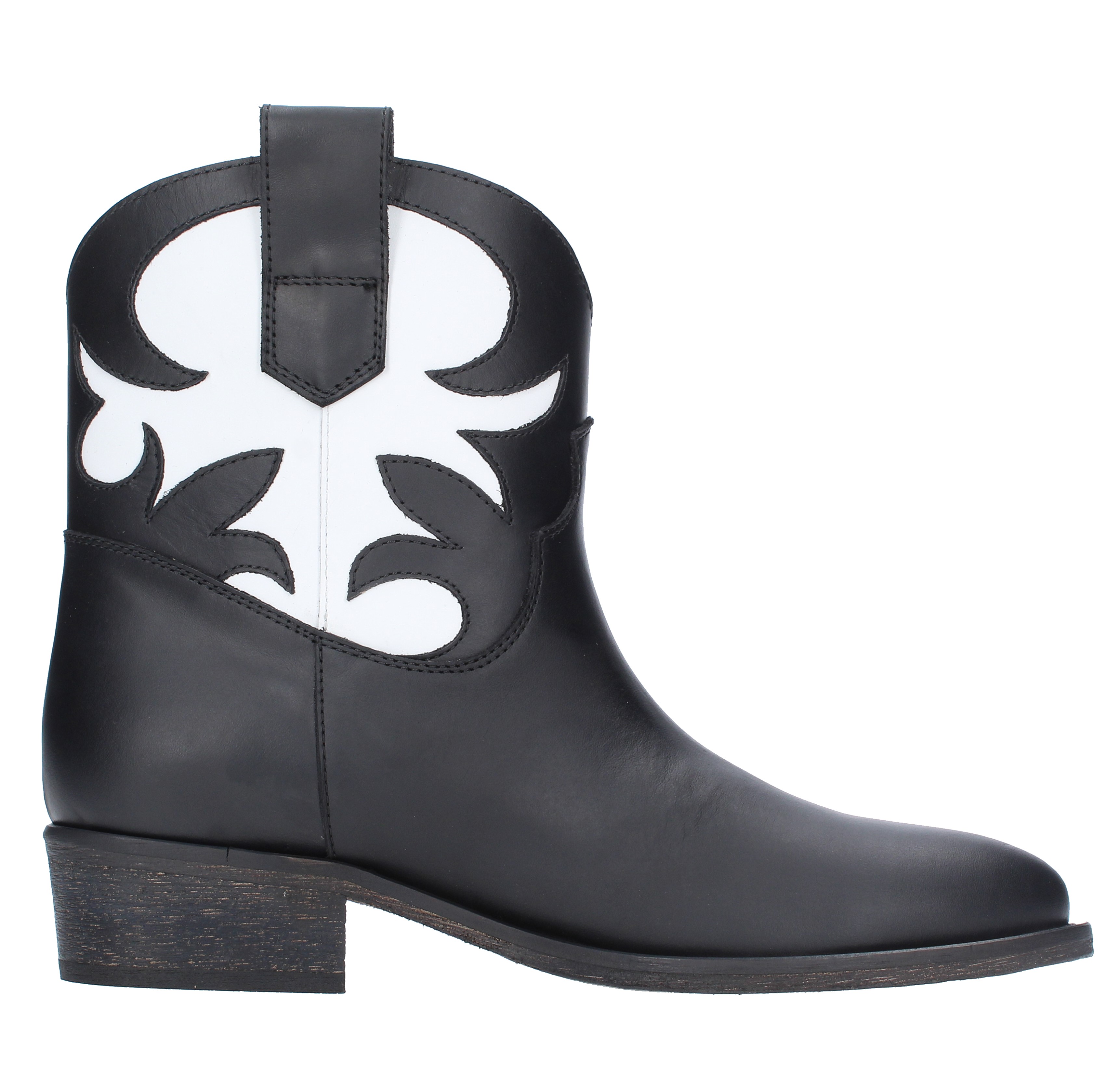 Stivaletti texani in pelle. Particolari in pelle bianca. Suola in cuoio. Tomaia interna in pelle.