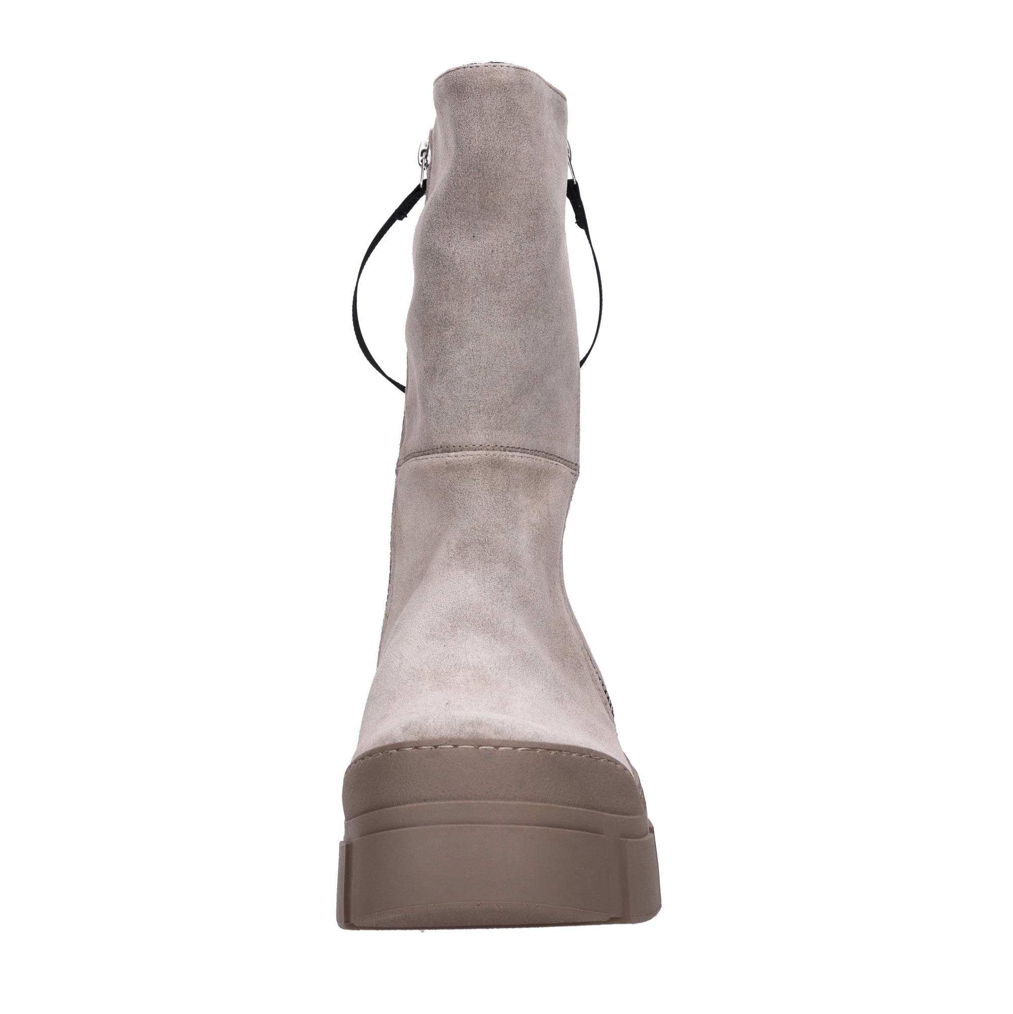 Stivaletti in camoscio. Tomaia interna in pelle. Suola esterna in gomma. Zip laterali.